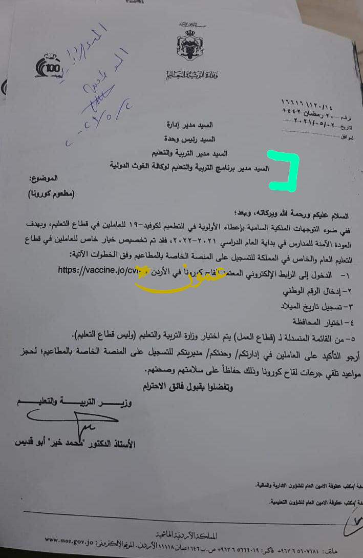 وزير التربية يعمم للتسجيل على منصة لقاح كورونا02-05-2021 06:36 PM