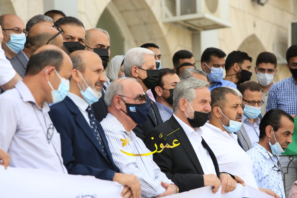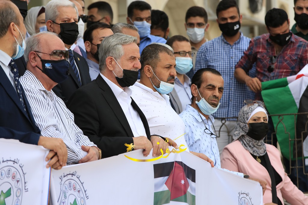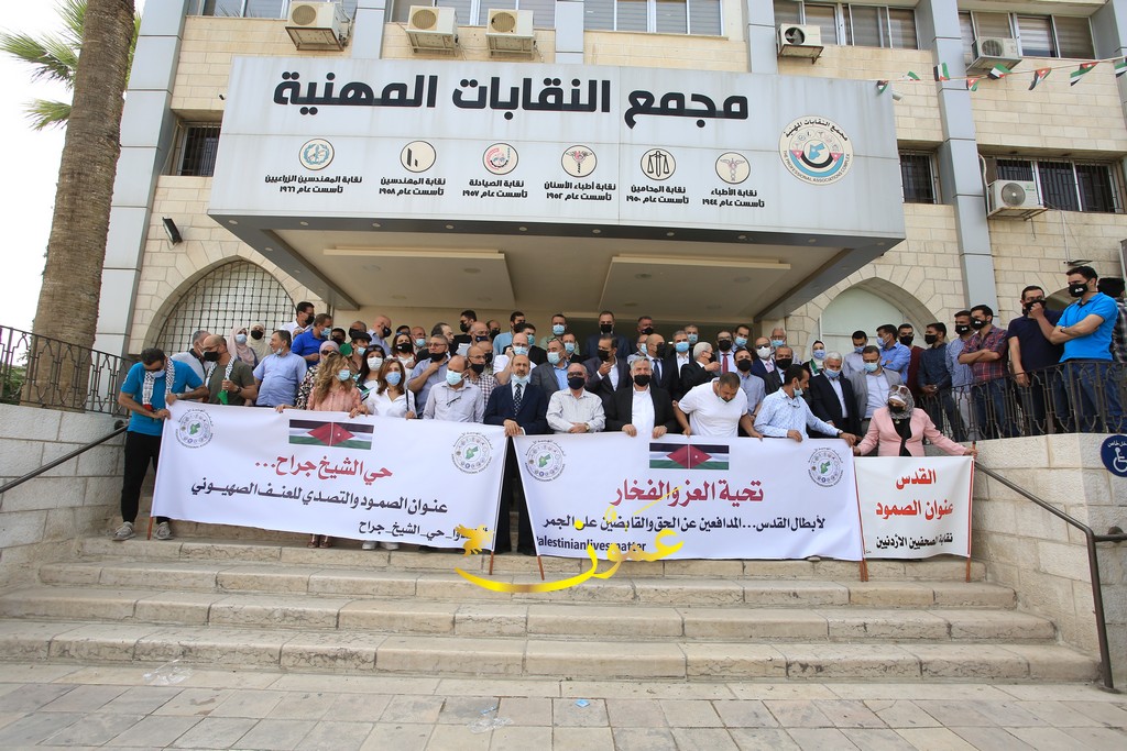 عمون - شاركت فاعليات سياسية وحزبية ونقابية وشعبية اليوم الاثنين في وقفة احتجاجية أمام مبنى مجمع النقابات في العاصمة عمّان، تعبيرا عن رفضهم لانتهاكات الاحتلال الإسرائيلي في المسجد الأقصى وحي الشيخ جراح في القدس المحتلة.