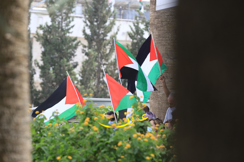 ورفع المشاركون في الاعتصام يافطات تؤكد على حقوق الشعب الفلسطيني وحقه بالدفاع عن القدس والمقدسات.