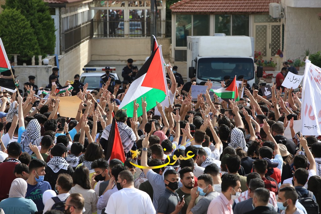 اعتصام حاشد قرب السفارة الاسرائيلية في عمان (فيديو)10-05-2021 04:02 PM
