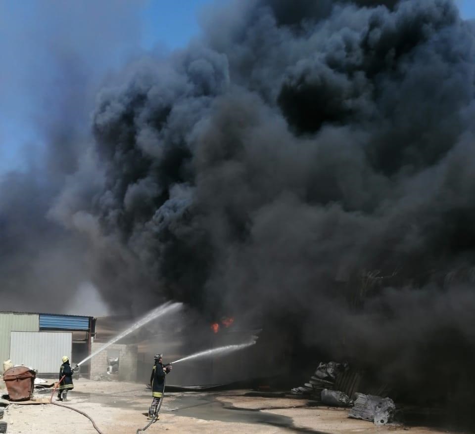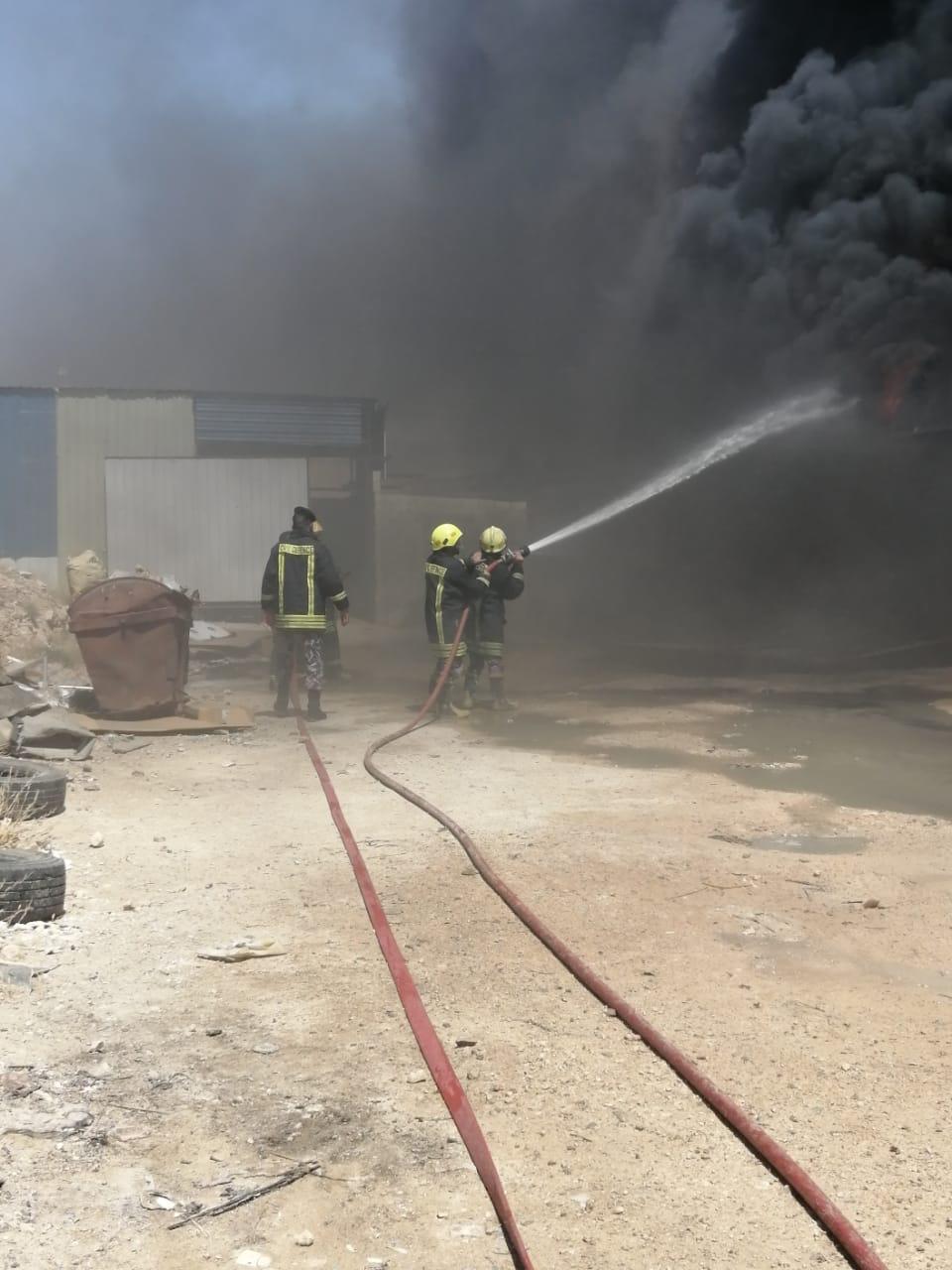 عمون - شب حريق كبير في مصنع يحتوي على مواد عازلة (بولسترين)، شرق العاصمة عمان وفق مديرية الدفاع المدني.