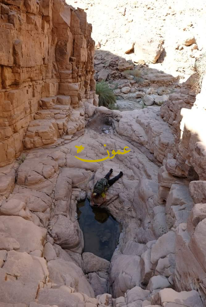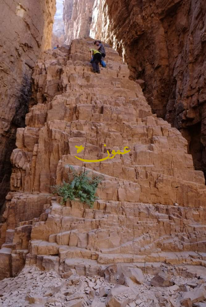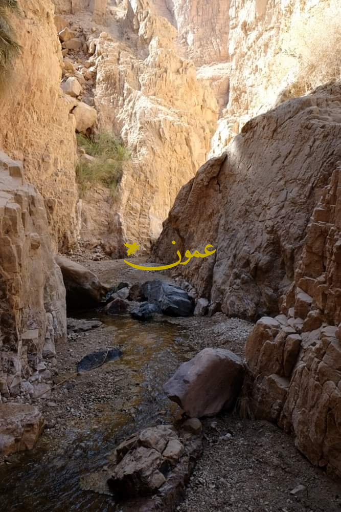 سلكنا درب الأوسط " الخطيطة" القادم من الشارع الرئيسي المحاذي لشاطئ البحر الميت من جنوبي الجسر ومن أمامنا الشلال العظيم، وصنف المسار بالسهل الاستجماميّ متطلب الحذر من الانزلاق عند المنحدرات الرملية الهشة، ولتفادي ذلك كنا نضع أقدامنا على نفس موطئ قدم قائد المجموعة واثقين بأمانها.