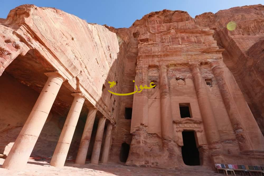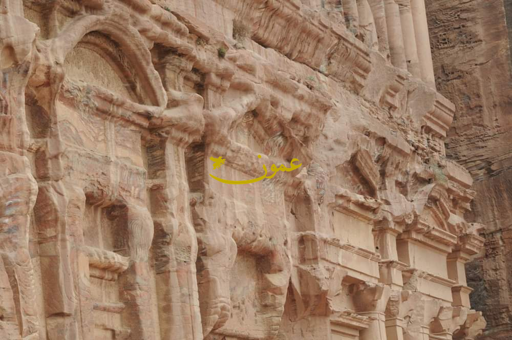 استكملنا الدرب الترابي الممهد لمطل الجبل على الخزنة وساحتها الذي وقف عليه الزوار بالدور للحظي بصورة بهذا المشهد الرائع فوق مستوى الجرة المغاير للأيقونة الخالدة وسط ترحاب صاحب الاستراحة البسيطة التي اعتلت المكان، لنعود عبر درب الجبل عابرين أدراجه القديمة والمستحدثة وما تخللها من مواقع ونقوش وكتابات وبوابة الطريق الصخرية عند نهايته قرب المعبر المائي لوادي المظلم، لنعود ونستكمل الواجهات الملكية الواحدة تلو الأخرى مروراً ببيت دورتيوس الغير مكتمل نحته ومن فوقه قناة مائية ومن بعده ضريح سكتيوس فلورنتينوس حاكم المقاطعة العربية أبان الأمبراطور هدريانوس وبه كتابة تشير إلى اسمه، وضريح القصر ذو الثلاث طبقات بتصميم باروكي ومشابه لقصر أشور وايوان كسرى العظيم بالعراق، وبجانبه الضرويح الكورنثي المنسوب اسمه لطراز عمارته بخمسة حجرات، منهين بذلك سلسلة الواجهات فائقة الروعة.