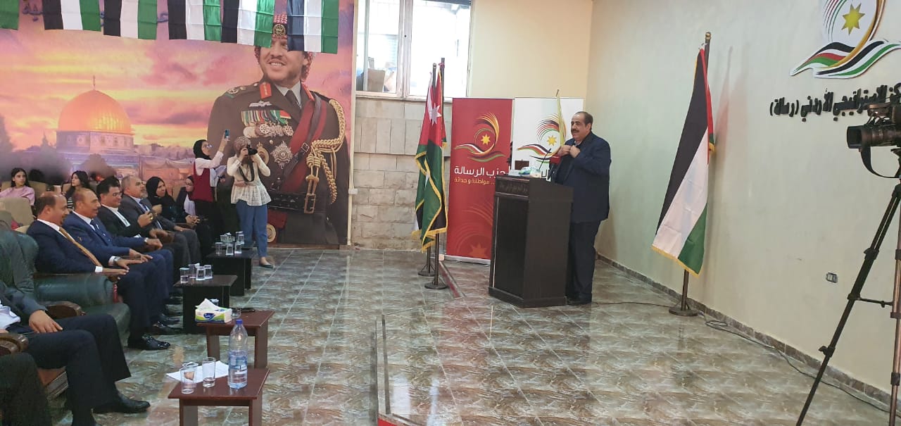 الأمين العام للحزب الدكتور حازم قشوع قال في كلمته الترحيبية "إننا في الأردن مع الهاشميين بالفطرة ومنذ الثورة العربية والرصاصة الاولى وسنبقى خلفهم مساندين وداعمين لكل الخطوات التي تنتهجها القيادة إلى أن يرث الأرض ومن عليها"