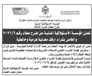 المؤسسة الاستهلاكية المدنية ترغب بشراء ارفف معدنية