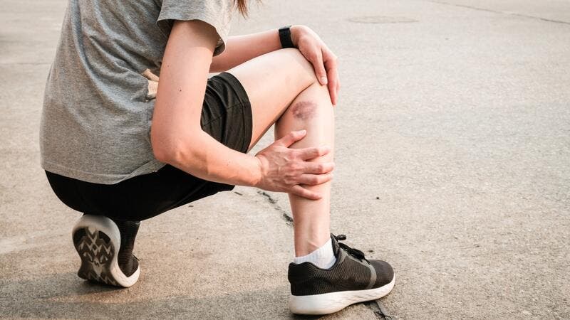 إذا تحول لون عضلة الساق للبنفسجي المائل للإحمرار يصاحبه تورم مؤلم وارتفاع درجة حرارة هذه المنطقة، فتقول فيدرهولد لموقع مينز هيلث إن ذلك قد لا يكون بسبب كدمة، لكنه قد يكون علامة على الخثار الوريدي، وهو حدوث جلطة دموية في الوريد. وبحسب هيلث لاين يعد هذا الأمر حالة طبية طارئة يجب معالجتها بشكل فوري، حيث أن التجلط قد ينتقل للرئتين ويتسبب في جلطة للشريان الرئوي.