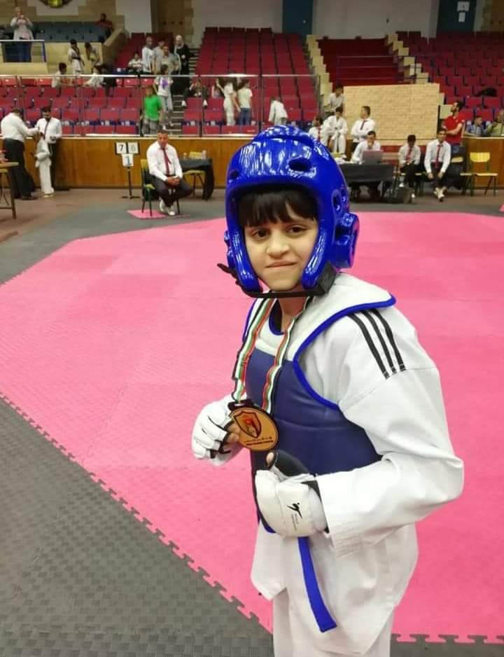 عمون - حصل لاعب نادي العساف للتايكواندو عبادة ايهاب سليم المعاني على الحزام الاسود (1 دان ).