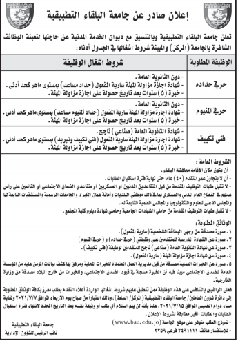 وظائف شاغرة لدى جامعة البلقاء التطبيقية