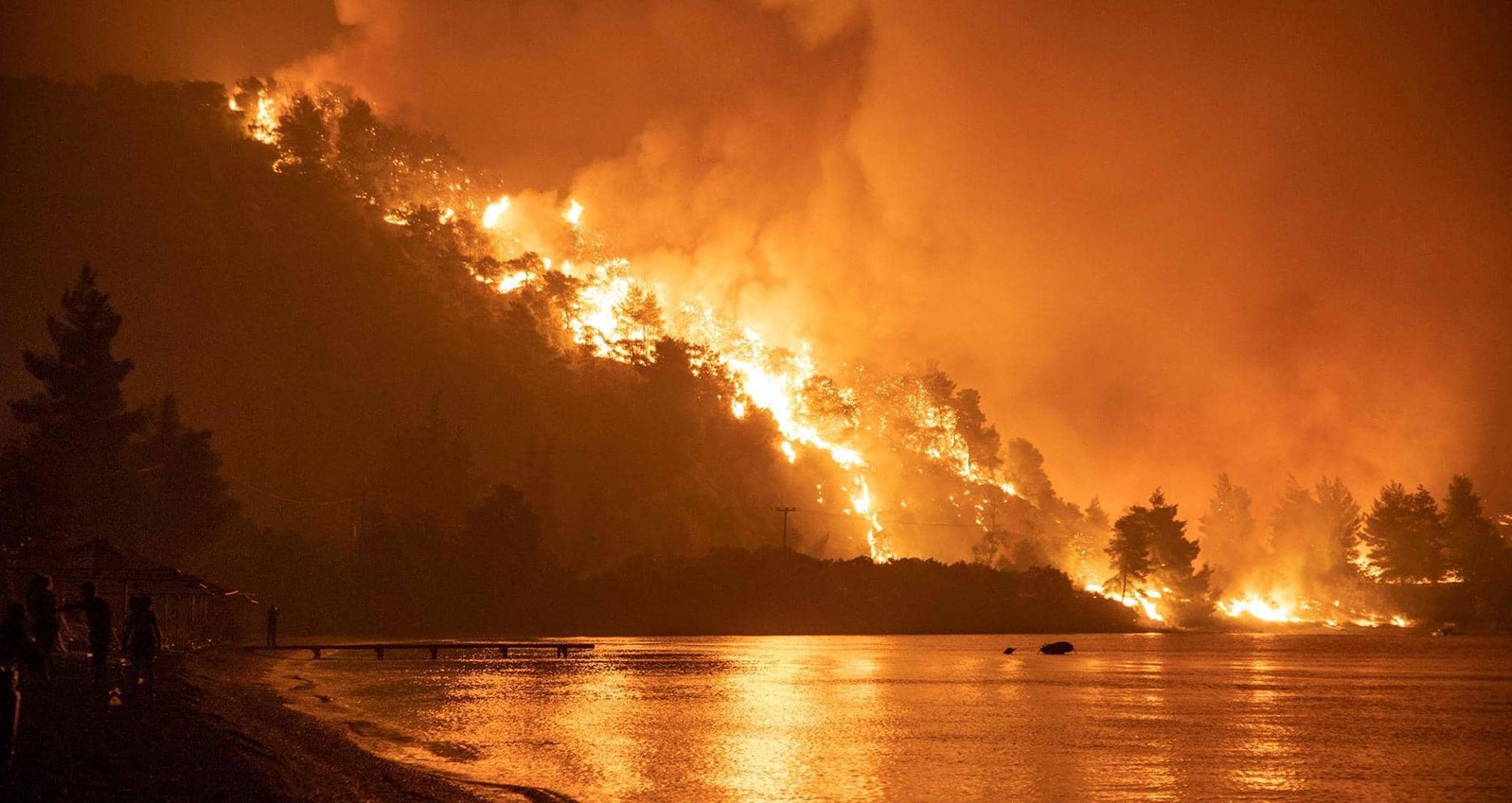 وفي مشاهد مروعة، أثناء الليل وحتى اليوم السبت، قامت العبارات بإجلاء 1153 شخصا من قرية ساحلية وشواطئ في جزيرة إيفيا، وهي جزيرة من الجبال الوعرة والغابات يتردد عليها المصطافون والمخيمون، بعد أن أوقفت النيران من حرائق غابات ضخمة مشتعلة لأيام كل وسائل الهروب الأخرى.