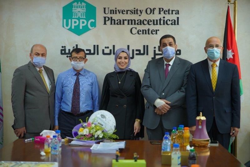 وتشكلت اللجنة الممتحنة من الأستاذ الدكتور رياض عوض، والأستاذ الدكتور هشام المطوبسي من كلية الصيدلة جامعة البترا والأستاذ الدكتور محمد الطناني أستاذ العلاجات في جامعة برادفورد في بريطانيا وعميد كلية الصيدلة بجامعة عمان الأهلية.