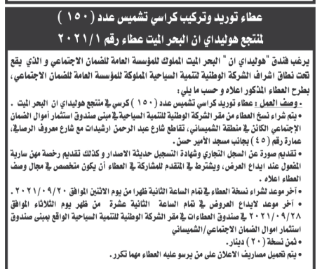 مطلوب توريد وتركيب كراسي تشميس