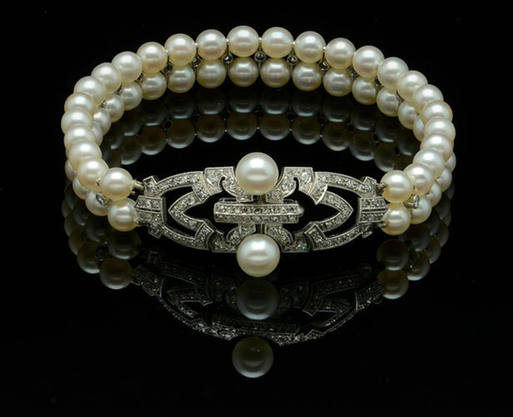 وتعتبر قطعة شخصية جداً في التاريخ الملكي ذات منشأ لا غبار عليه. " ويعتقد أن السوار الرائع من يحمل توقيع دار التصميم الباريسي للمجوهرات "كارتييه". ويتمتع بصفين من اللآلىء المنتهيين عند الطرفين بقطع ماسية دائرية الشكل.