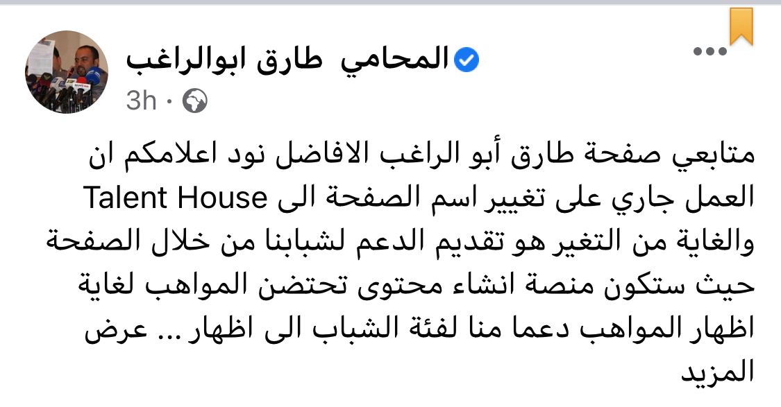 عمون - أعلن رئيس هيئة الاعلام المحامي طارق أبو الراغب عن عمله على بتغيير اسم صفحته عبر موقع التواصل الاجتماعي فيسبوك. |