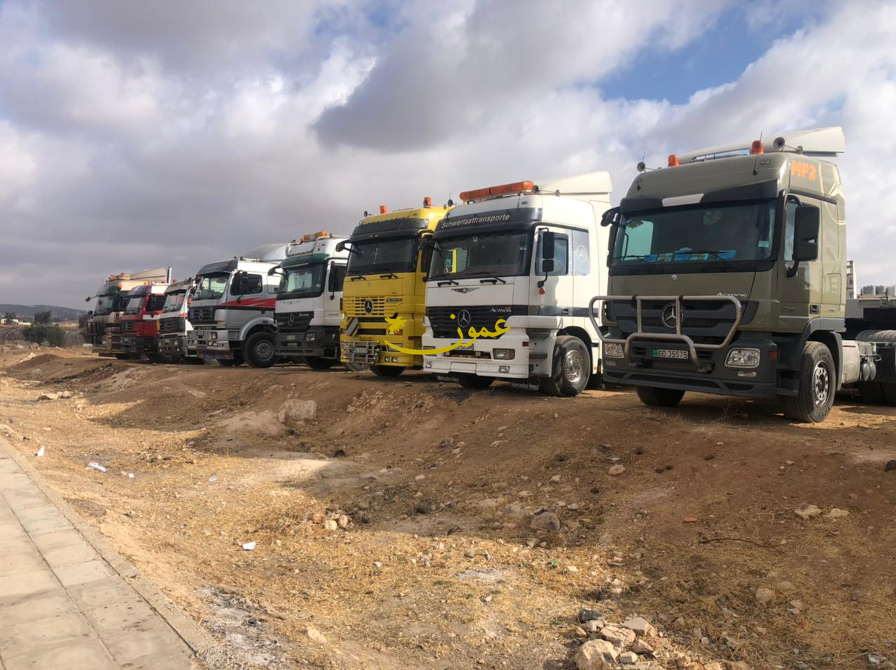 عمون - أحمد الدخيل - اعتصم عدد من مالكي شاحنات نقل المثقلات (اللوبوي) بالقرب من جسر مأدبا على طريق المطار احتجاجا على الشروط التي تفرضها عليهم مديرية الامن العام، والتي وصفوها بالتعجيزية.