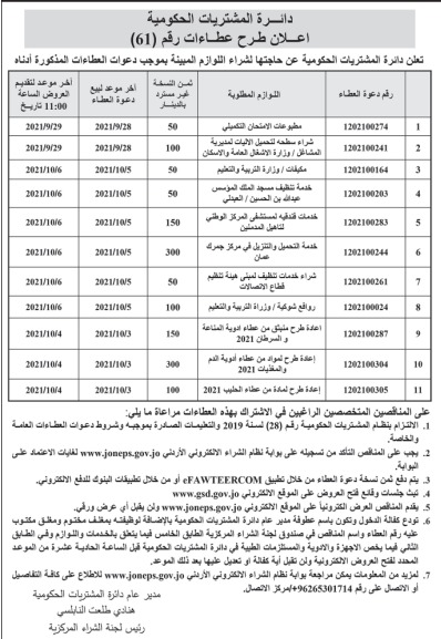 دائرة المشتريات الحكومية ترغب بشراء عدد من اللوازم