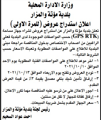بلدية مؤتة والمزار ترغب بشراء جهاز مساحة