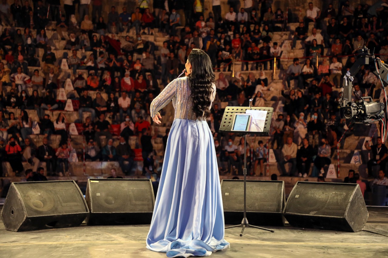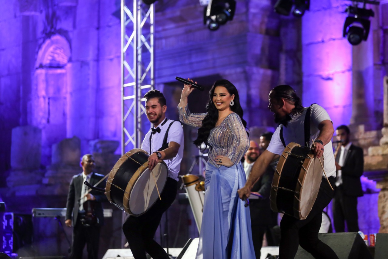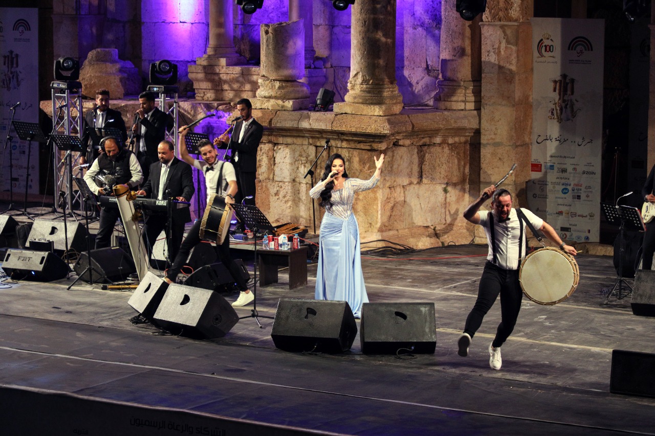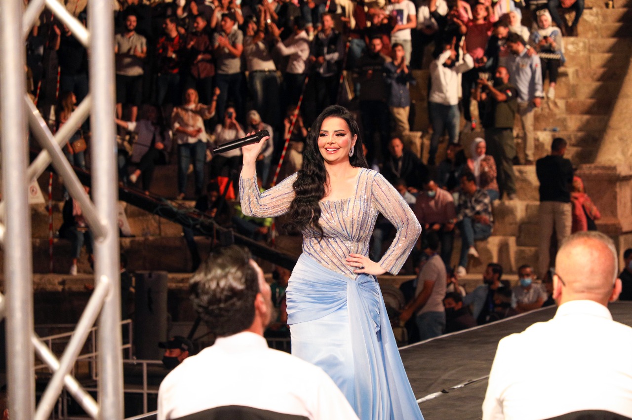 ومع أجواء الفرح ونشوة الحضور بنجمتهم كان لابد لأغنيتي (فرحتنا الليلة واردنية ها الليلة) أن تزينا السهرة، وهما الأغنيتان اللتان رددهما معها الجمهور عن ظهر قلب فغنوا مع نجمة الحفل وتمايلوا معها.