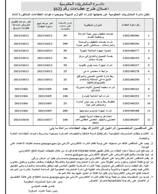 عطاءات صادرة عن دائرة المشتريات الحكومية