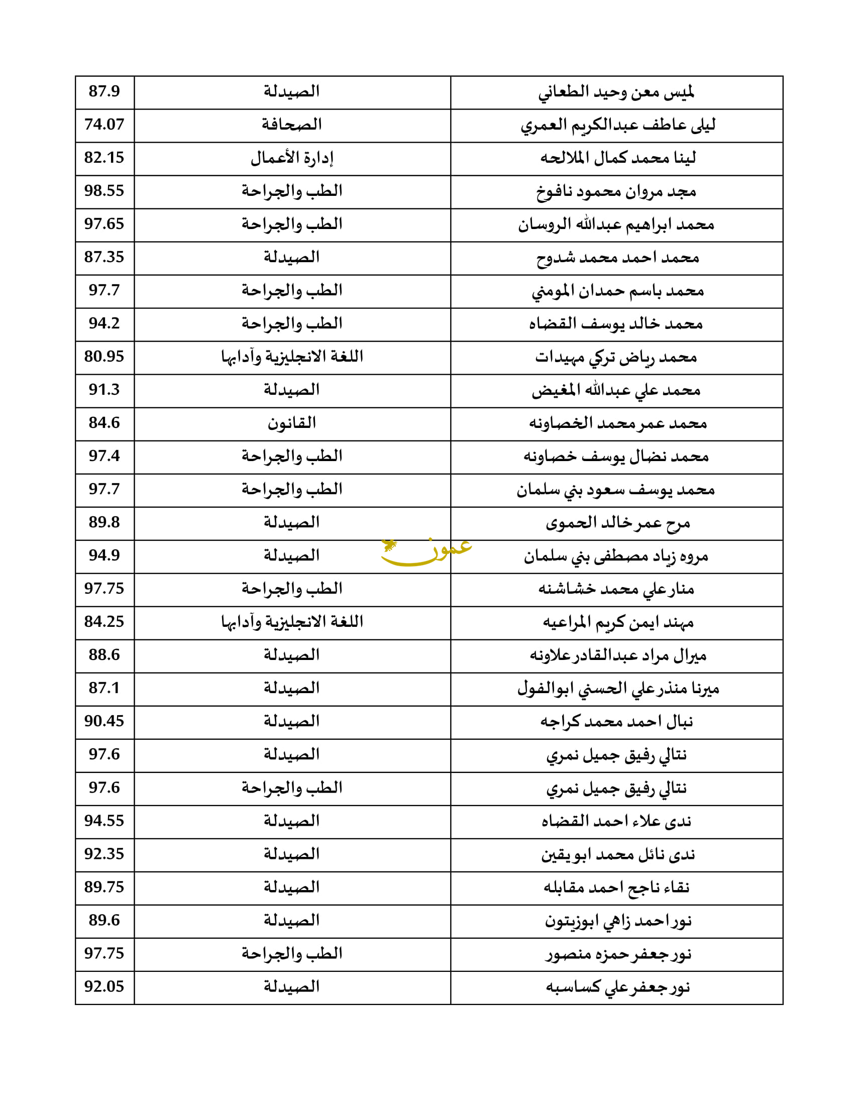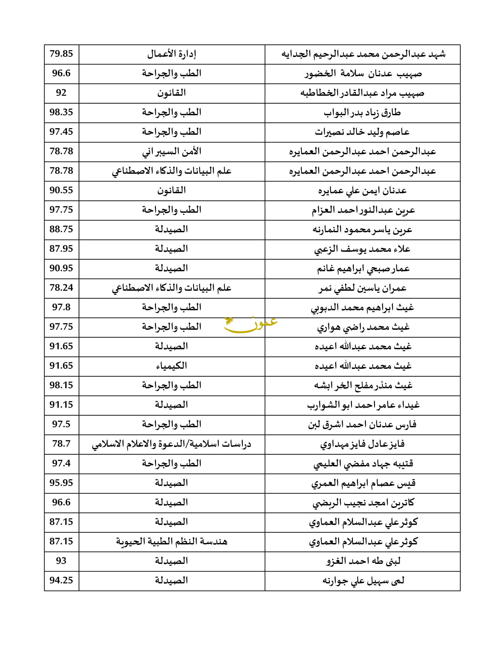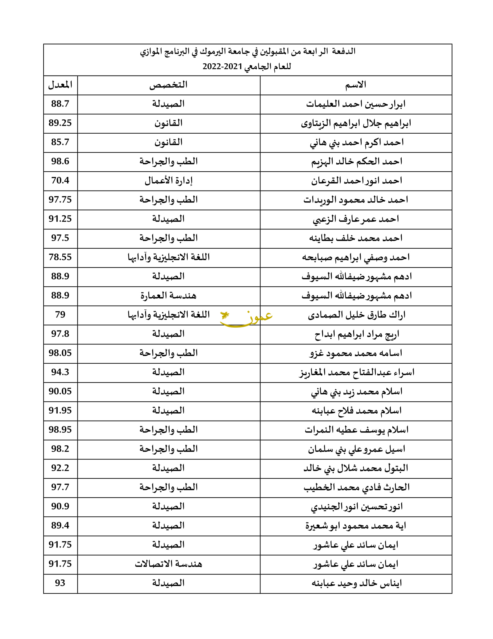 اليرموك تعلن الدفعة الرابعة من الموازي (اسماء)