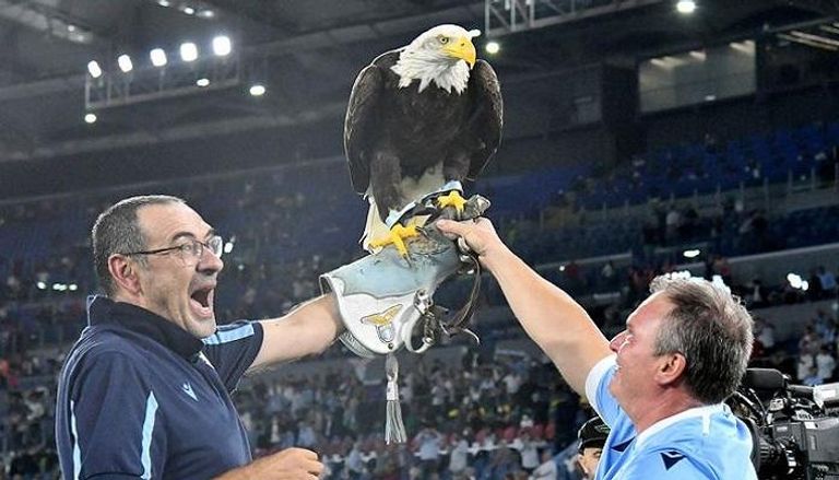 علماً بأن مدرب نسر لاتسيو كان يقوم في كل مباراة للفريق بملعب الأولمبيكو، بإدخال النسر شعار النادي لأرض الملعب.