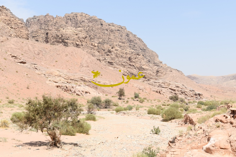 ومع وصولنا لقلب الوادي كانت قراءة المؤشر أننا هبطنا ثلاثمائة وخمسين متر، وأصبحنا ضمن حدود محافظة العقبة مع انتصاف النهار، لنكمل المسير بين أشجار البطم الأطلسيّ القديم، والدفلى بمجرى الوادي الواسع الذي كان يوماً محطة على طريق التجارة ومدخل المدينة الجنوبي الواصل إلى الحميمة ووادي عربة وقاع مريبد الذي يبعد عنا طريقه الإسفلت سبعة كيلو متر، قرب دلاغا حيث كانت تستريح فيه القوافل قبل دخولها البترا.