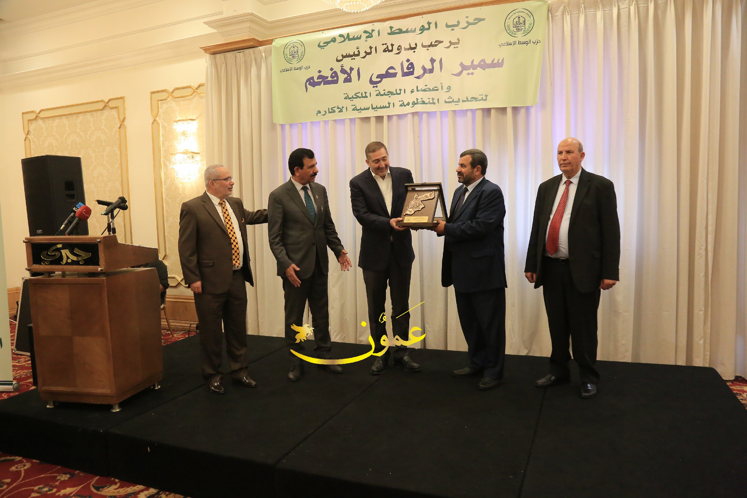 عمون - كرم حزب الوسط الاسلامي رئيس اللجنة الملكية لتحديث المنظومة السياسية العين سمير الرفاعي، وأعضاء المكتب التنفيذي للجنة اليوم الأربعاء.