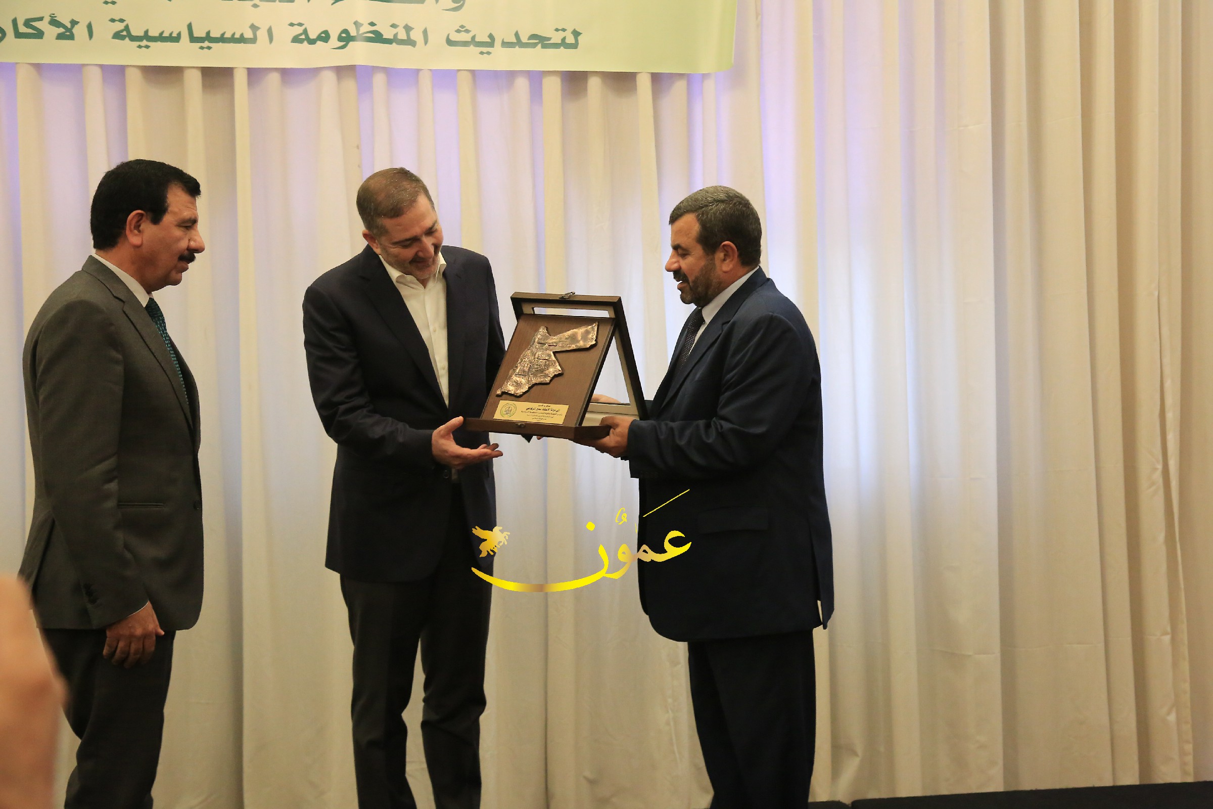 وأقيم حفل التكريم في قاعة جبري المركزي، بحضور عدد من الأمناء العامين للأحزاب الأردنية وأعضاء اللجنة الملكية لتحديث المنظومة السياسية، بالإضافة لعدد من الصحافيين والسياسين والناشطين المحليين.