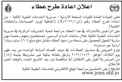 عطاء صادر عن القيادة العامة للقوات المسلحة