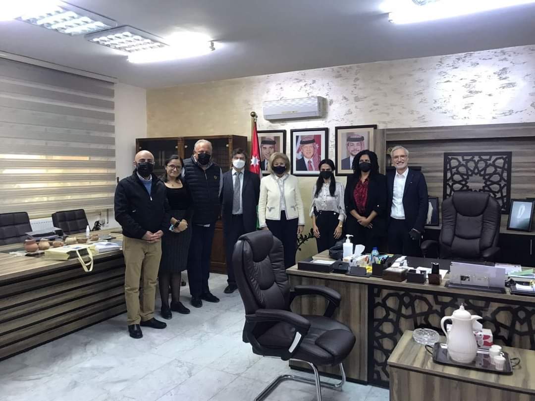عمون - التقت وزيرة الثقافة هيفاء النجار في مكتبها يوم الأربعاء الماضي فريق جوقة فيينا للبنين الممثلة بالدكتور غيرالد ويرث، رئيس الجوقة وريم جربوع، مديرة المشروع في فيينا، وبحضور السيد وورنر باشستين، مدير المختبر الفن المجتمعي/ النمسا، والآنسة سمر بندك، مديرة العلاقات الدولية، ووائل سليمان مدير عام كاريتاس الأردن وطارق الجندي.