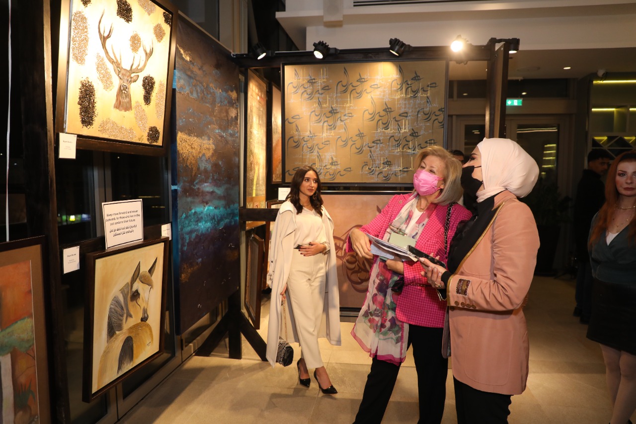 ومن بين الفنانين والفنانات المشاركين برزت لوحات رولا نشأت ومنتهى المغاريز وعماد الخالدي والاء ابو ميزر ومأمون المحاميد واسراء حاتمي ولبنى سحرور ودانا حوامده ونهى ابو دياك وزينة ناصر والدكتور عمران وتمارة الرابي وطيف الزهيري والاء عودة وجودي الحربي وياسين عبداللطيف وسوسن الريان ولبنى آل سكوتي وافنان عبويني وسلوى حديدي وزينه ادلبي وتحسين الزيدي ومطيع الجميلي وستار لقمان ولبنى موسى وراما المز واية يونس وعبير جعفر.