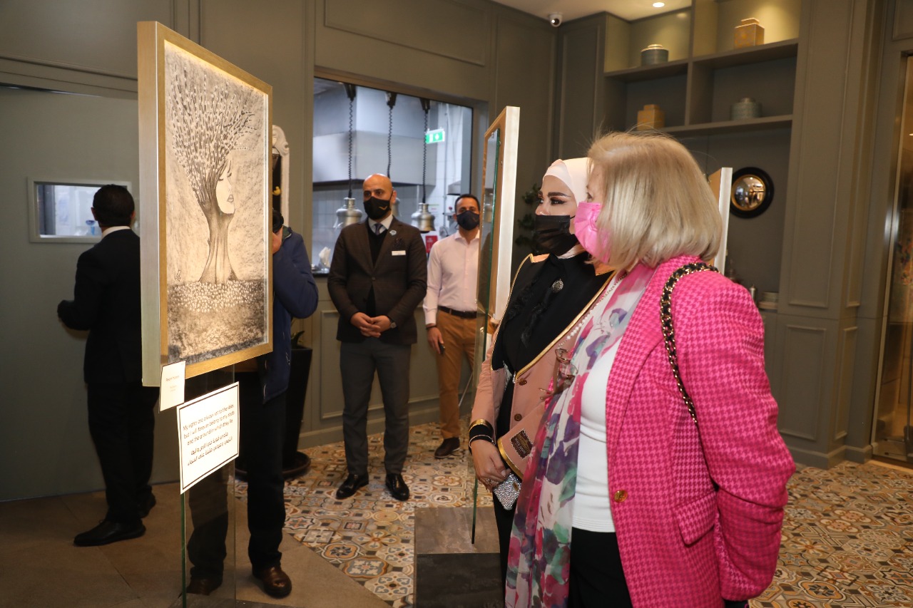 وتجولت الوزيرة في المعرض وإستمعت إلى شروحات من الفنانة ريم الحوراني وزملائها عن لوحاتهم التي إختلفت مدارسهم الفنية في تقديم أشكال مختلفة من الانماط الفنية.