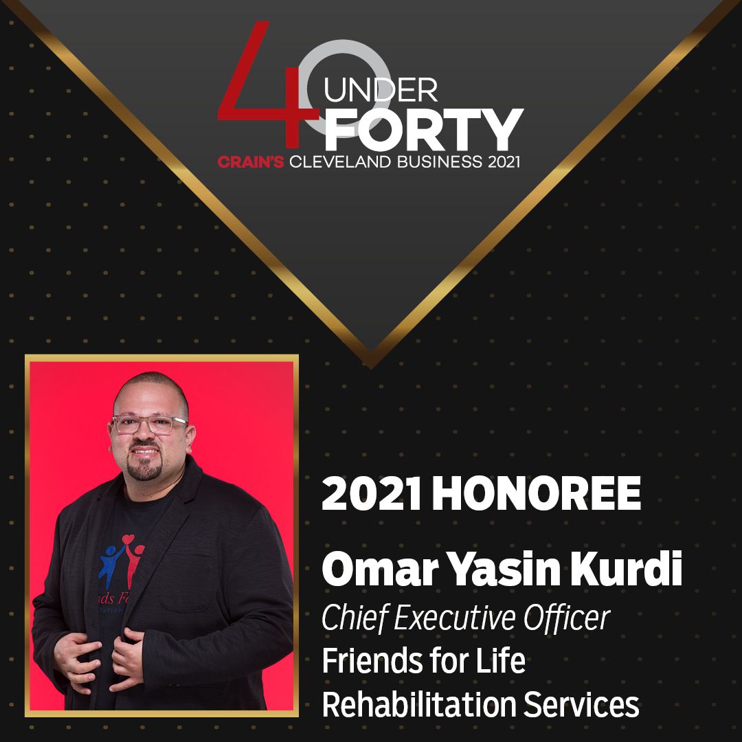 عمون - اختير الشاب الأردني عمر ياسين الكردي ضمن أفضل 40 شخصية قيادية تحت سن الاربعين في مدينة كليفلاند من قبل مجلة كرين كليفلاند للتجارة والاقتصاد.