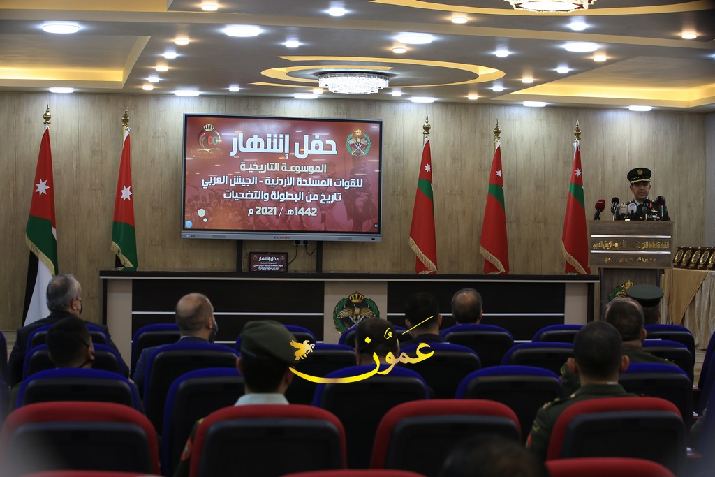 عمون - احتفلت القوات المسلحة الأردنية - الجيش العربي الخميس، بإشهار الموسوعة التاريخية للقوات المسلحة "تاريخ من البطولة والتضحيات"، في قاعة مؤتمرات القوات المسلحة الأردنية / صرح الشهيد عمان، بحضور وزير الدولة لشؤون الاعلام فيصل الشبول والمساعد للإدارة والقوى البشرية العميد الركن علي الدومي.