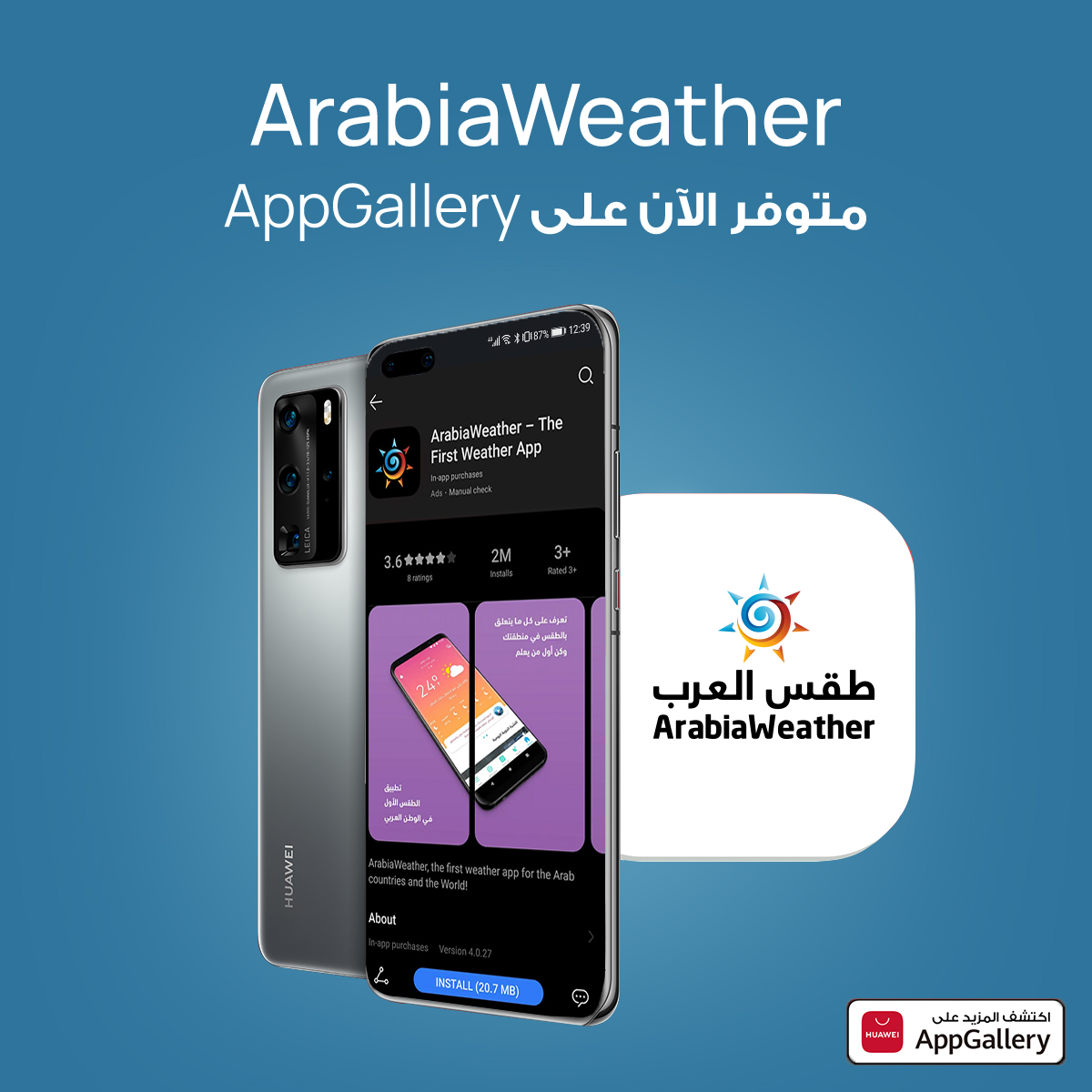 سارع بتحميل تطبيق طقس العرب (ArabiaWeather) عبر منصة AppGallery من هنا، وكُن أول من يعرف عن حالة الطقس في منطقتك.