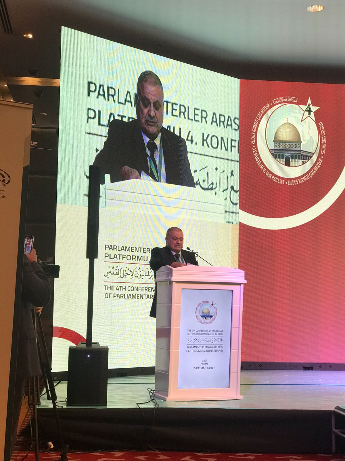جاء ذلك في كلمة له خلال ترأسه الوفد البرلماني المشارك بأعمال المؤتمر الرابع لرابطة برلمانيون من أجل القدس تحت عنوان " القدس خطنا الأحمر"، الذي يُعقد حالياً في العاصمة التركية انقرة والذي يضم النواب : موسى هنطش وايوب خميس و اسماعيل المشاقبة .