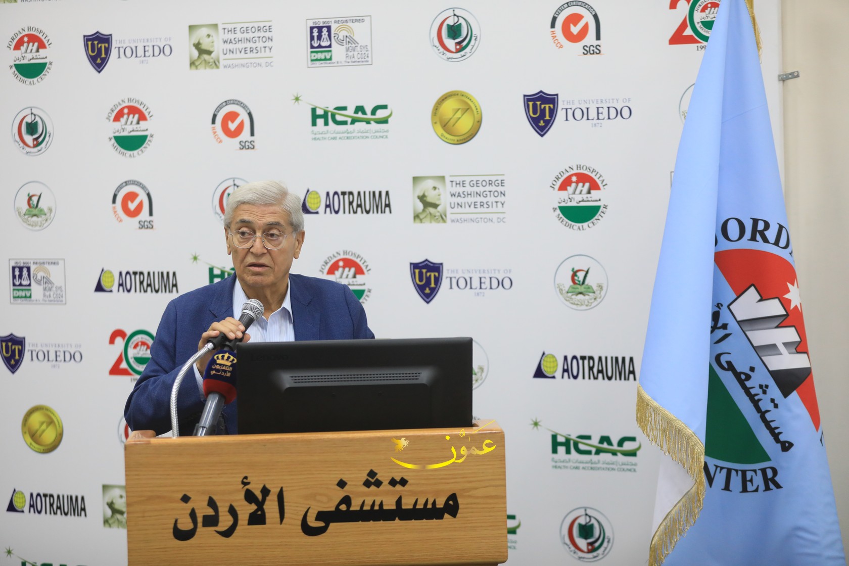 والقيت كلمات تمثل قدامى موظفي المستشفى قدمها الدكتور شومان محمد قبل ان يعرض رجل الاعمال ورئيس مجلس ادارة البنك التجاري الاردني حول افاق التعاون في مجال اقامة الجامعات الطبية الخاصة واهميتها اليوم في ظل تعاظم دور القطاع الطبي الخاص وفي ظل الظروف الراهنية اضافة الى اهمية الاستفادة من الامكانات الطبية والعلمية الاردنية لاقامة هذه المشاريع التعليمة الطبية الكبيرة.