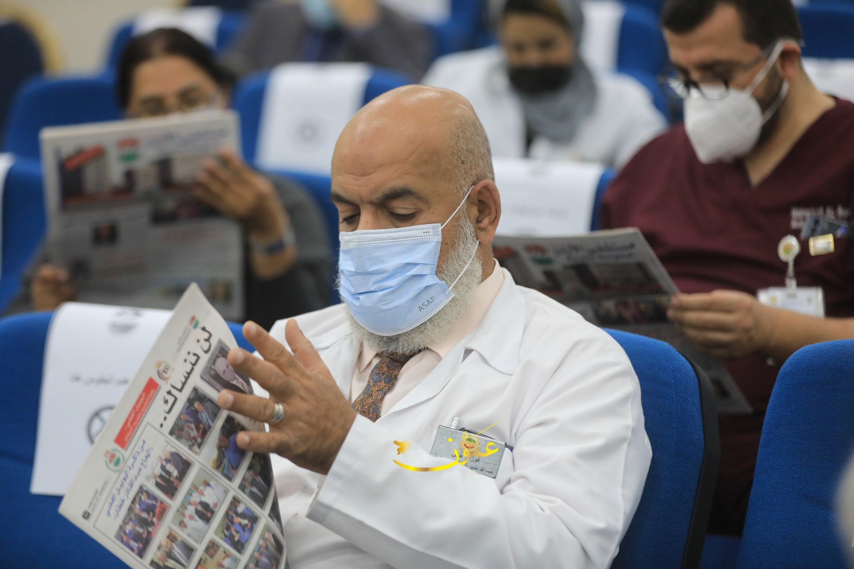 وقدم الدكتور رياض سعيد مدير التدريب والتعليم الطبي المستمر رؤية لما تحقق على صعيد التعليم الطبي في المستشفى وعدد الاطباء الخريجين من برامج الاقامة والزمالة في كافة الاختصاصات الطبية اضافة الى برامج التبادل العلمي والطبي مع الجامعات العالمية.