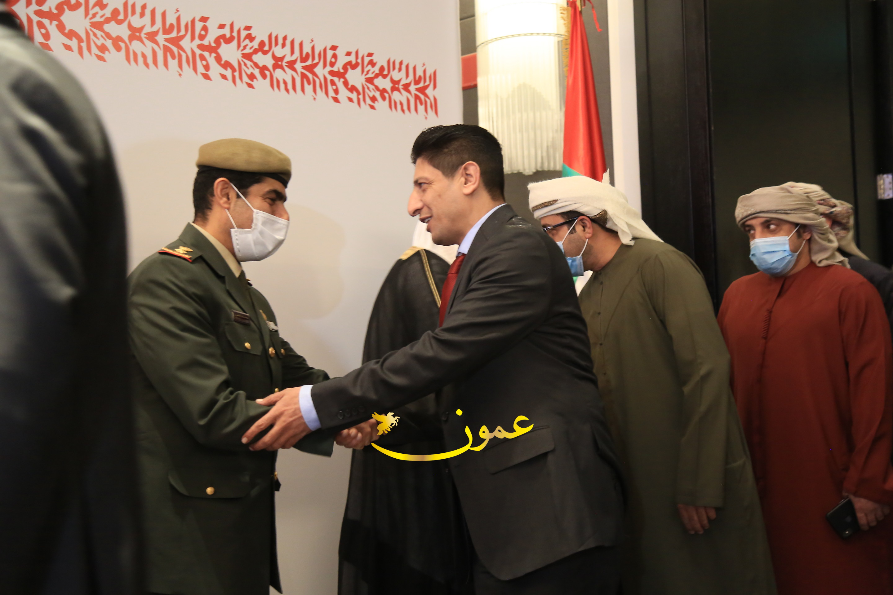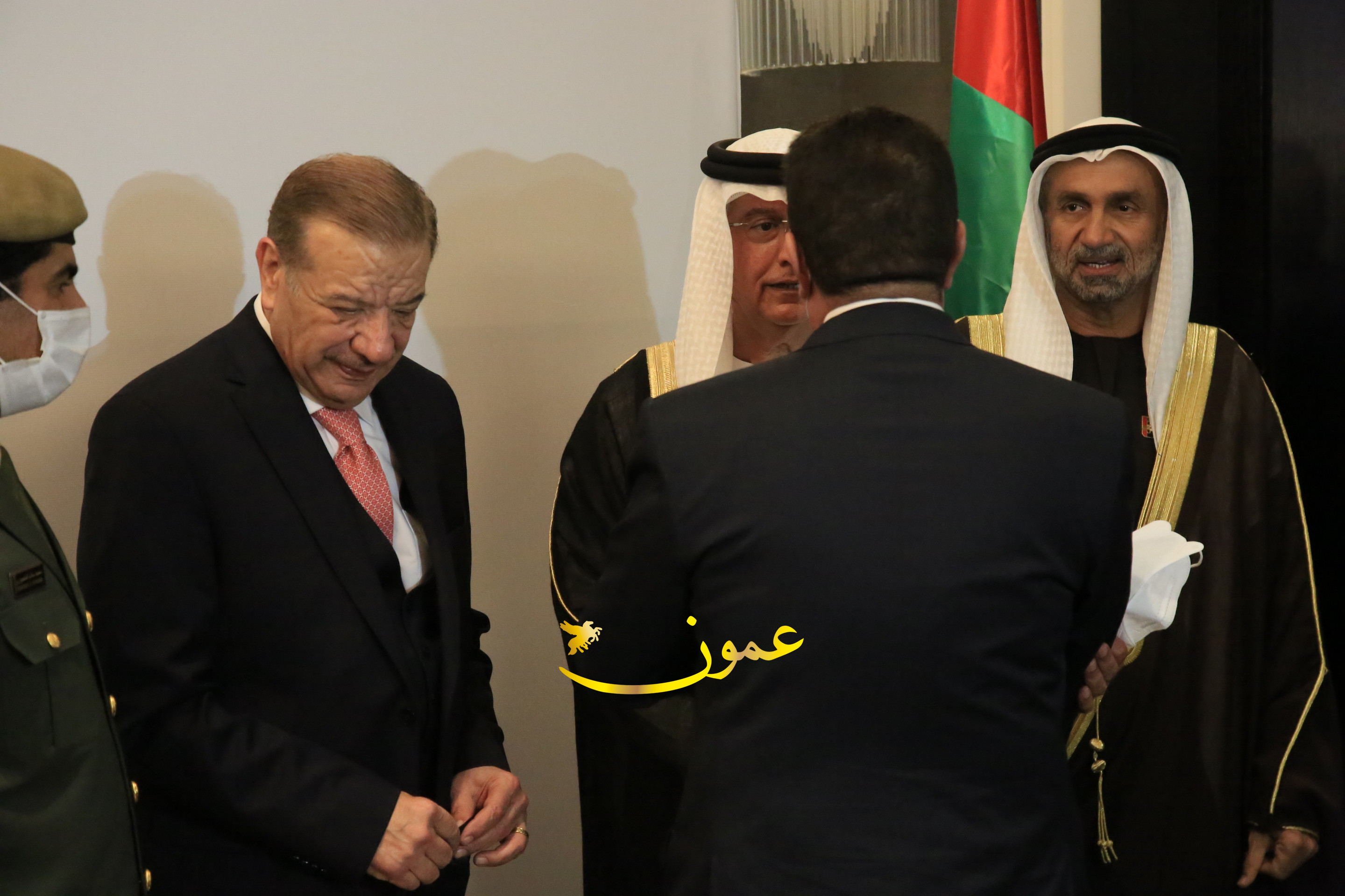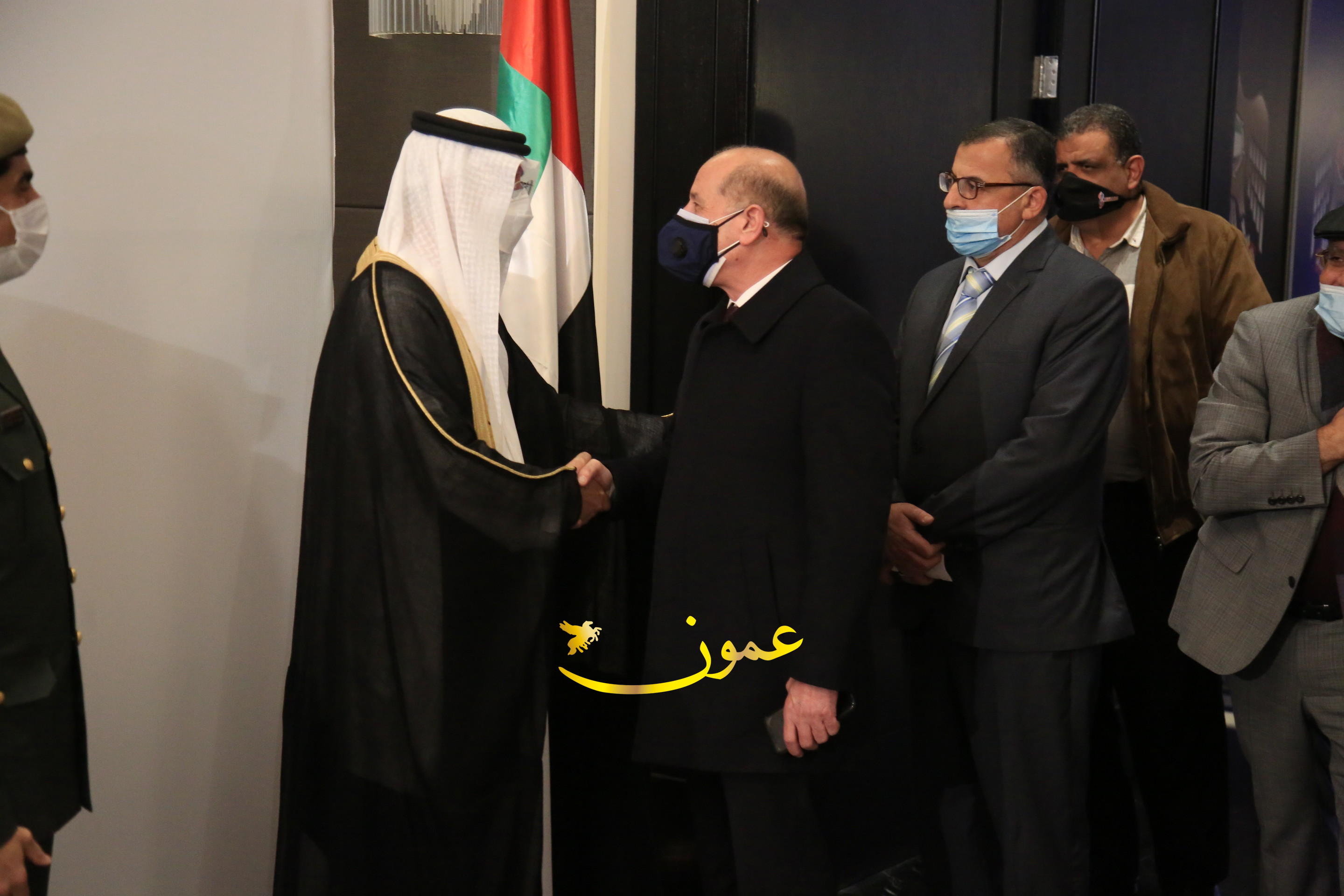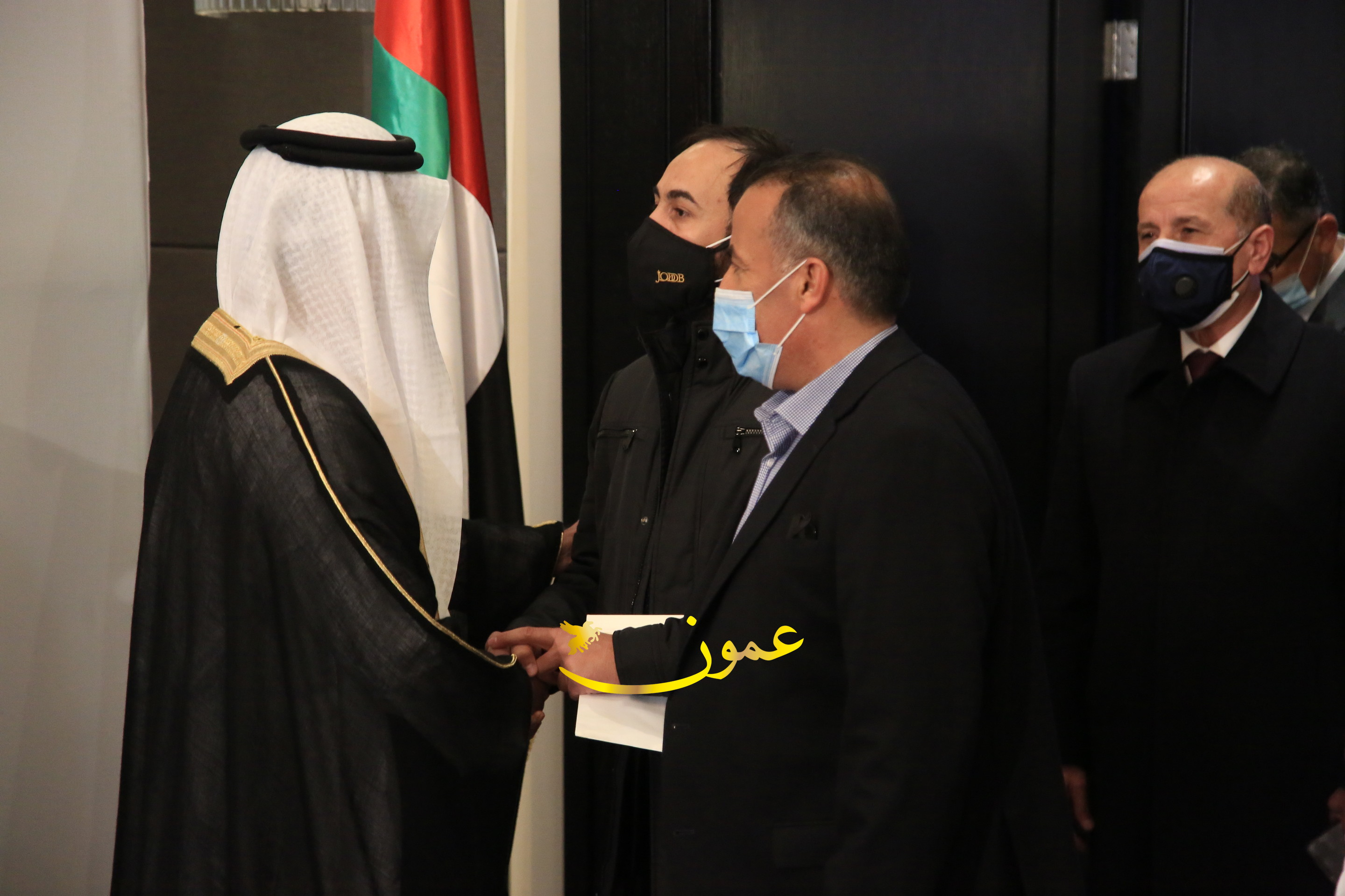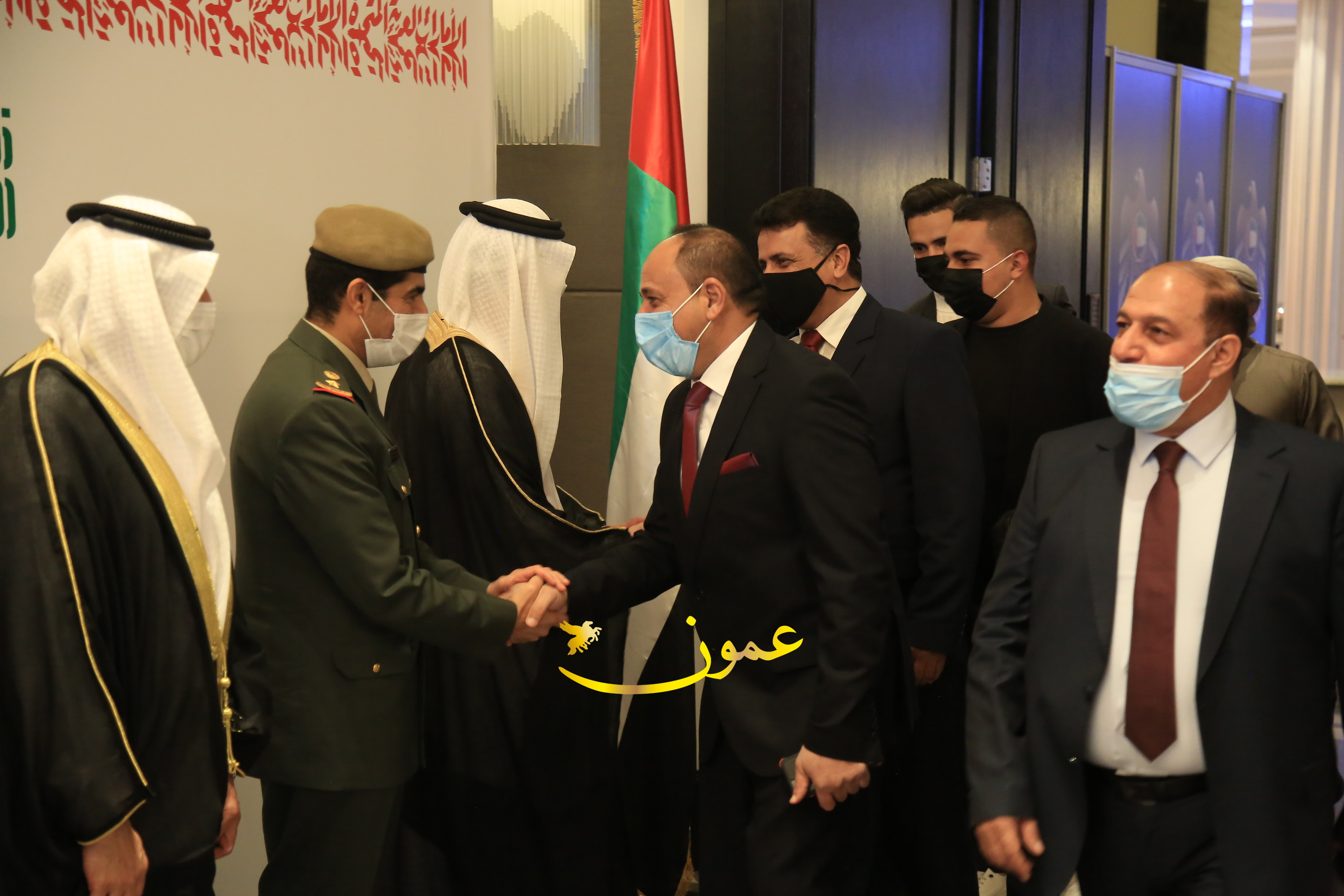 عمون - بمناسبة عيد الاتحاد الخمسين لدولة الإمارات العربية المتحدة، استقبل سفير دولة الإمارات العربية المتحدة لدى المملكة الأردنية الهاشمية أحمد علي البلوشي مساء الأربعاء في الإحتفال الذي أقامته السفارة الإماراتية بالعاصمة الأردنية عمّان، كبار المسؤولين الأردنيين يتقدمهم رئيس مجلس الأعيان فيصل الفايز، ورئيس مجلس النواب عبدالكريم الدغمي، ورئيس الديوان الملكي يوسف العيسوي، وعدد من أصحاب المعالي والسعادة: الوزراء والأعيان والنواب وكبار رجال السلك الدبلوماسي والعسكري والقضائي ورؤساء البعثات الدبلوماسية العربية والأجنبية وشخصيات سياسية واقتصادية وثقافية وإعلامية ومسؤولي مؤسسات المجتمع المدني والمنظمات الدولية، إضافة إلى شيوخ العشائر من مختلف محافظات المملكة.