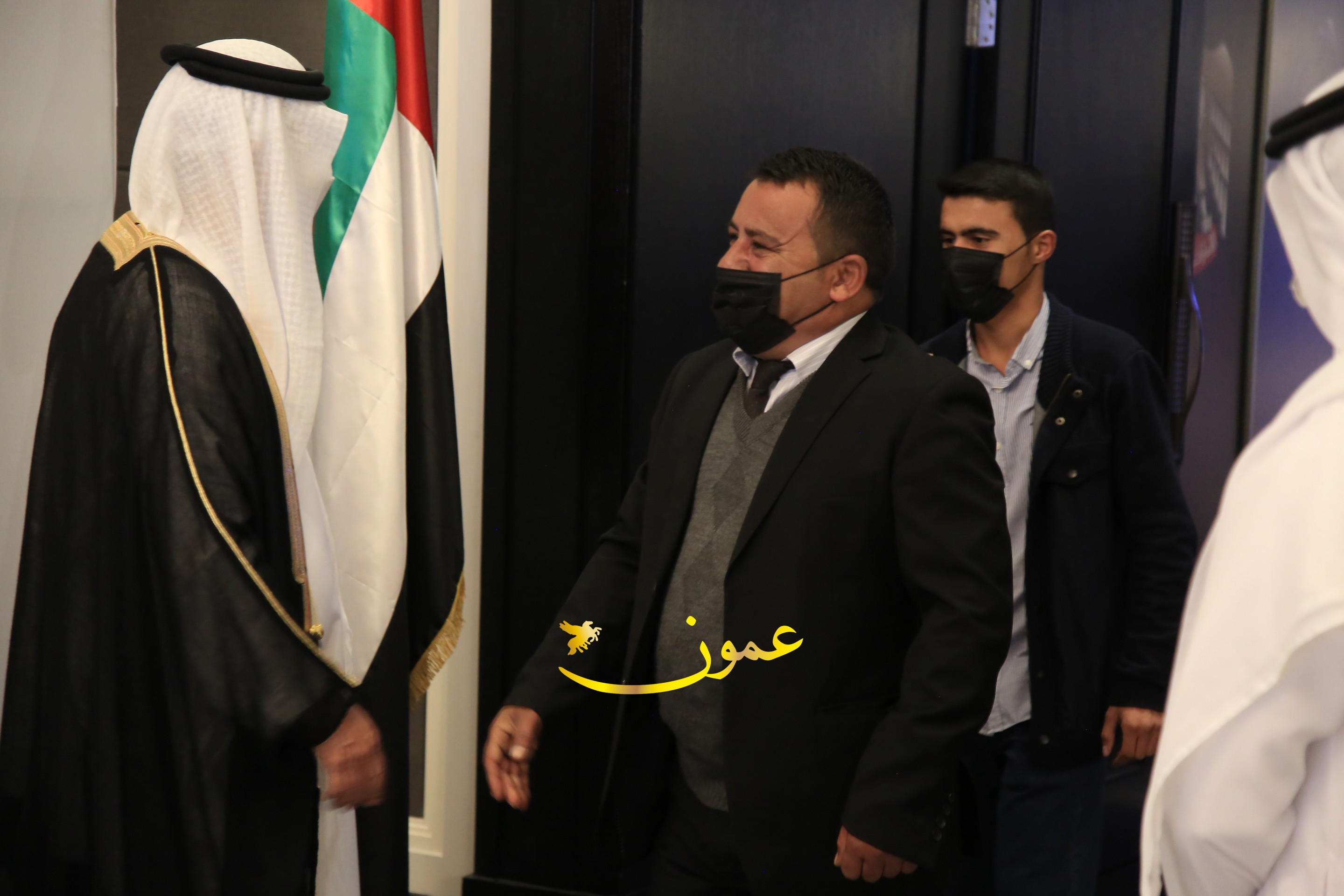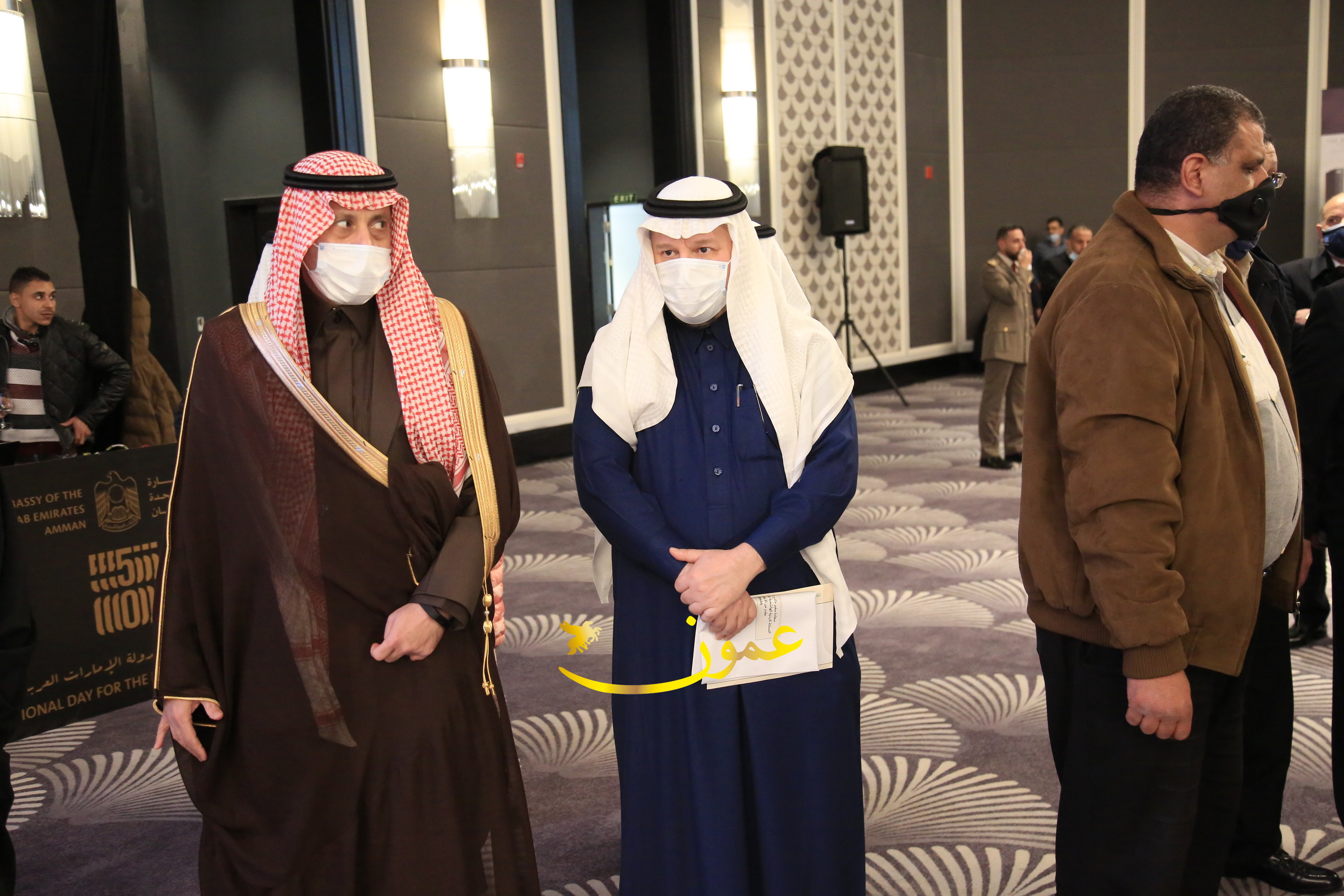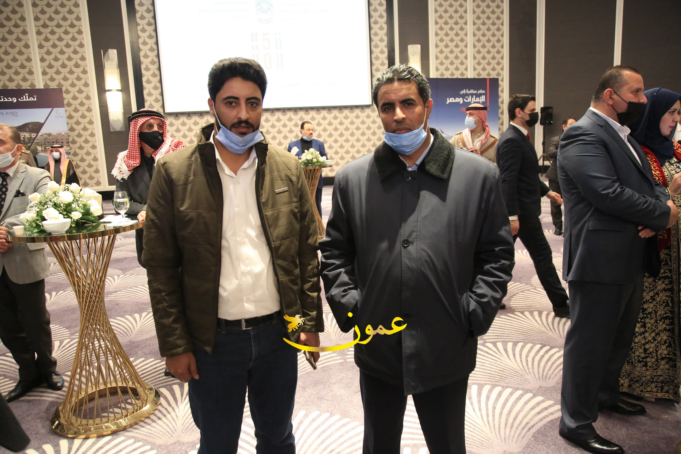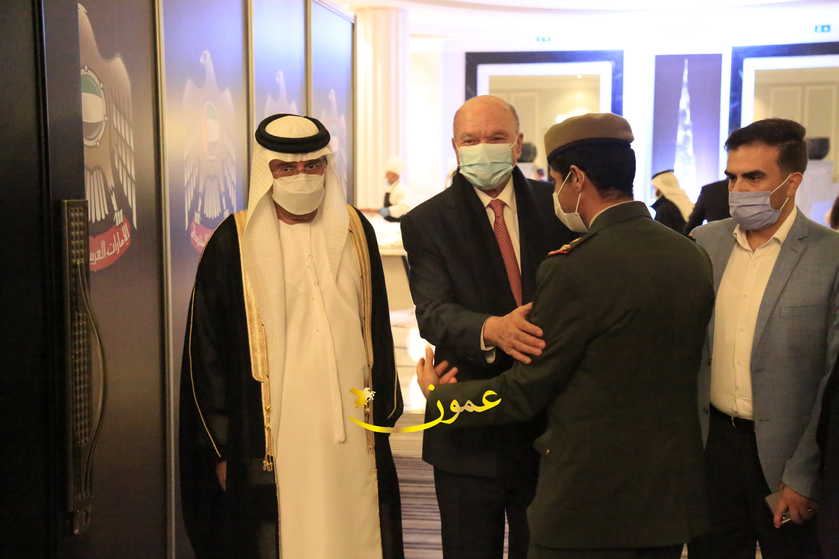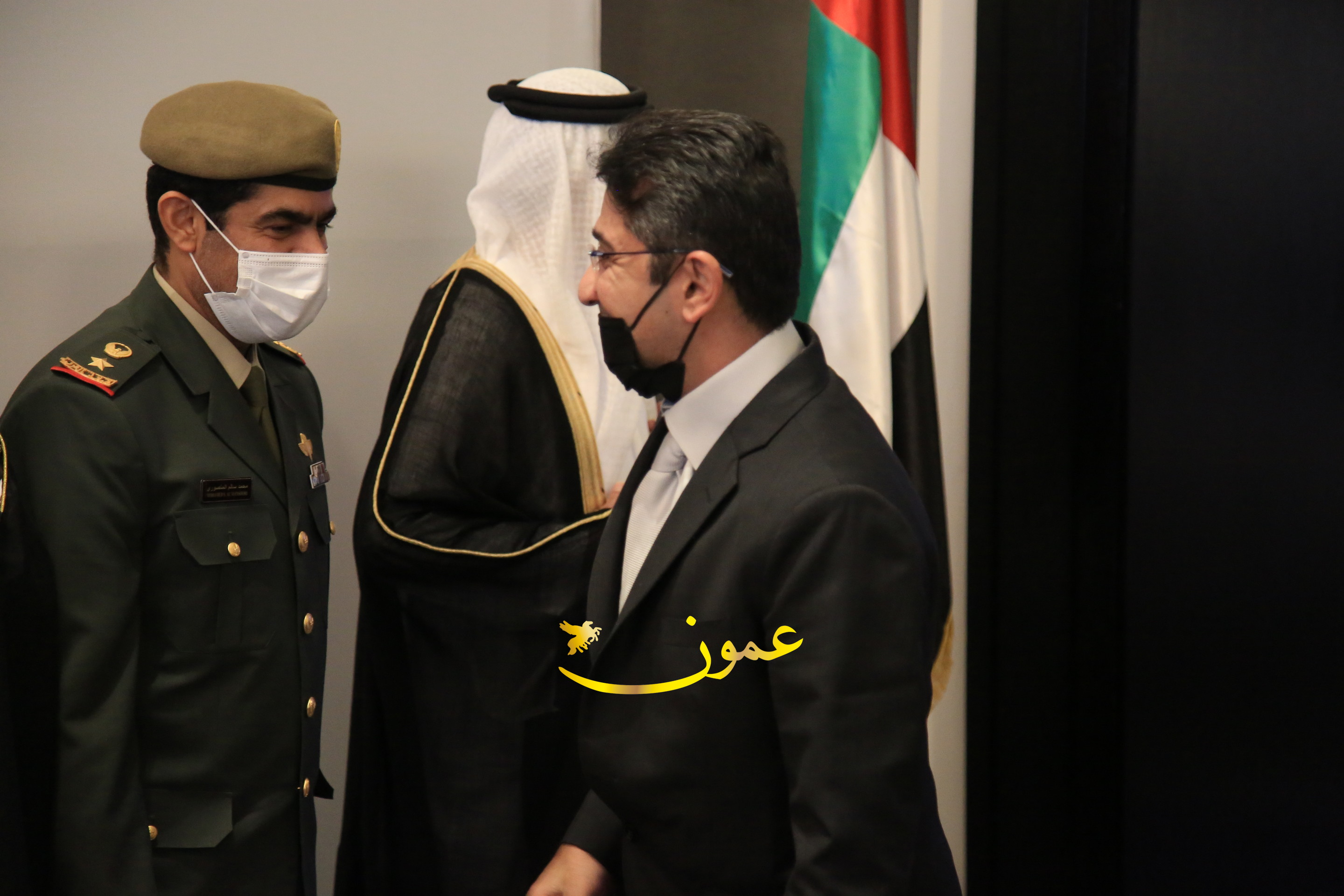 عمون - بمناسبة عيد الاتحاد الخمسين لدولة الإمارات العربية المتحدة، استقبل سفير دولة الإمارات العربية المتحدة لدى المملكة الأردنية الهاشمية أحمد علي البلوشي مساء الأربعاء في الإحتفال الذي أقامته السفارة الإماراتية بالعاصمة الأردنية عمّان، كبار المسؤولين الأردنيين يتقدمهم رئيس مجلس الأعيان فيصل الفايز، ورئيس مجلس النواب عبدالكريم الدغمي، ورئيس الديوان الملكي يوسف العيسوي، وعدد من أصحاب المعالي والسعادة: الوزراء والأعيان والنواب وكبار رجال السلك الدبلوماسي والعسكري والقضائي ورؤساء البعثات الدبلوماسية العربية والأجنبية وشخصيات سياسية واقتصادية وثقافية وإعلامية ومسؤولي مؤسسات المجتمع المدني والمنظمات الدولية، إضافة إلى شيوخ العشائر من مختلف محافظات المملكة.