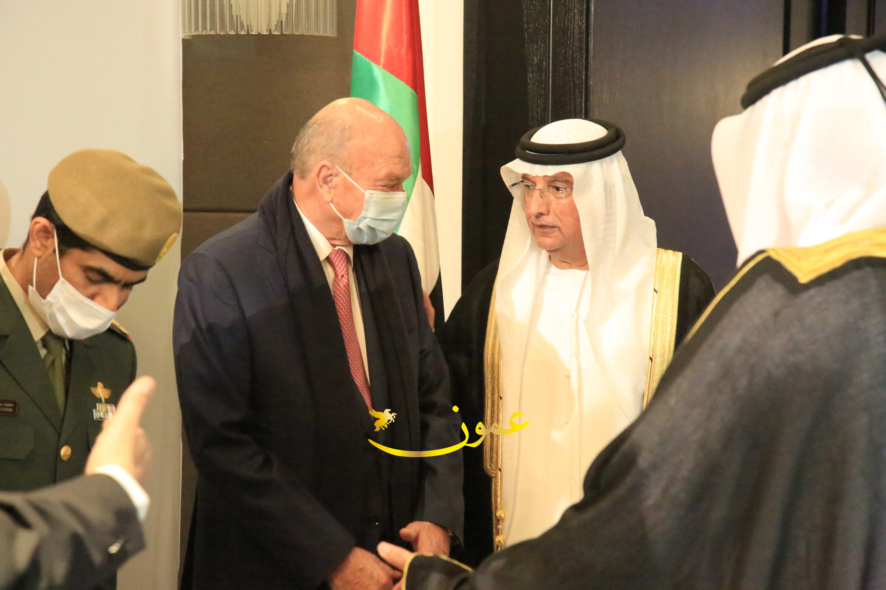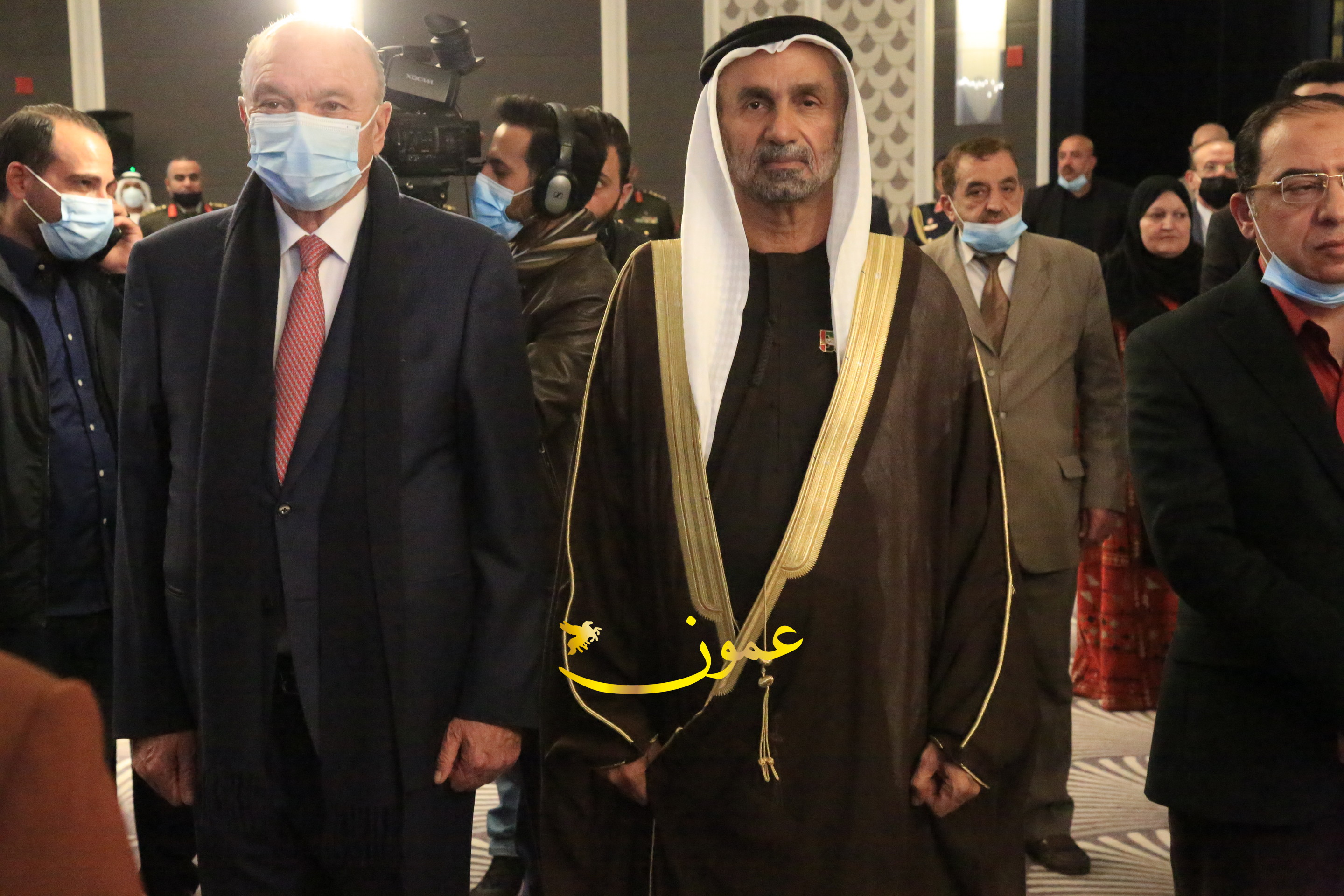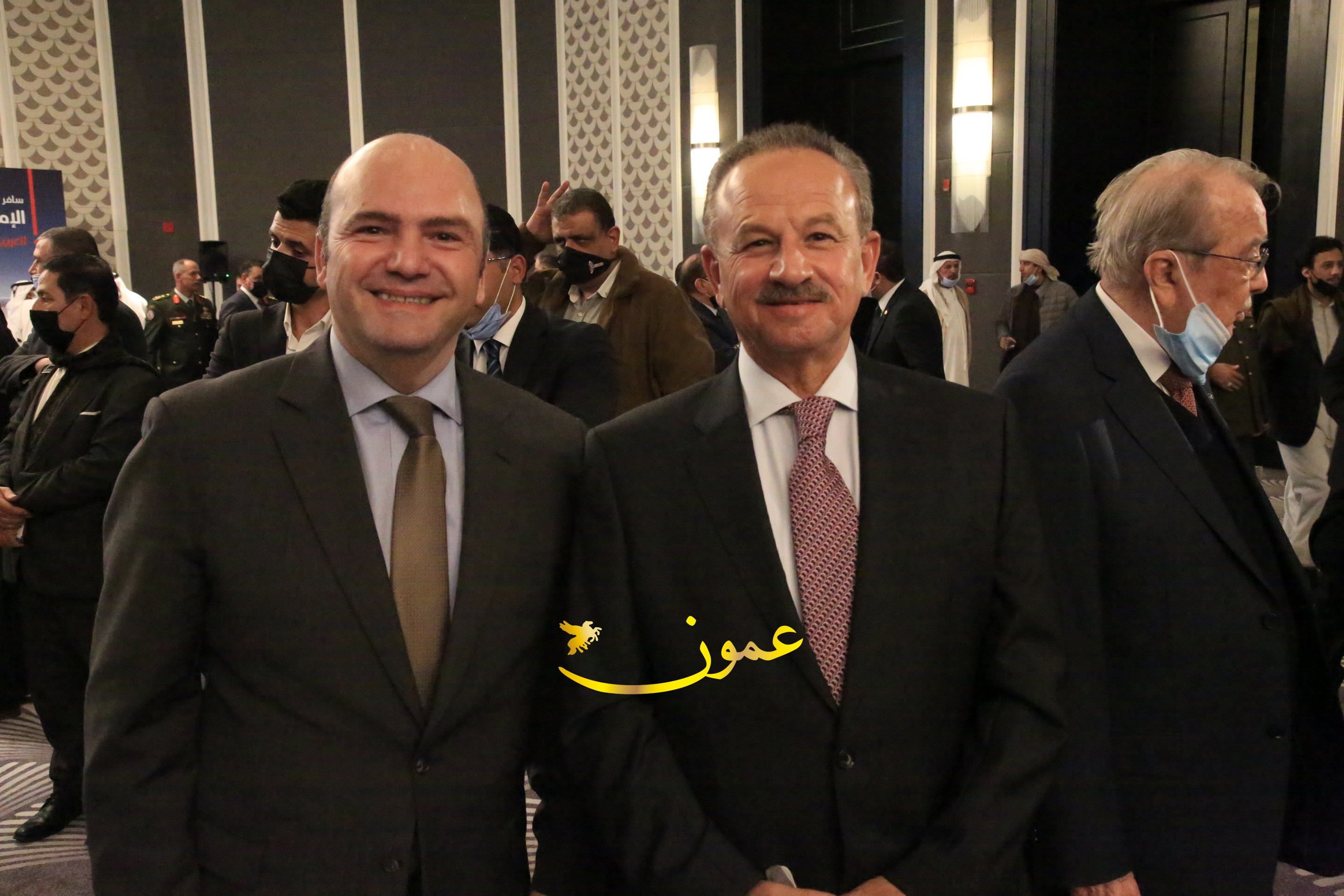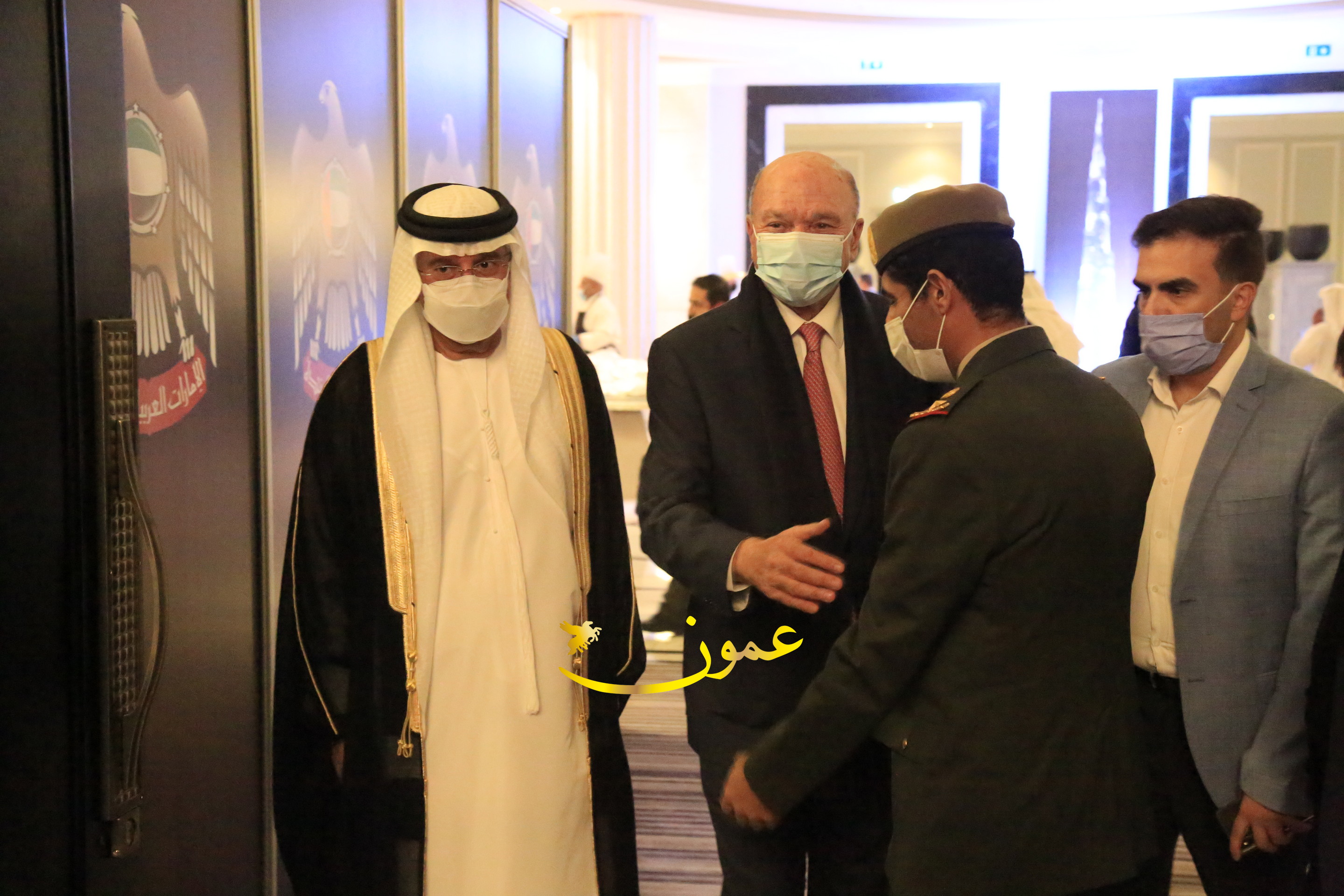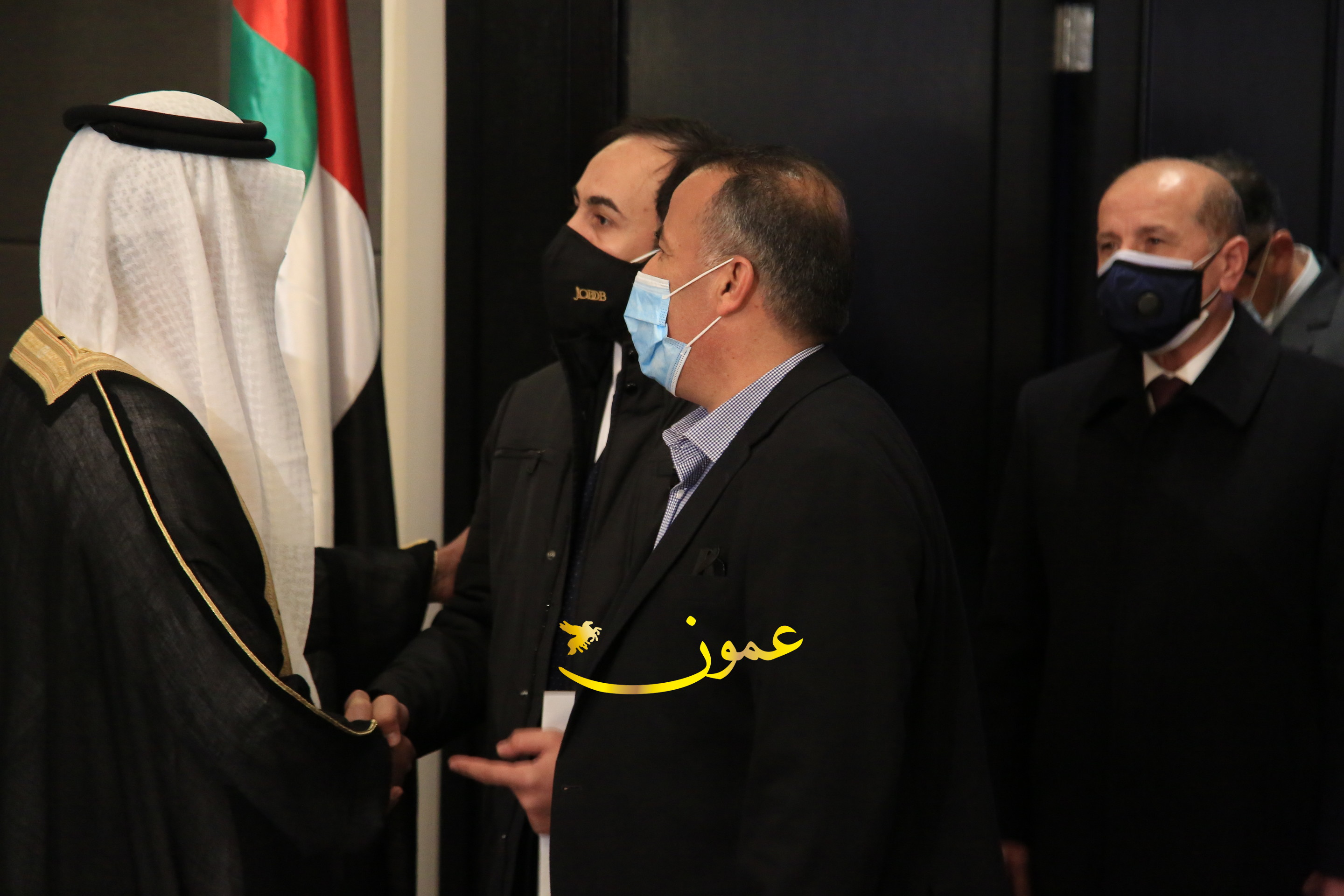 عمون - بمناسبة عيد الاتحاد الخمسين لدولة الإمارات العربية المتحدة، استقبل سفير دولة الإمارات العربية المتحدة لدى المملكة الأردنية الهاشمية أحمد علي البلوشي مساء الأربعاء في الإحتفال الذي أقامته السفارة الإماراتية بالعاصمة الأردنية عمّان، كبار المسؤولين الأردنيين يتقدمهم رئيس مجلس الأعيان فيصل الفايز، ورئيس مجلس النواب عبدالكريم الدغمي، ورئيس الديوان الملكي يوسف العيسوي، وعدد من أصحاب المعالي والسعادة: الوزراء والأعيان والنواب وكبار رجال السلك الدبلوماسي والعسكري والقضائي ورؤساء البعثات الدبلوماسية العربية والأجنبية وشخصيات سياسية واقتصادية وثقافية وإعلامية ومسؤولي مؤسسات المجتمع المدني والمنظمات الدولية، إضافة إلى شيوخ العشائر من مختلف محافظات المملكة.