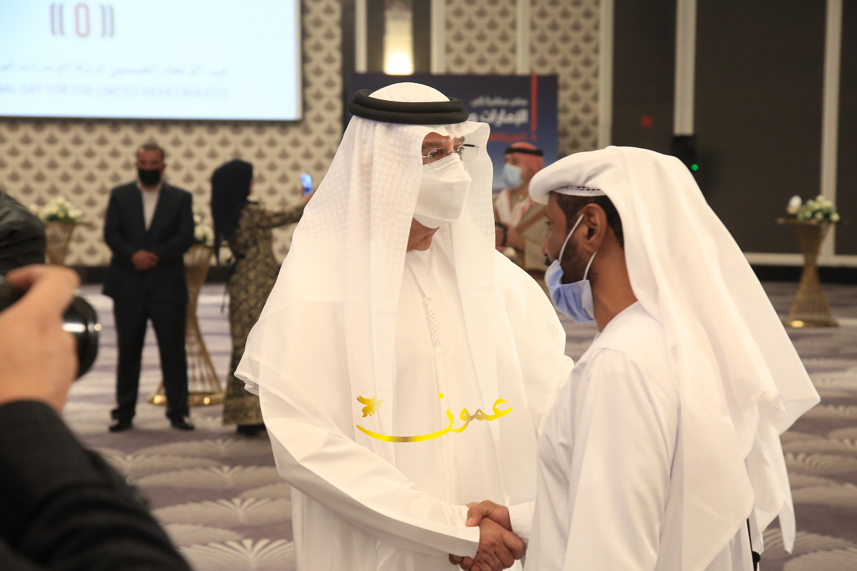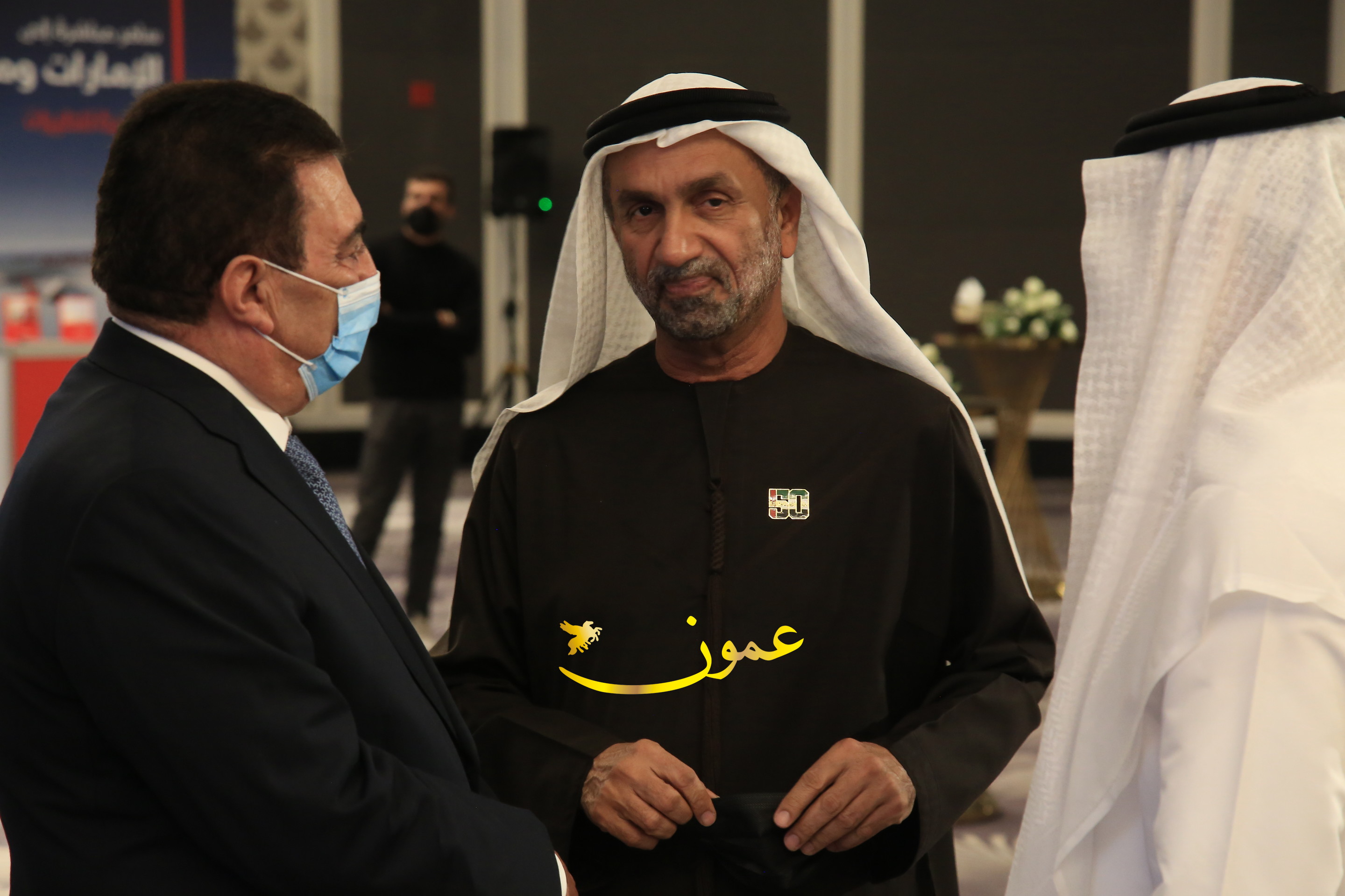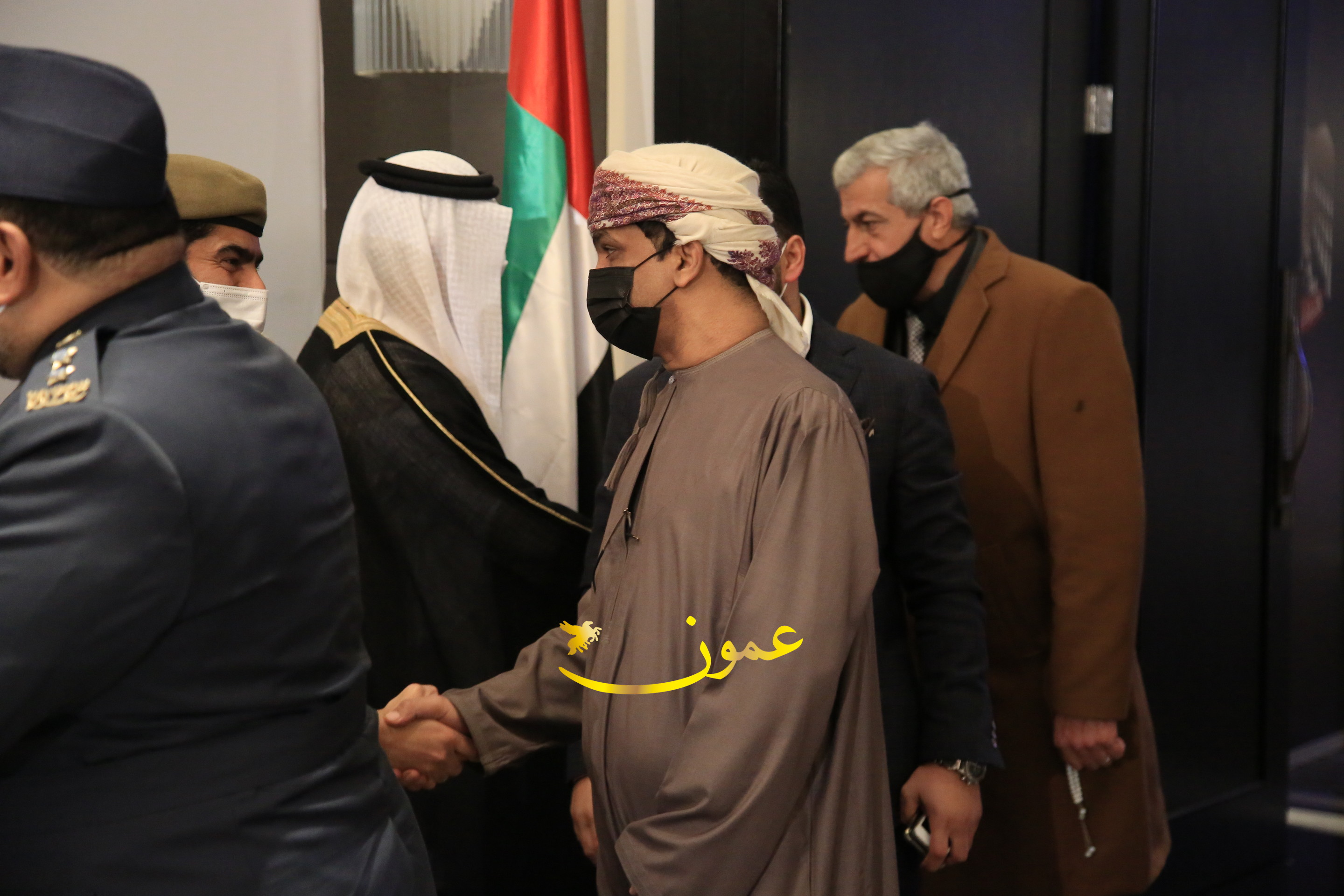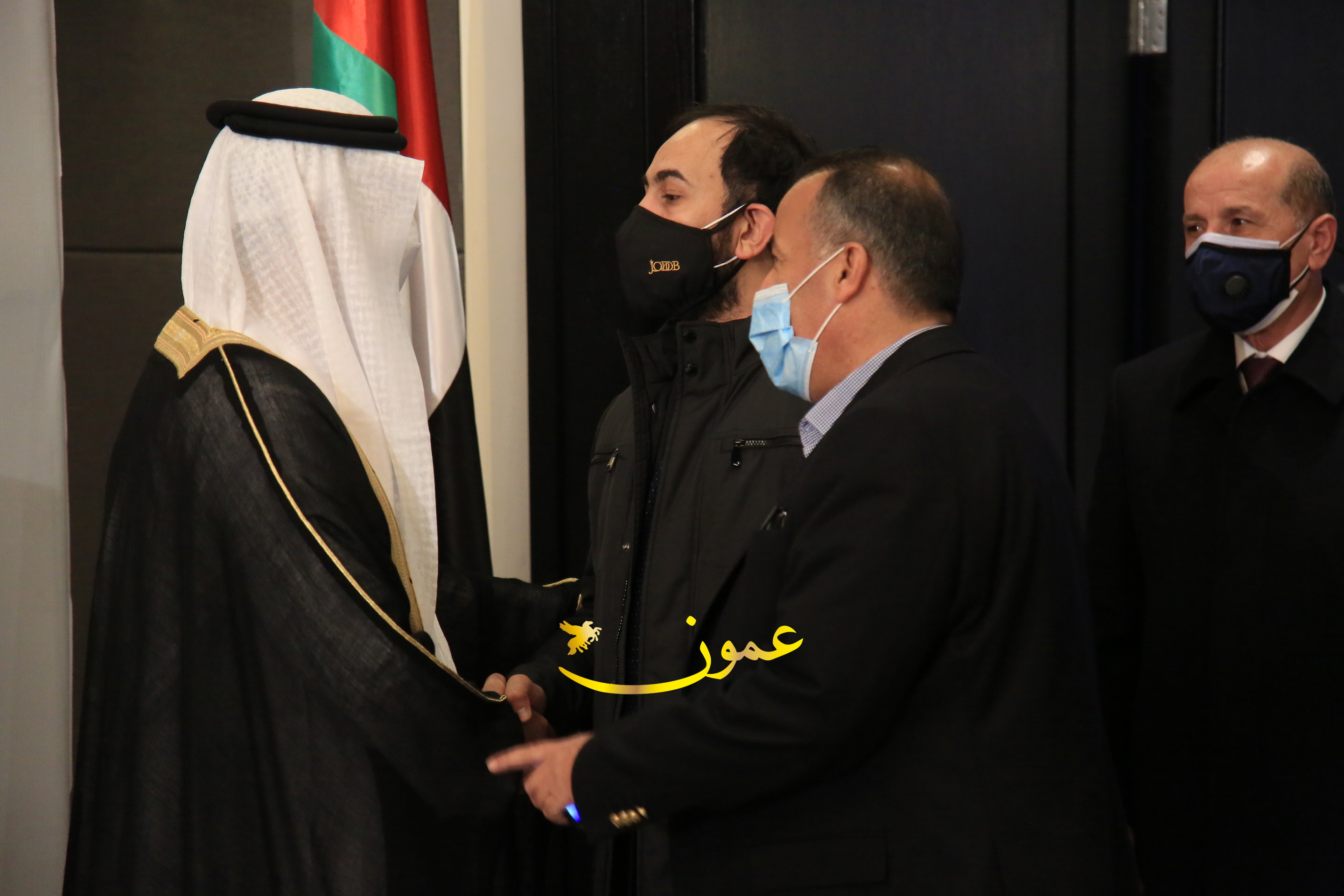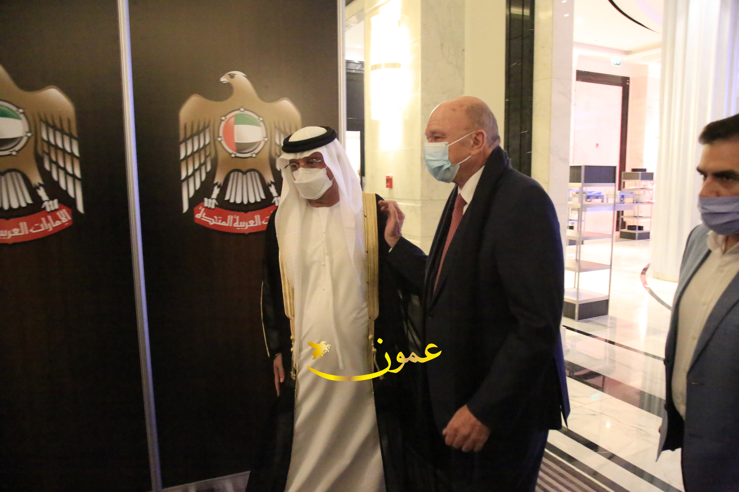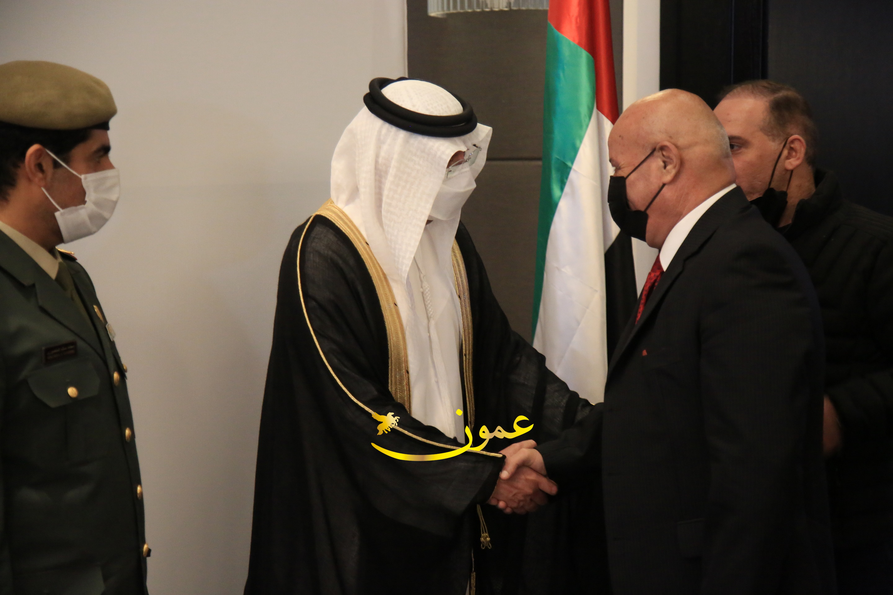 عمون - بمناسبة عيد الاتحاد الخمسين لدولة الإمارات العربية المتحدة، استقبل سفير دولة الإمارات العربية المتحدة لدى المملكة الأردنية الهاشمية أحمد علي البلوشي مساء الأربعاء في الإحتفال الذي أقامته السفارة الإماراتية بالعاصمة الأردنية عمّان، كبار المسؤولين الأردنيين يتقدمهم رئيس مجلس الأعيان فيصل الفايز، ورئيس مجلس النواب عبدالكريم الدغمي، ورئيس الديوان الملكي يوسف العيسوي، وعدد من أصحاب المعالي والسعادة: الوزراء والأعيان والنواب وكبار رجال السلك الدبلوماسي والعسكري والقضائي ورؤساء البعثات الدبلوماسية العربية والأجنبية وشخصيات سياسية واقتصادية وثقافية وإعلامية ومسؤولي مؤسسات المجتمع المدني والمنظمات الدولية، إضافة إلى شيوخ العشائر من مختلف محافظات المملكة.