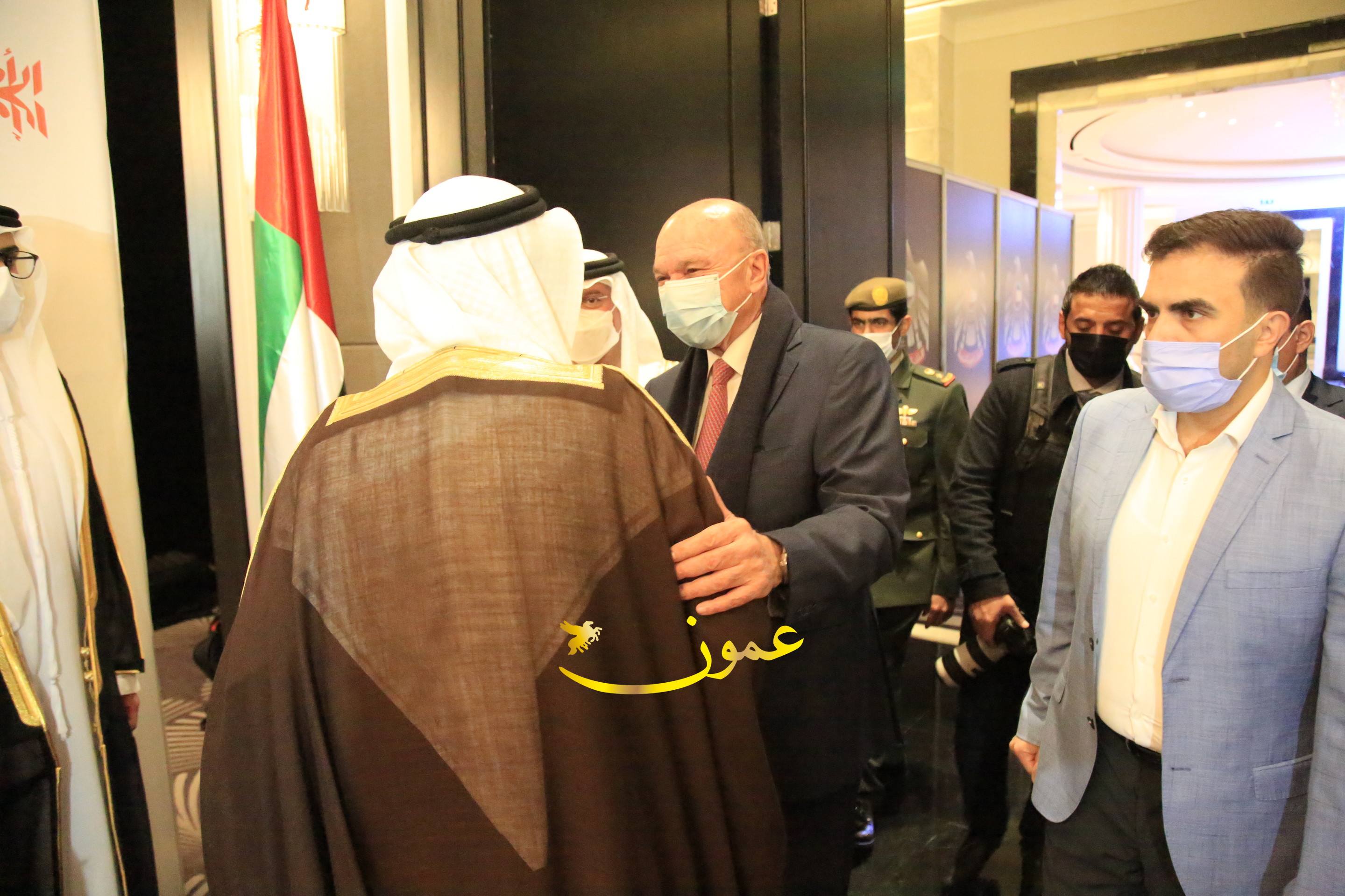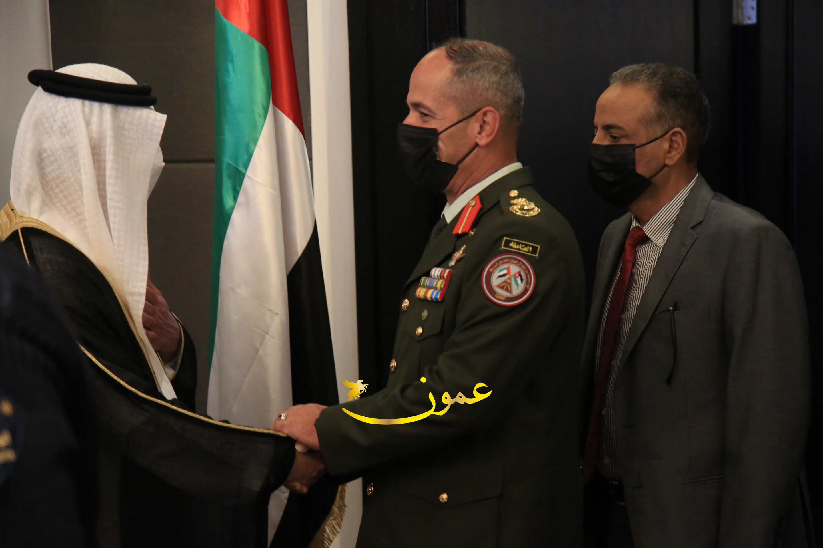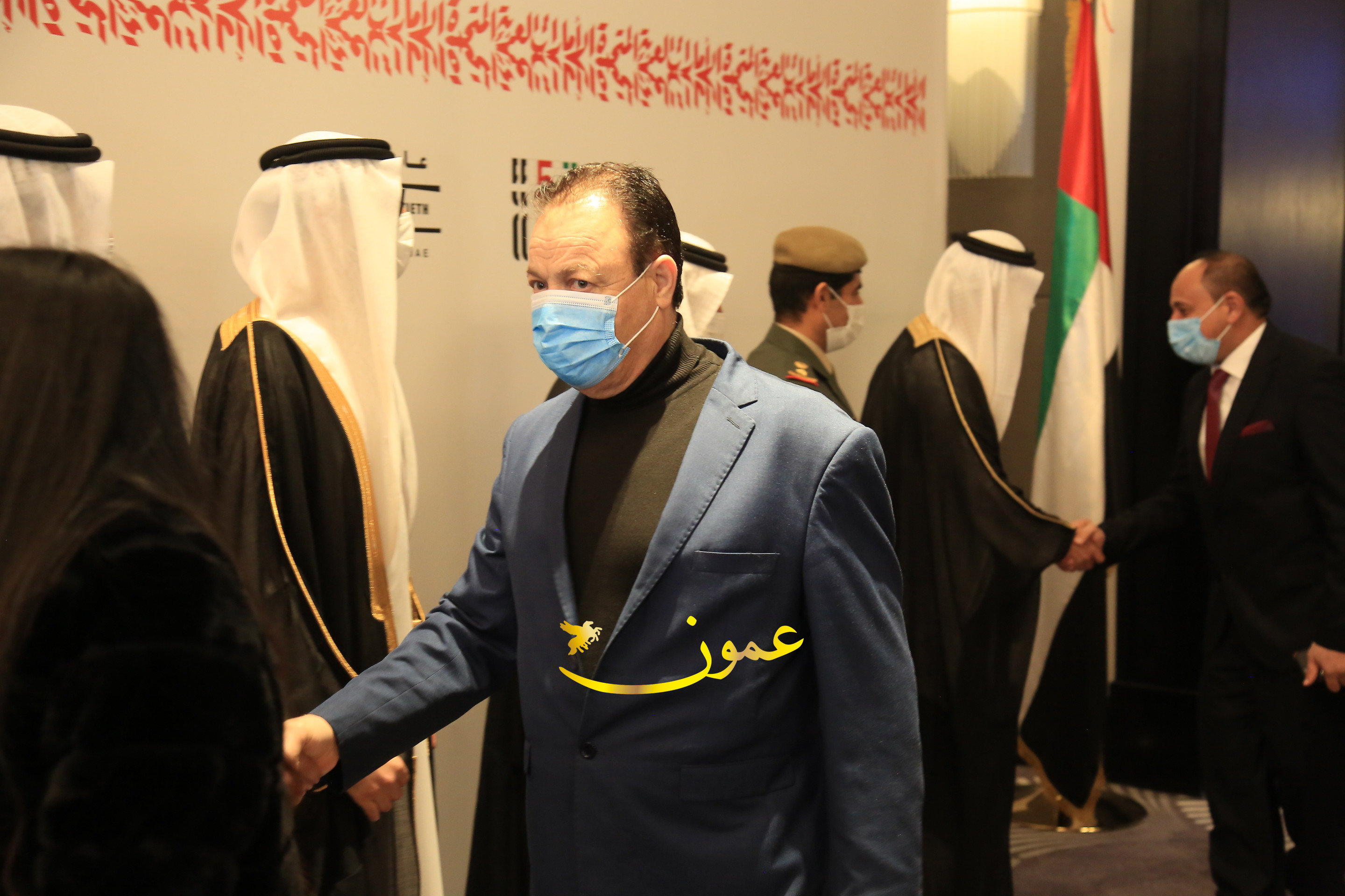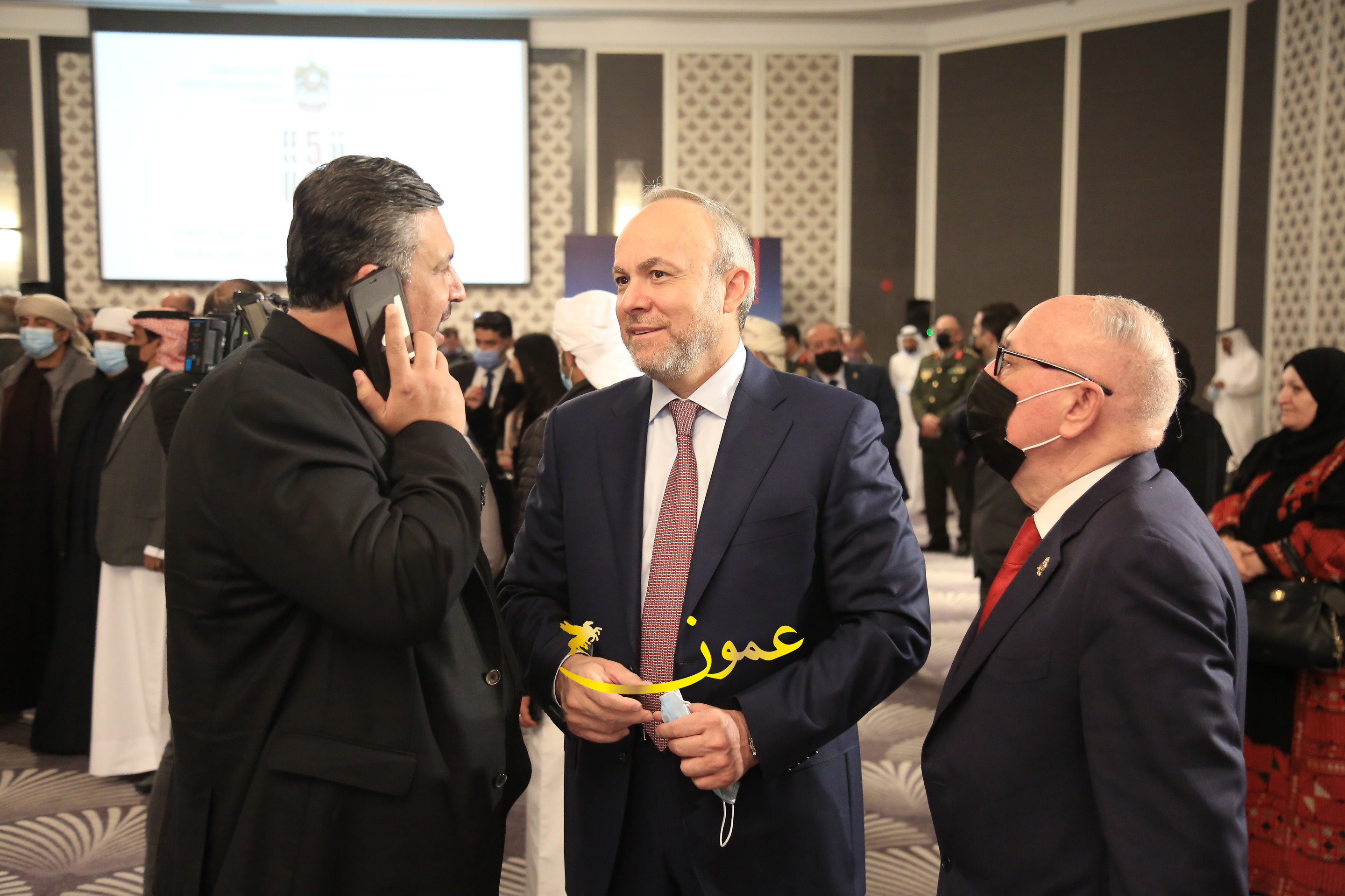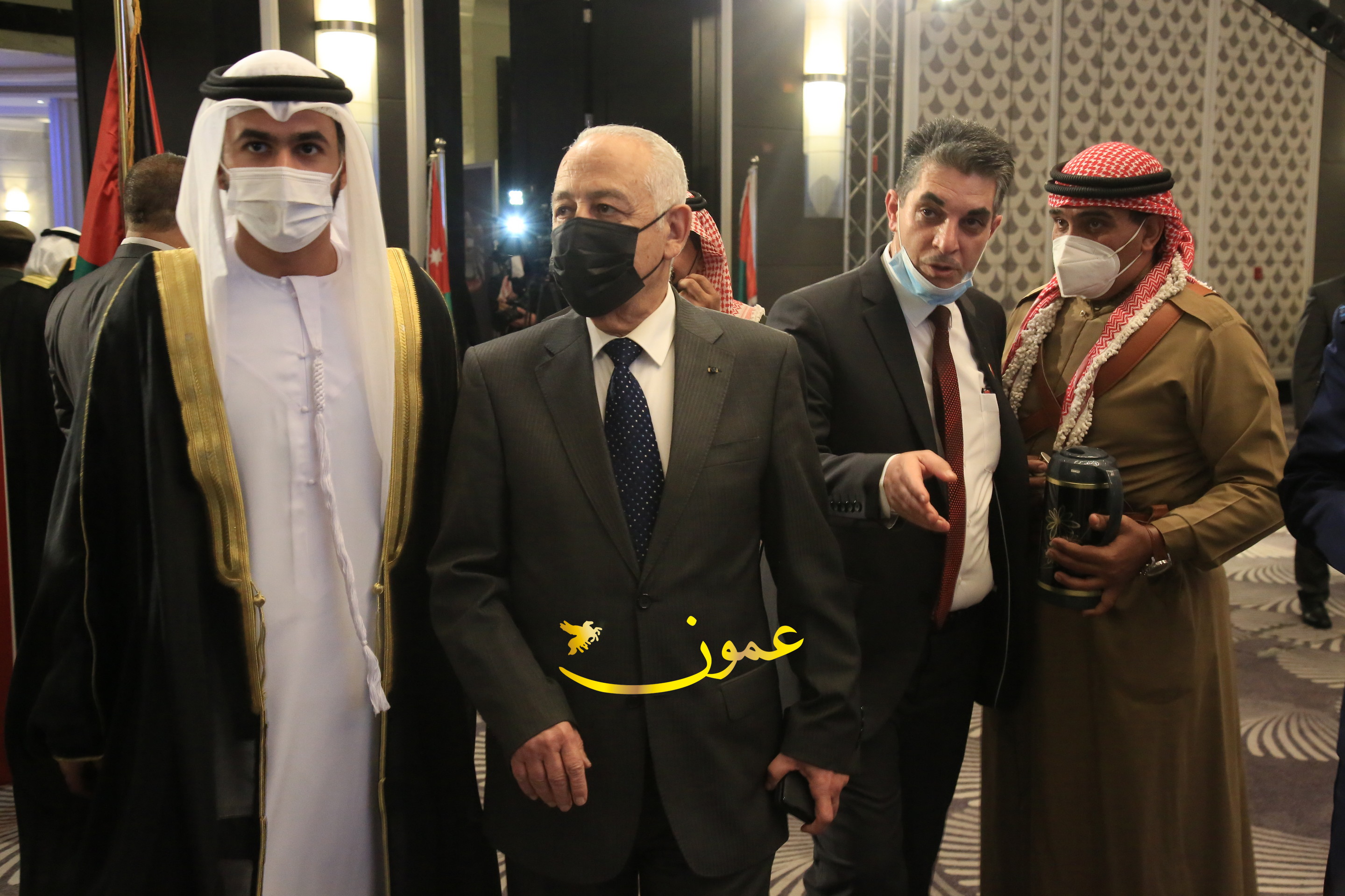عمون - بمناسبة عيد الاتحاد الخمسين لدولة الإمارات العربية المتحدة، استقبل سفير دولة الإمارات العربية المتحدة لدى المملكة الأردنية الهاشمية أحمد علي البلوشي مساء الأربعاء في الإحتفال الذي أقامته السفارة الإماراتية بالعاصمة الأردنية عمّان، كبار المسؤولين الأردنيين يتقدمهم رئيس مجلس الأعيان فيصل الفايز، ورئيس مجلس النواب عبدالكريم الدغمي، ورئيس الديوان الملكي يوسف العيسوي، وعدد من أصحاب المعالي والسعادة: الوزراء والأعيان والنواب وكبار رجال السلك الدبلوماسي والعسكري والقضائي ورؤساء البعثات الدبلوماسية العربية والأجنبية وشخصيات سياسية واقتصادية وثقافية وإعلامية ومسؤولي مؤسسات المجتمع المدني والمنظمات الدولية، إضافة إلى شيوخ العشائر من مختلف محافظات المملكة.