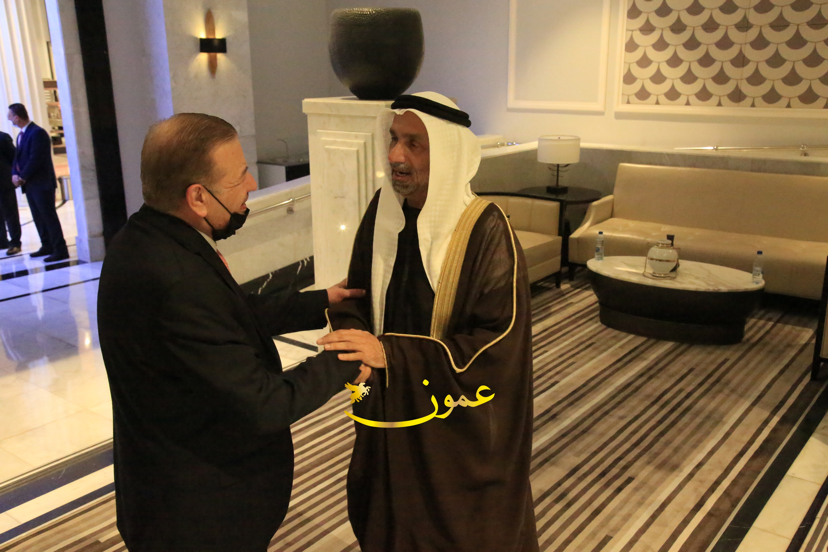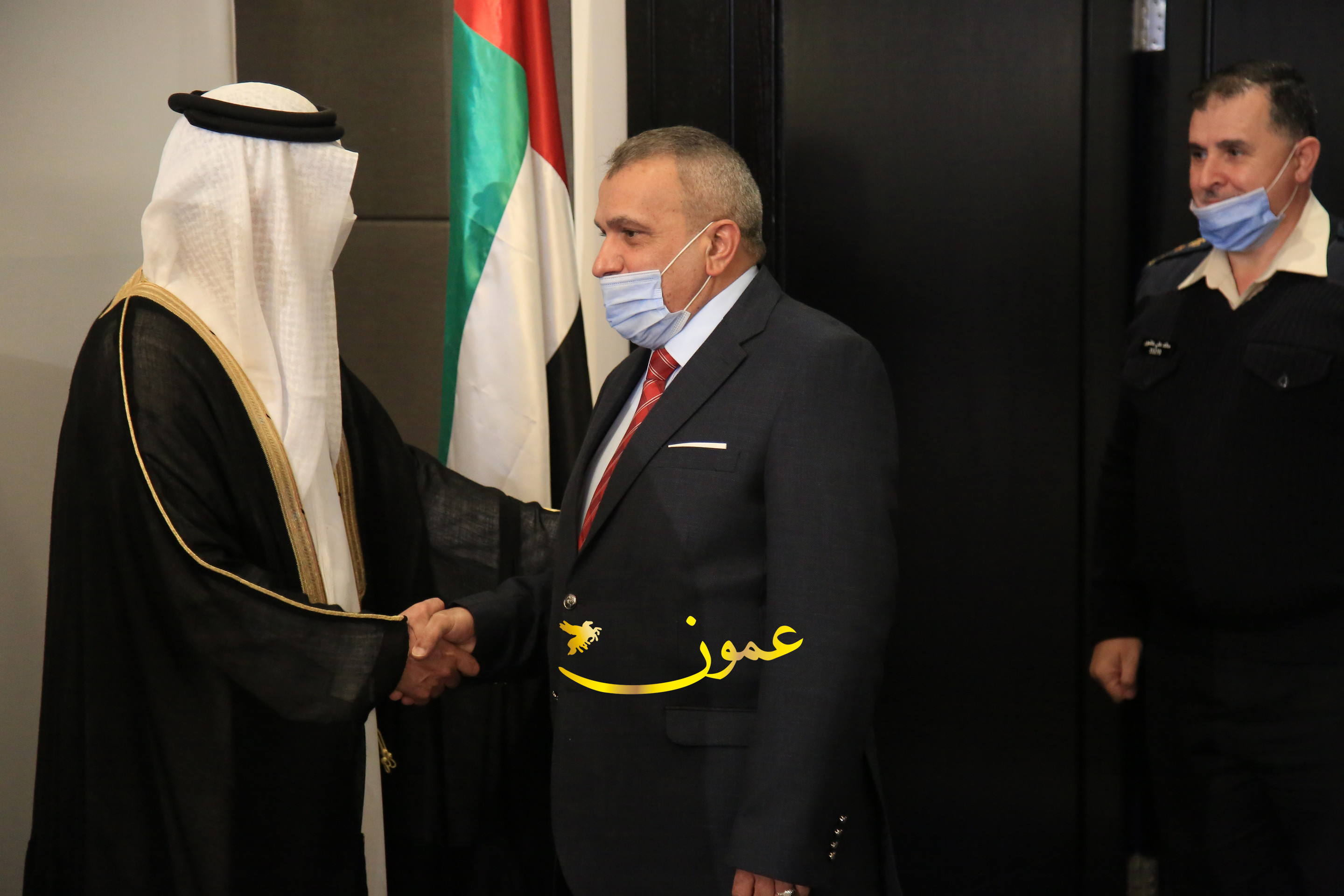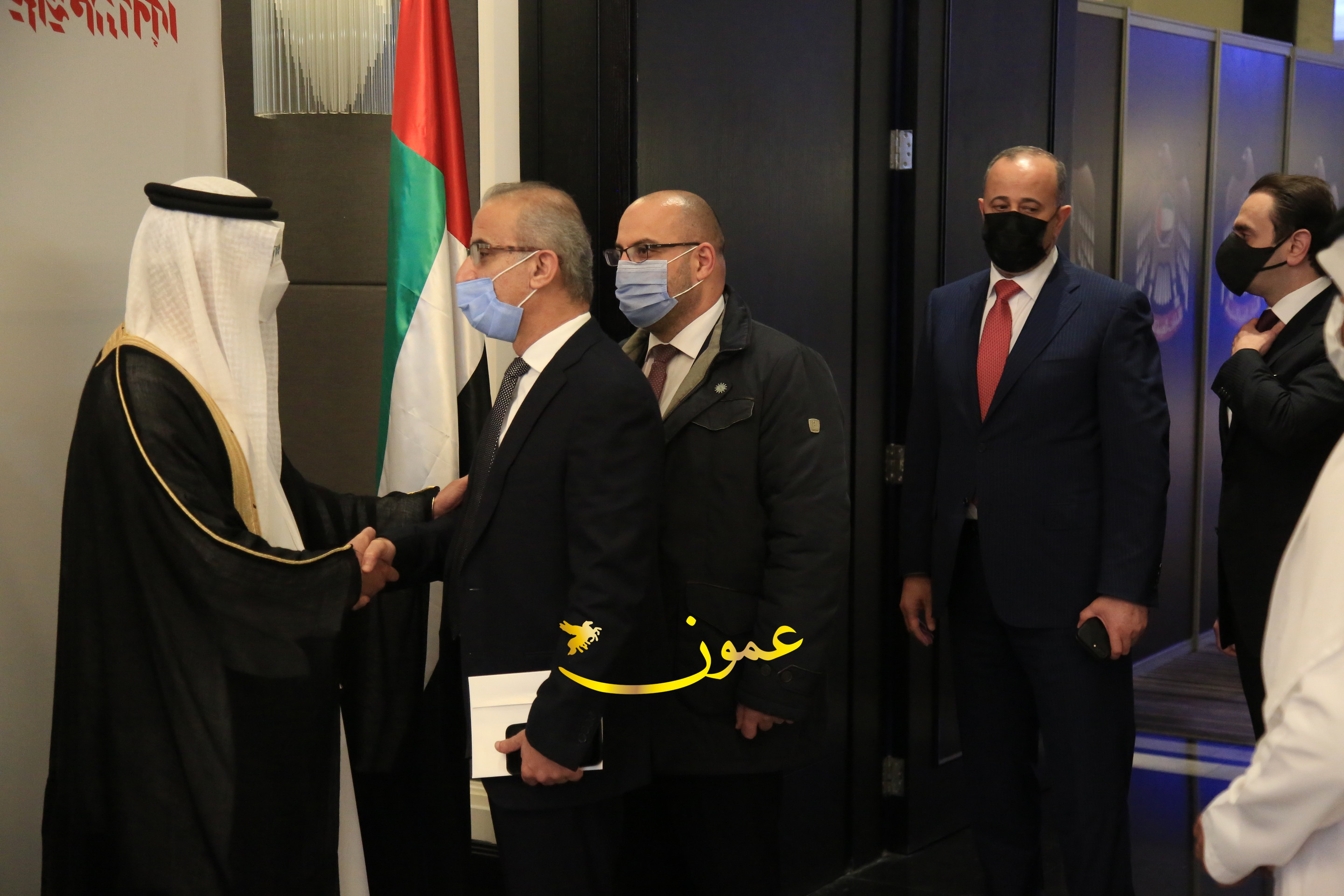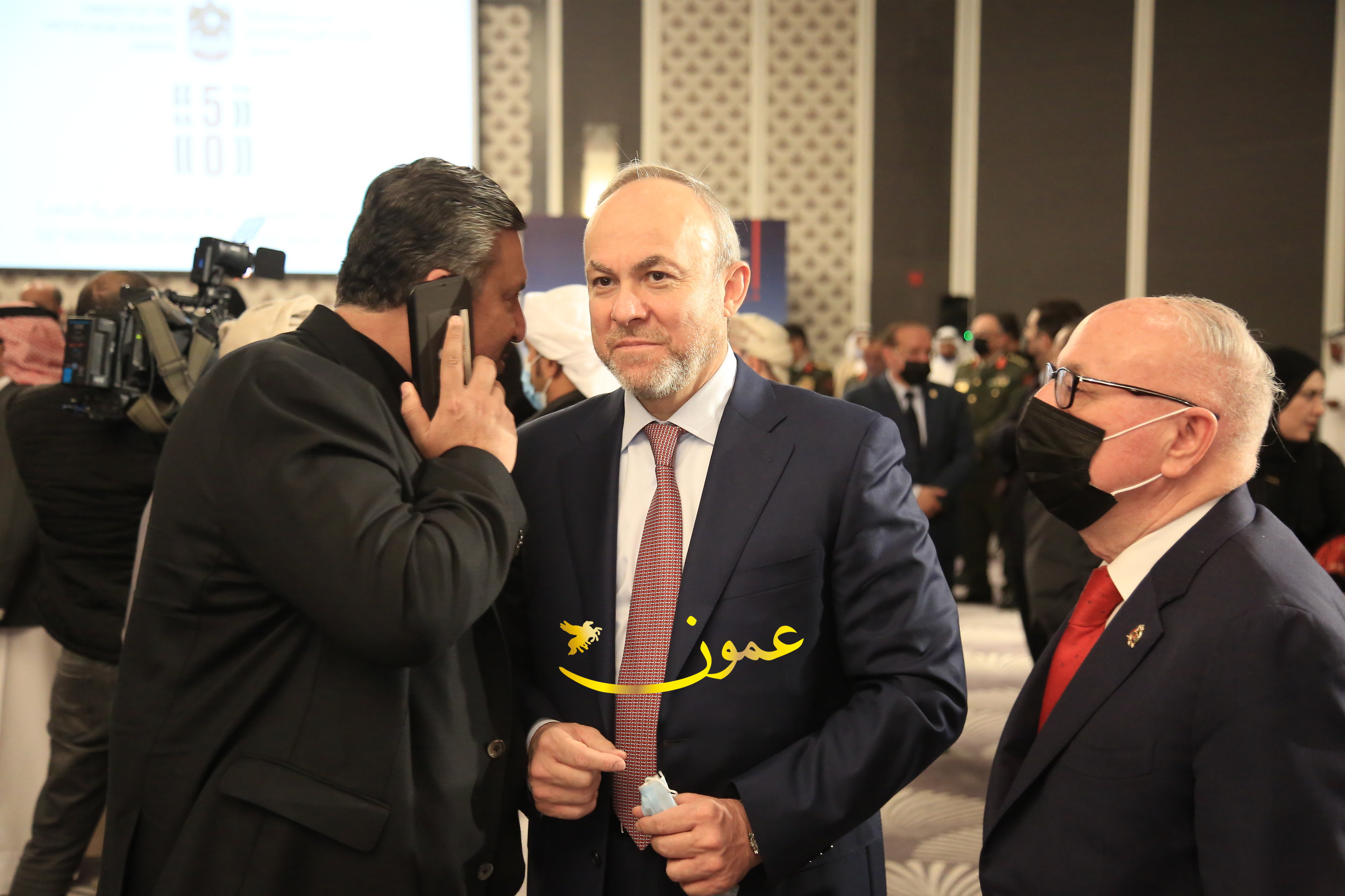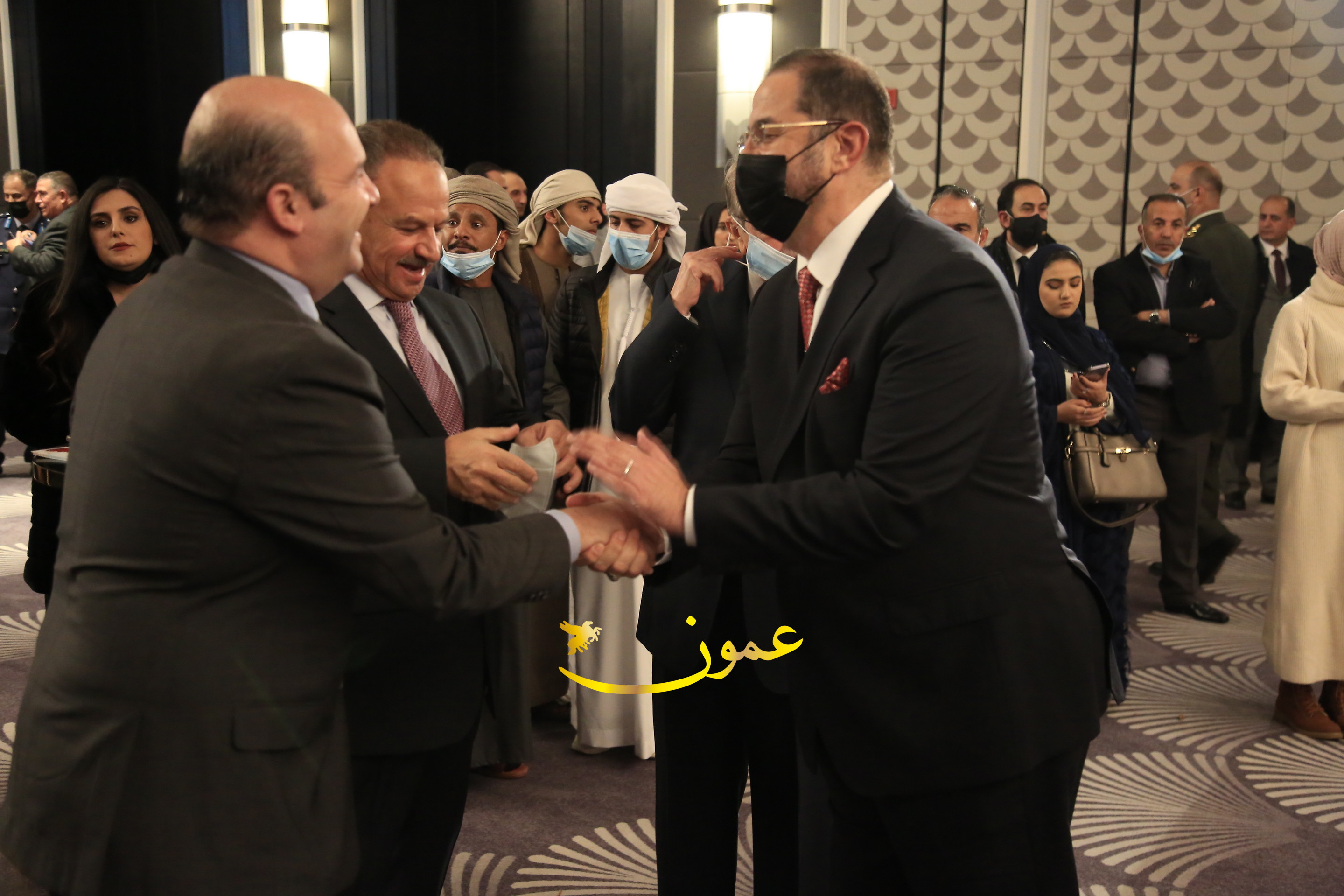 عمون - بمناسبة عيد الاتحاد الخمسين لدولة الإمارات العربية المتحدة، استقبل سفير دولة الإمارات العربية المتحدة لدى المملكة الأردنية الهاشمية أحمد علي البلوشي مساء الأربعاء في الإحتفال الذي أقامته السفارة الإماراتية بالعاصمة الأردنية عمّان، كبار المسؤولين الأردنيين يتقدمهم رئيس مجلس الأعيان فيصل الفايز، ورئيس مجلس النواب عبدالكريم الدغمي، ورئيس الديوان الملكي يوسف العيسوي، وعدد من أصحاب المعالي والسعادة: الوزراء والأعيان والنواب وكبار رجال السلك الدبلوماسي والعسكري والقضائي ورؤساء البعثات الدبلوماسية العربية والأجنبية وشخصيات سياسية واقتصادية وثقافية وإعلامية ومسؤولي مؤسسات المجتمع المدني والمنظمات الدولية، إضافة إلى شيوخ العشائر من مختلف محافظات المملكة.