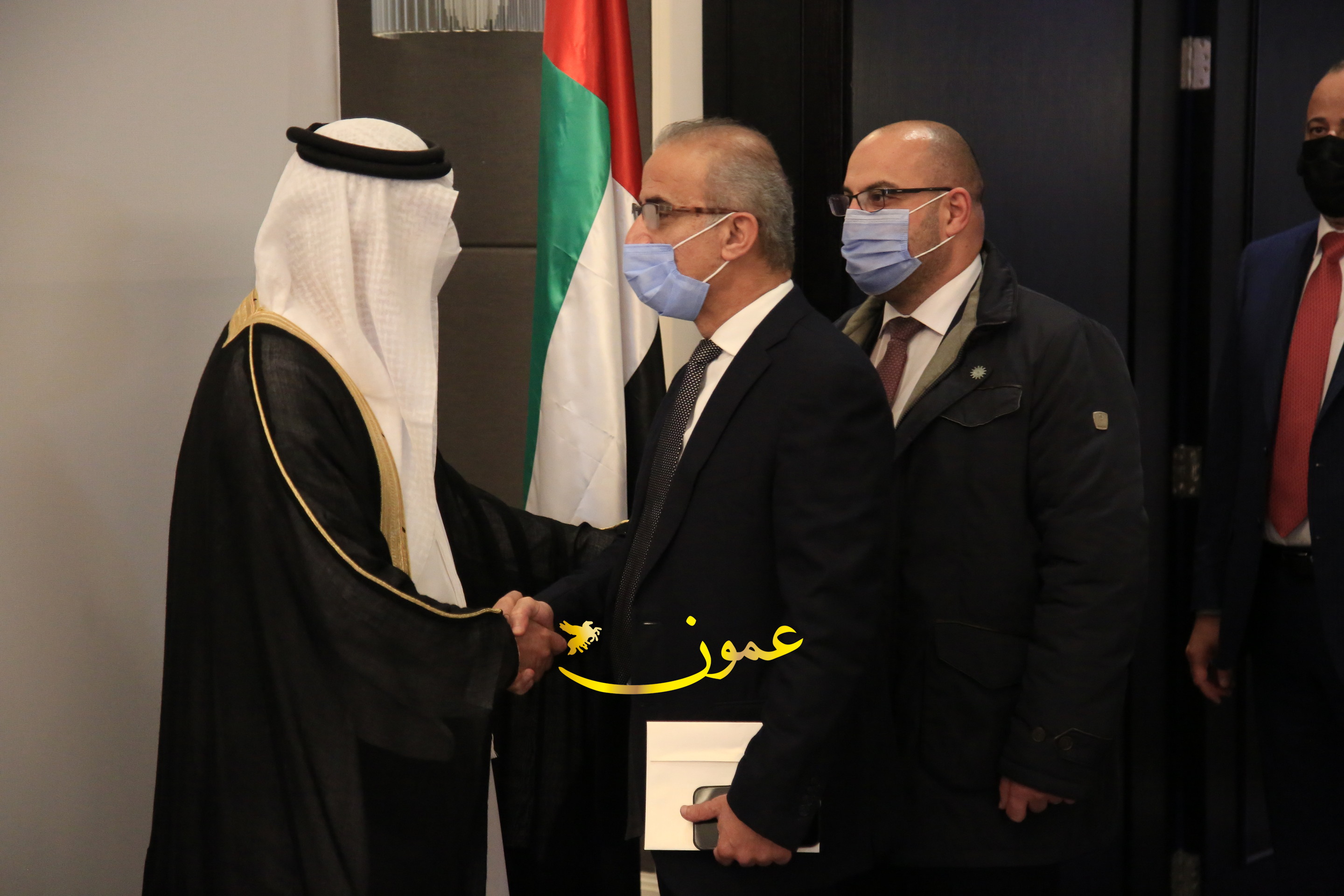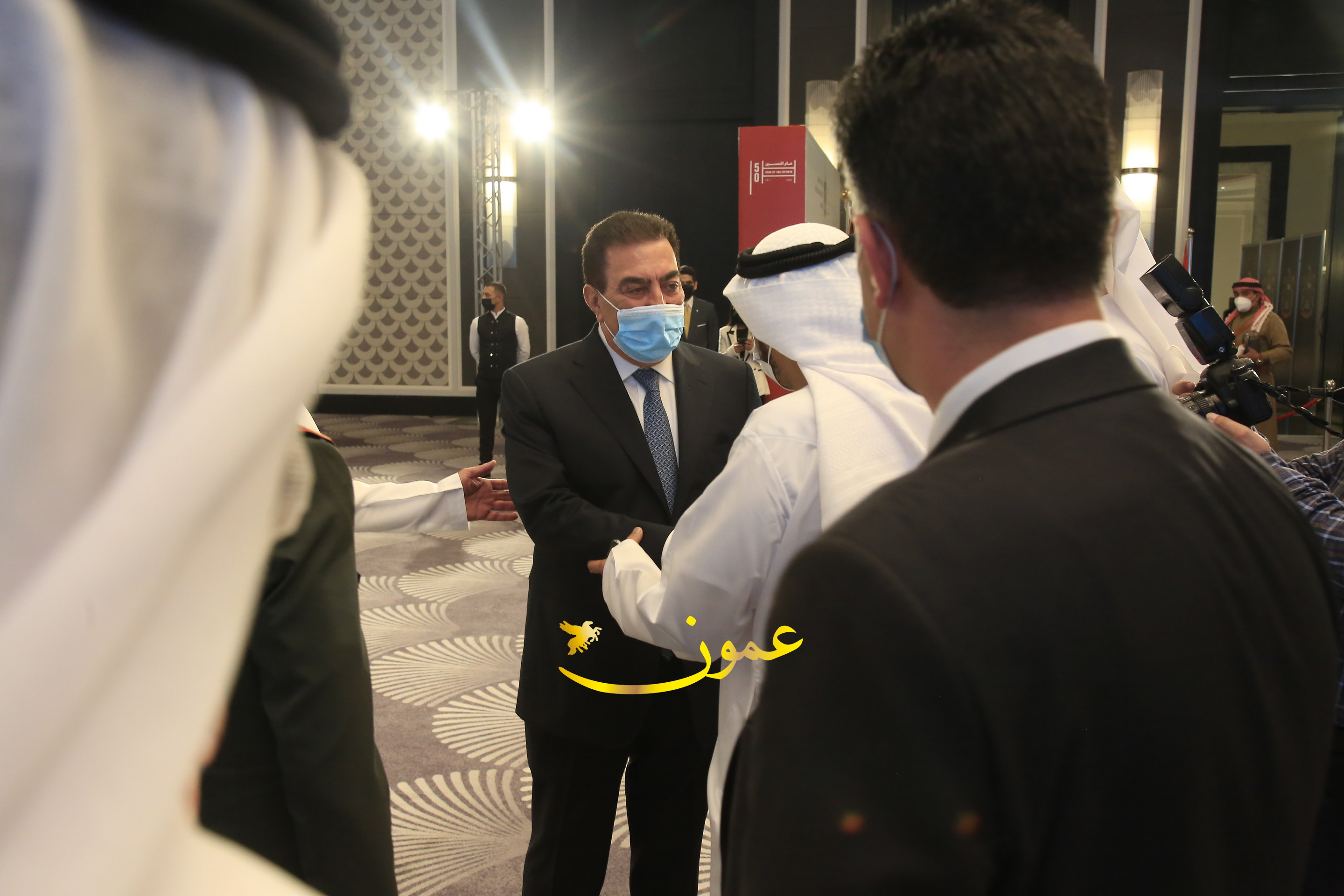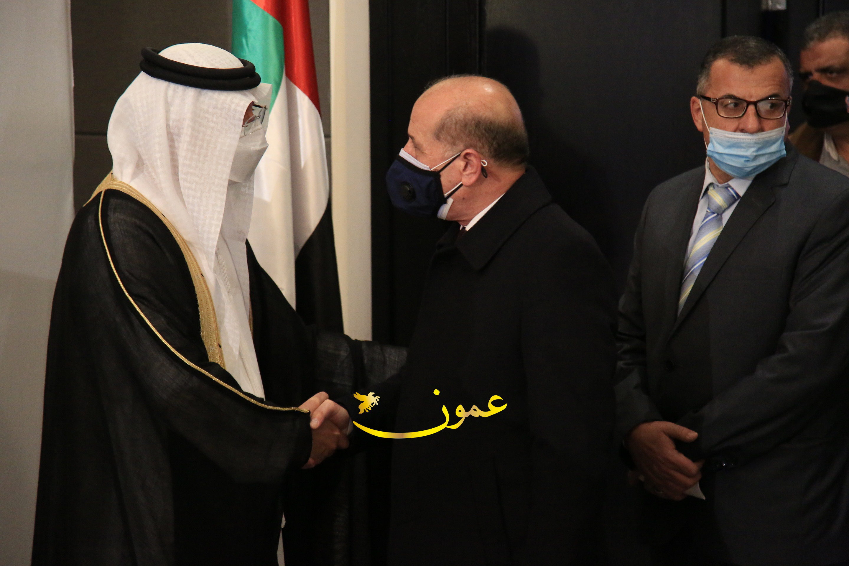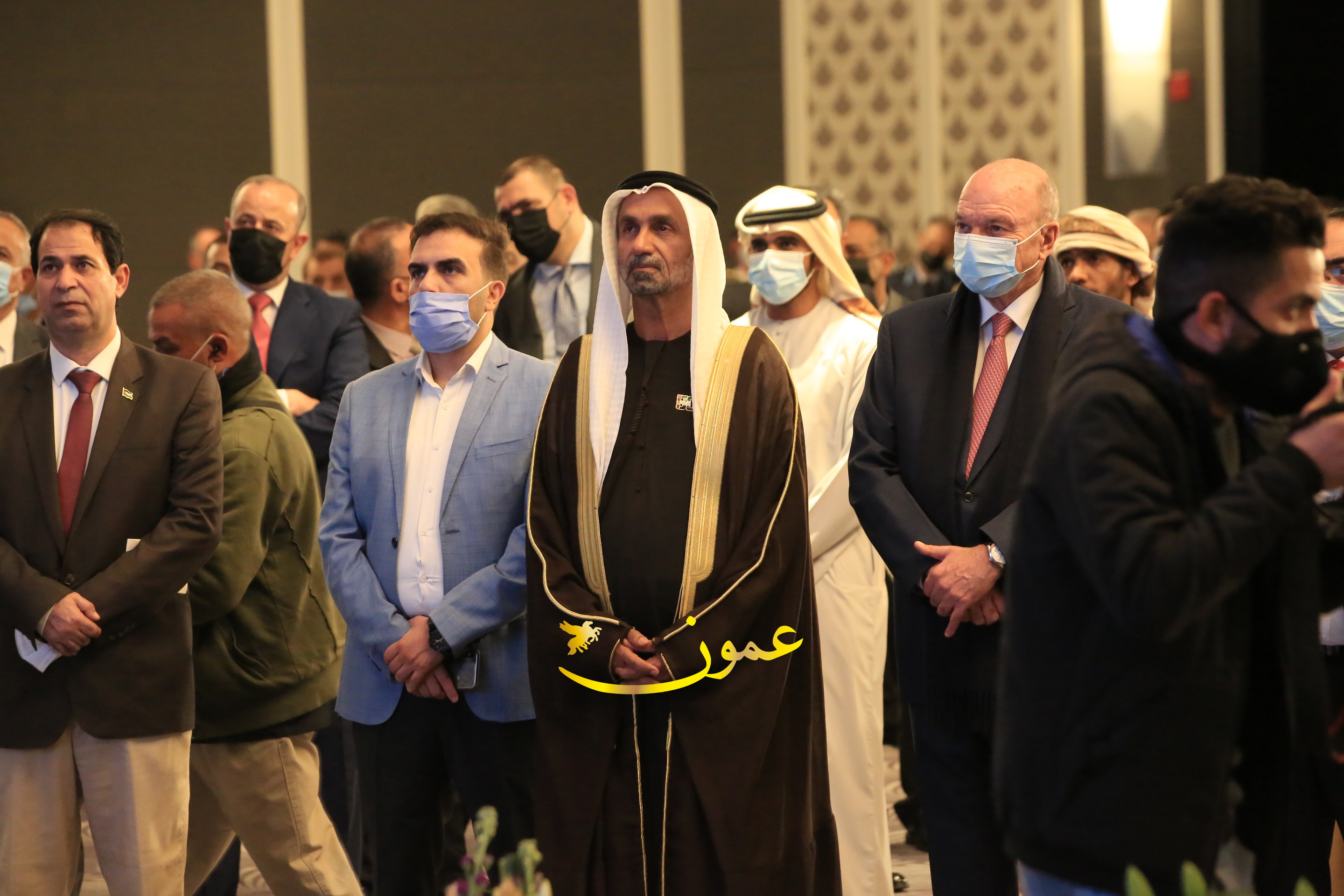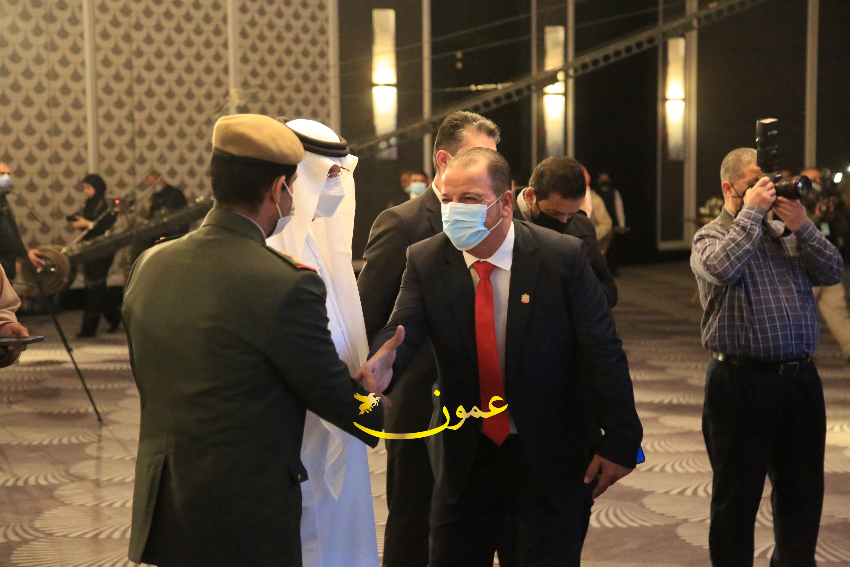 عمون - بمناسبة عيد الاتحاد الخمسين لدولة الإمارات العربية المتحدة، استقبل سفير دولة الإمارات العربية المتحدة لدى المملكة الأردنية الهاشمية أحمد علي البلوشي مساء الأربعاء في الإحتفال الذي أقامته السفارة الإماراتية بالعاصمة الأردنية عمّان، كبار المسؤولين الأردنيين يتقدمهم رئيس مجلس الأعيان فيصل الفايز، ورئيس مجلس النواب عبدالكريم الدغمي، ورئيس الديوان الملكي يوسف العيسوي، وعدد من أصحاب المعالي والسعادة: الوزراء والأعيان والنواب وكبار رجال السلك الدبلوماسي والعسكري والقضائي ورؤساء البعثات الدبلوماسية العربية والأجنبية وشخصيات سياسية واقتصادية وثقافية وإعلامية ومسؤولي مؤسسات المجتمع المدني والمنظمات الدولية، إضافة إلى شيوخ العشائر من مختلف محافظات المملكة.
