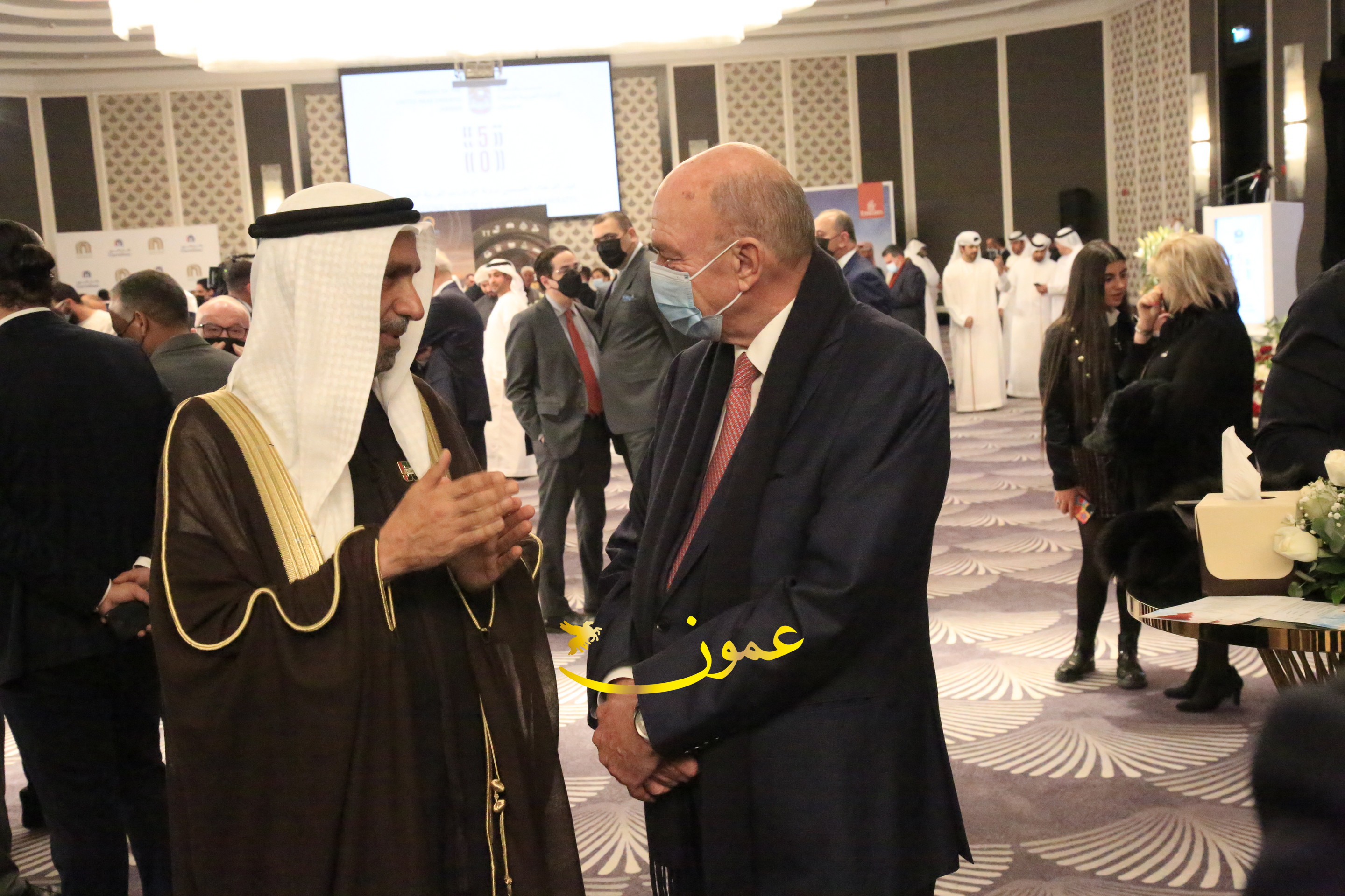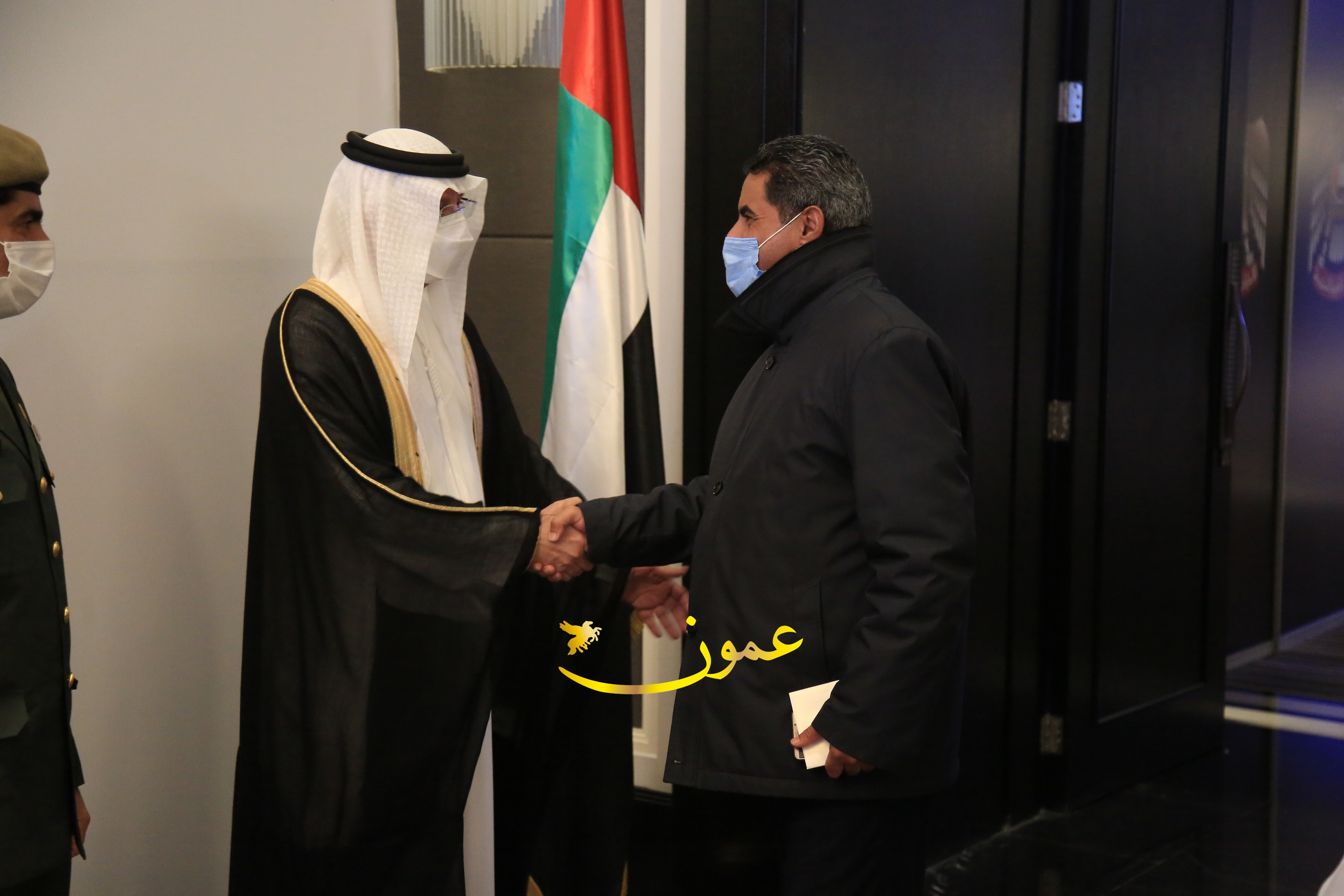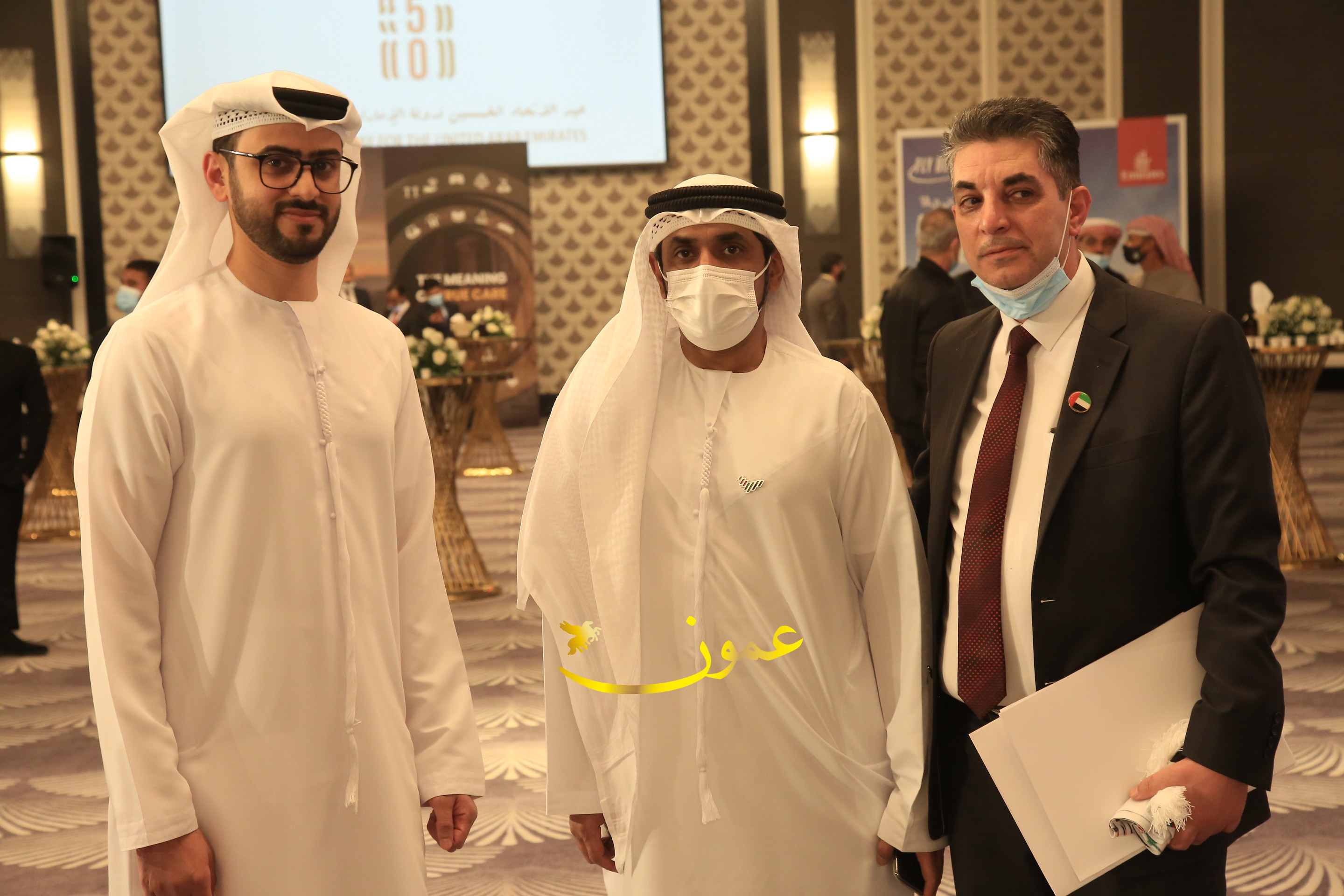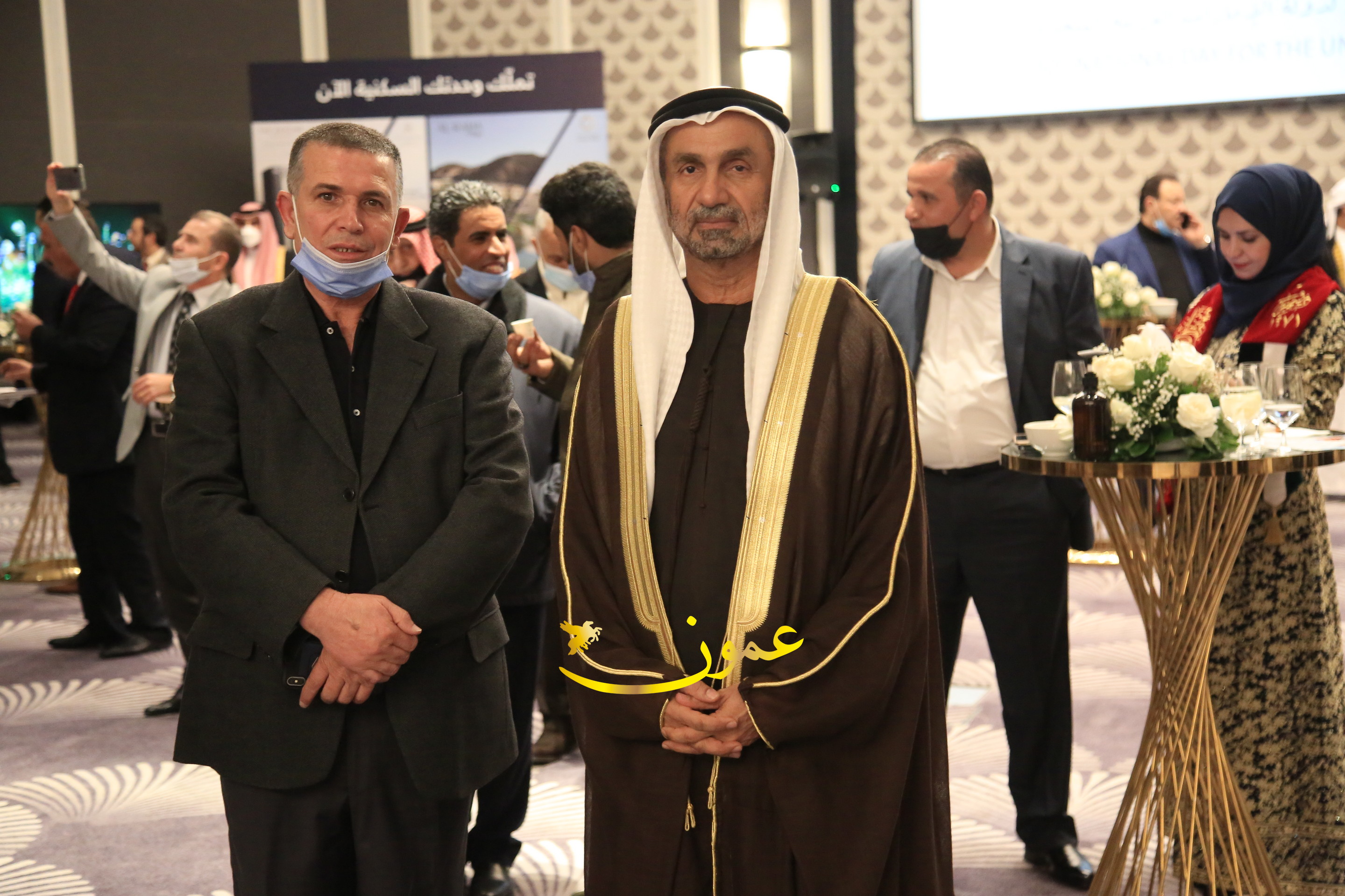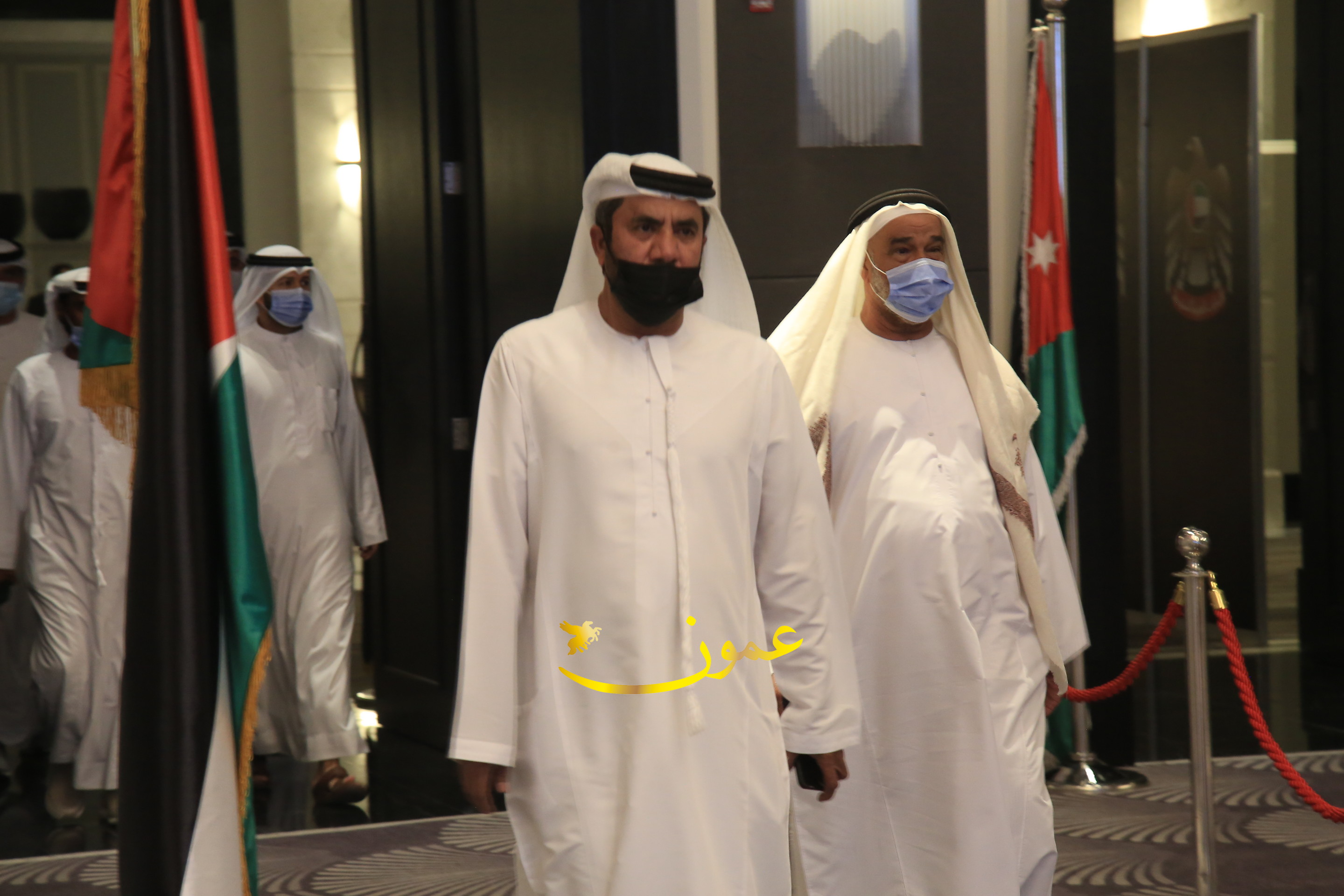 عمون - بمناسبة عيد الاتحاد الخمسين لدولة الإمارات العربية المتحدة، استقبل سفير دولة الإمارات العربية المتحدة لدى المملكة الأردنية الهاشمية أحمد علي البلوشي مساء الأربعاء في الإحتفال الذي أقامته السفارة الإماراتية بالعاصمة الأردنية عمّان، كبار المسؤولين الأردنيين يتقدمهم رئيس مجلس الأعيان فيصل الفايز، ورئيس مجلس النواب عبدالكريم الدغمي، ورئيس الديوان الملكي يوسف العيسوي، وعدد من أصحاب المعالي والسعادة: الوزراء والأعيان والنواب وكبار رجال السلك الدبلوماسي والعسكري والقضائي ورؤساء البعثات الدبلوماسية العربية والأجنبية وشخصيات سياسية واقتصادية وثقافية وإعلامية ومسؤولي مؤسسات المجتمع المدني والمنظمات الدولية، إضافة إلى شيوخ العشائر من مختلف محافظات المملكة.