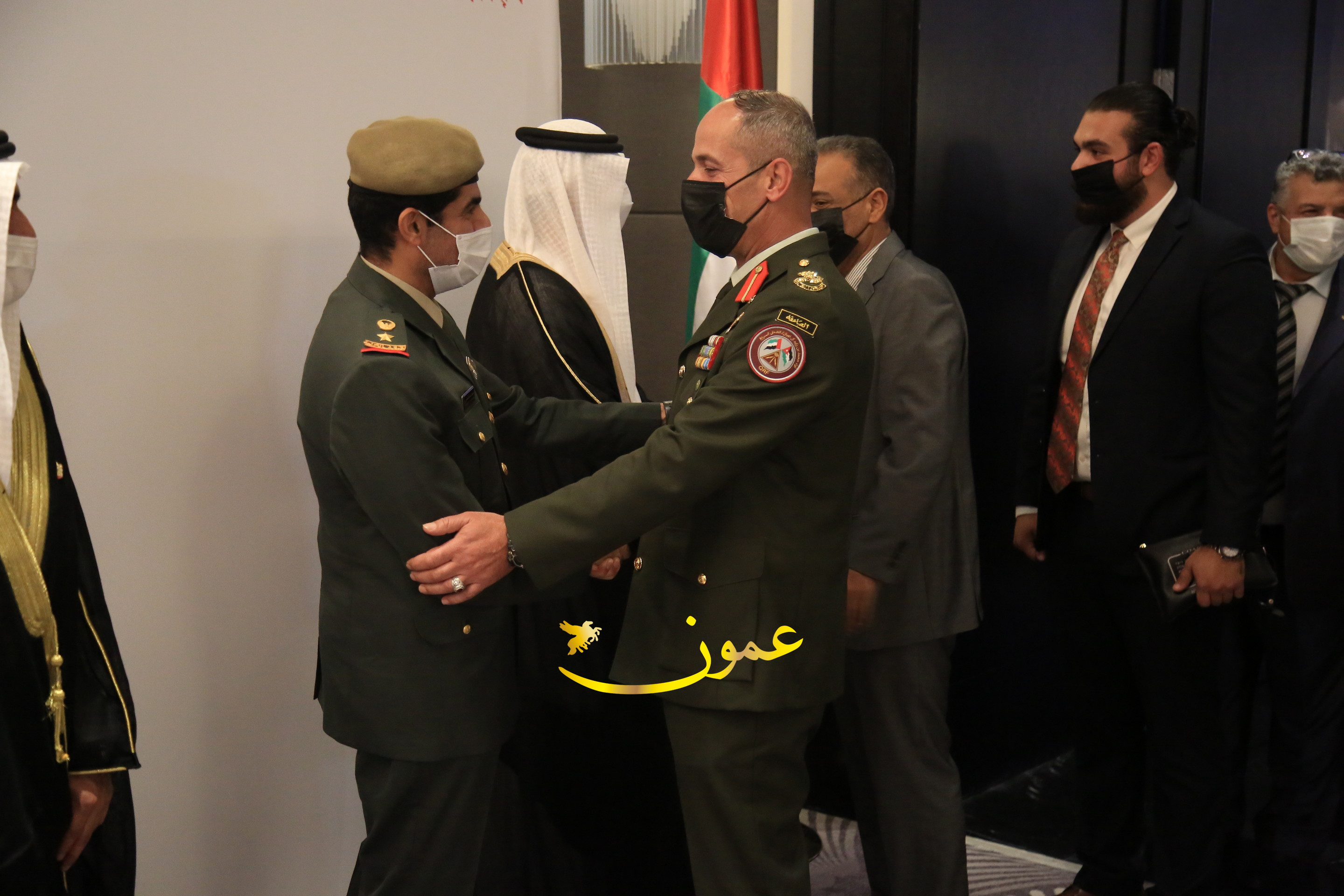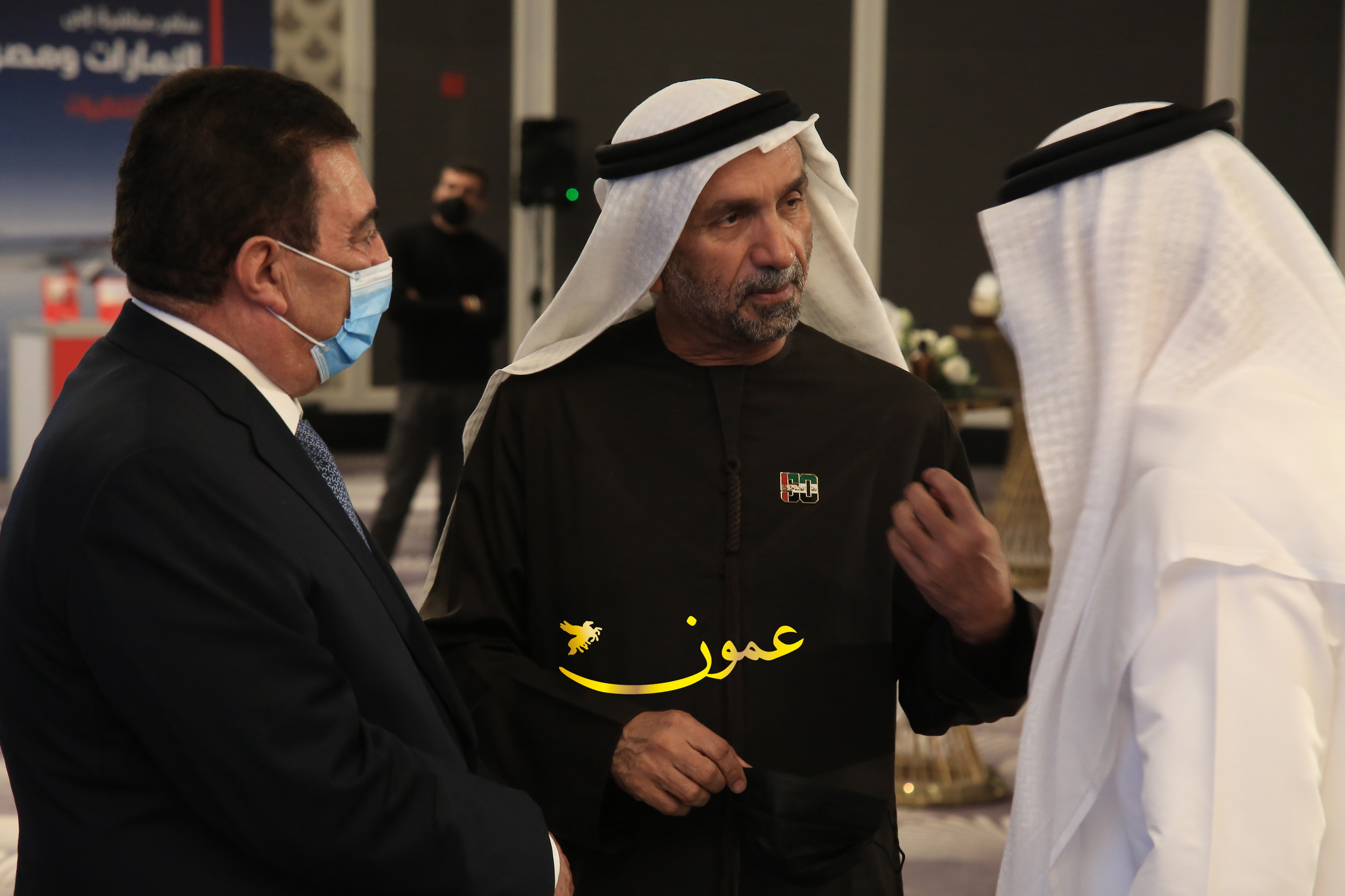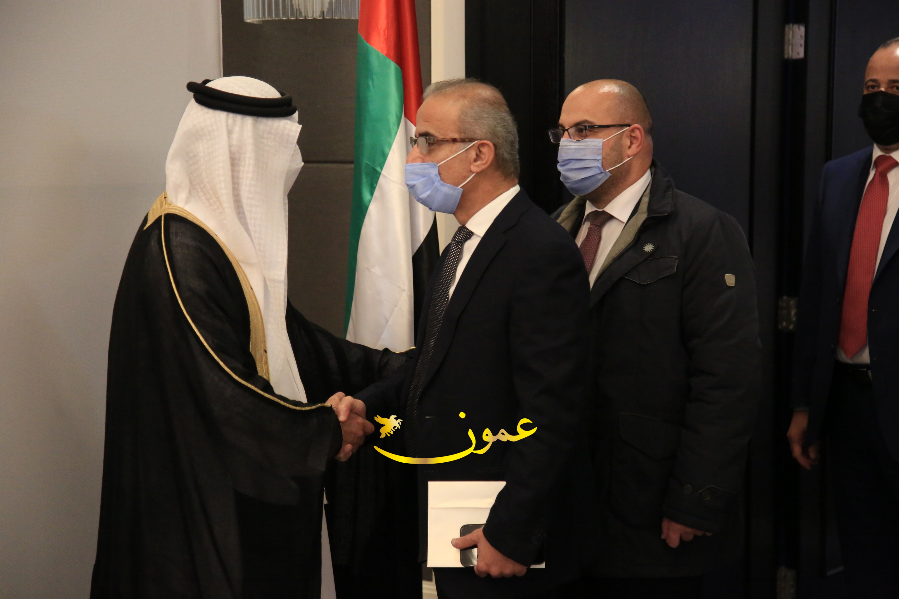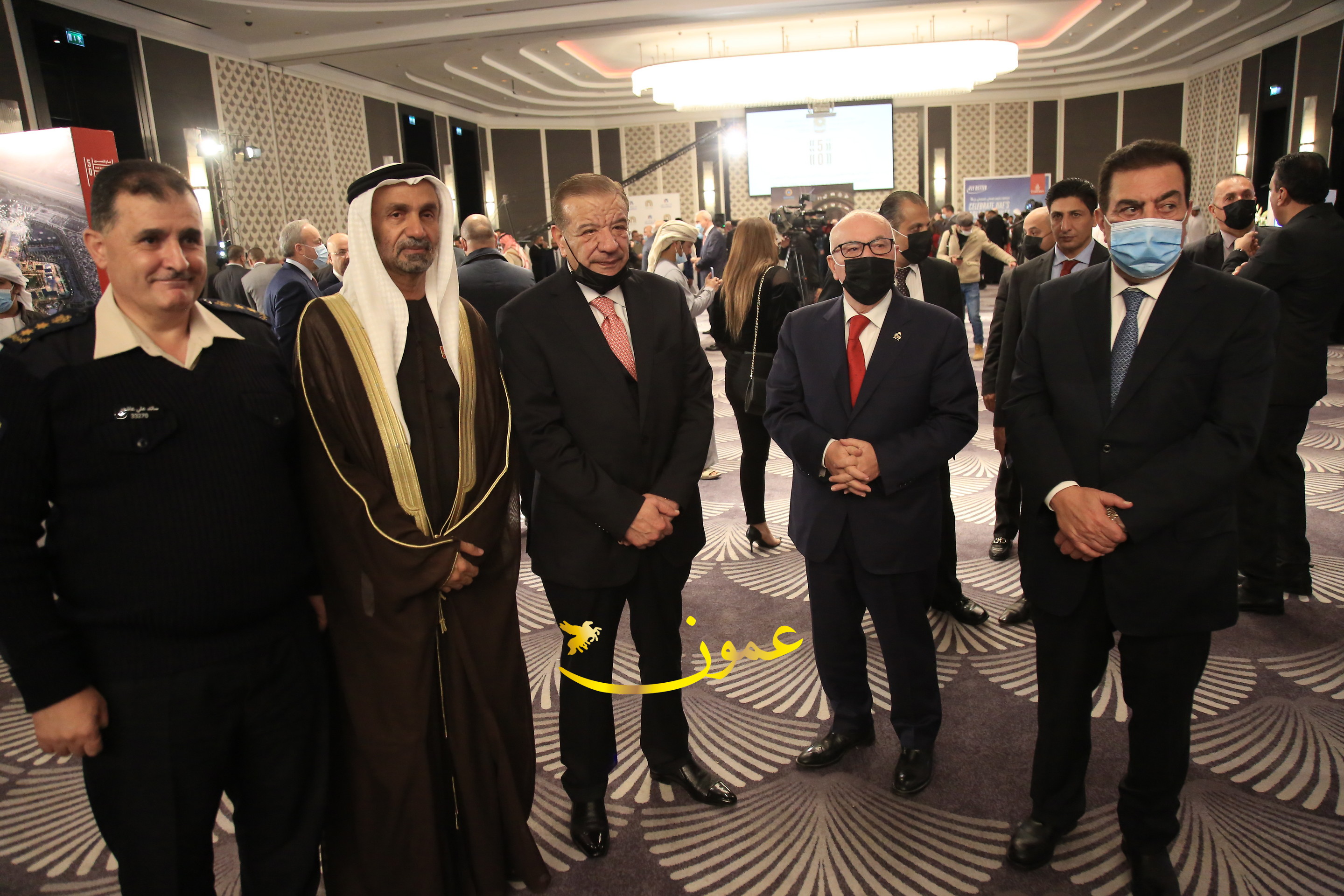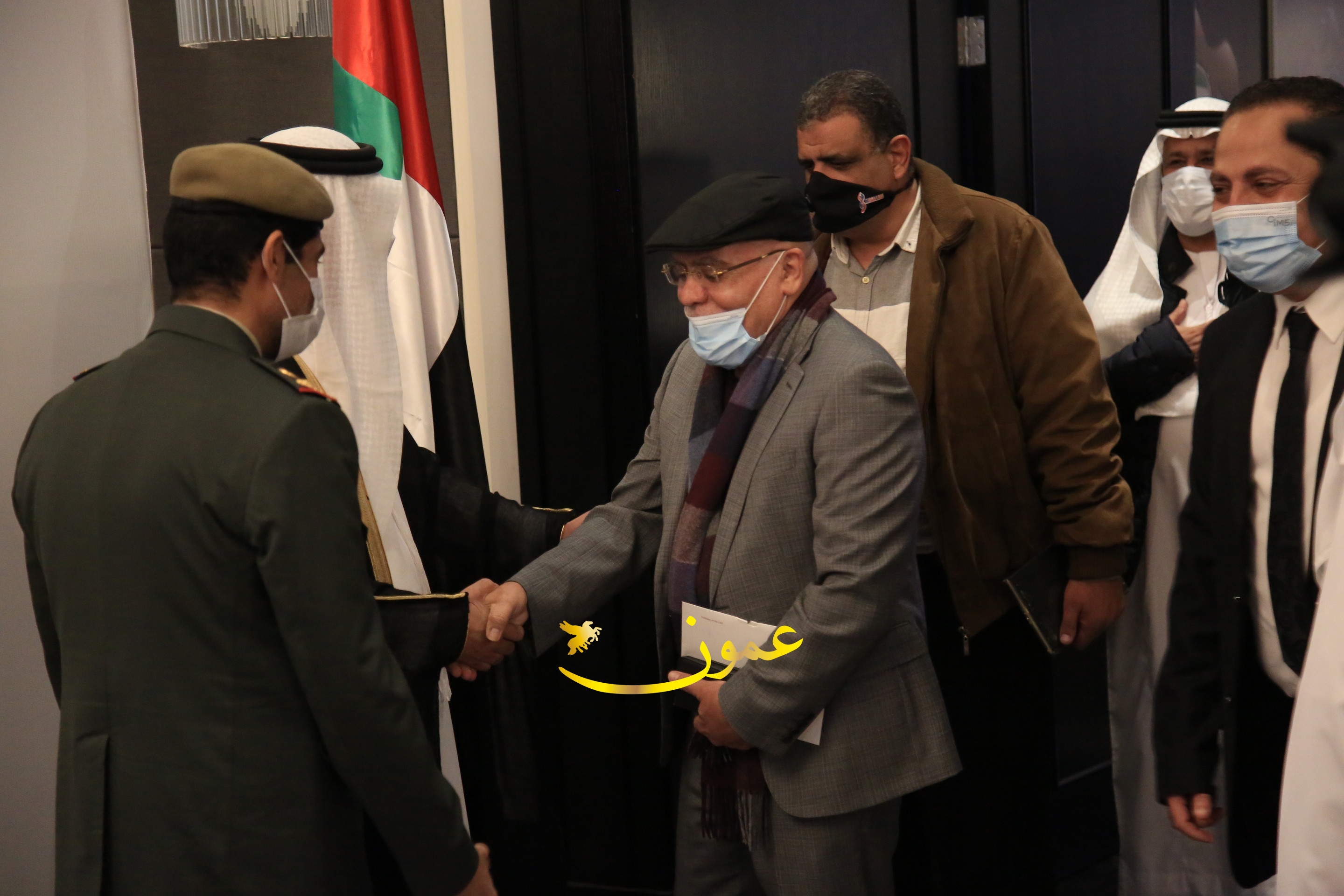 عمون - بمناسبة عيد الاتحاد الخمسين لدولة الإمارات العربية المتحدة، استقبل سفير دولة الإمارات العربية المتحدة لدى المملكة الأردنية الهاشمية أحمد علي البلوشي مساء الأربعاء في الإحتفال الذي أقامته السفارة الإماراتية بالعاصمة الأردنية عمّان، كبار المسؤولين الأردنيين يتقدمهم رئيس مجلس الأعيان فيصل الفايز، ورئيس مجلس النواب عبدالكريم الدغمي، ورئيس الديوان الملكي يوسف العيسوي، وعدد من أصحاب المعالي والسعادة: الوزراء والأعيان والنواب وكبار رجال السلك الدبلوماسي والعسكري والقضائي ورؤساء البعثات الدبلوماسية العربية والأجنبية وشخصيات سياسية واقتصادية وثقافية وإعلامية ومسؤولي مؤسسات المجتمع المدني والمنظمات الدولية، إضافة إلى شيوخ العشائر من مختلف محافظات المملكة.