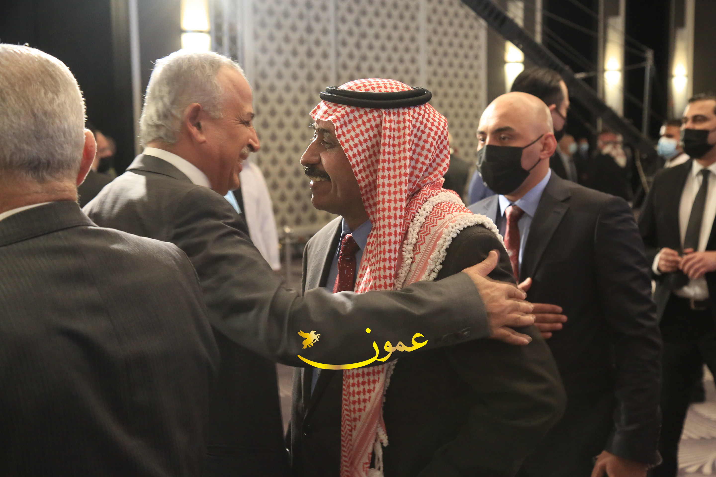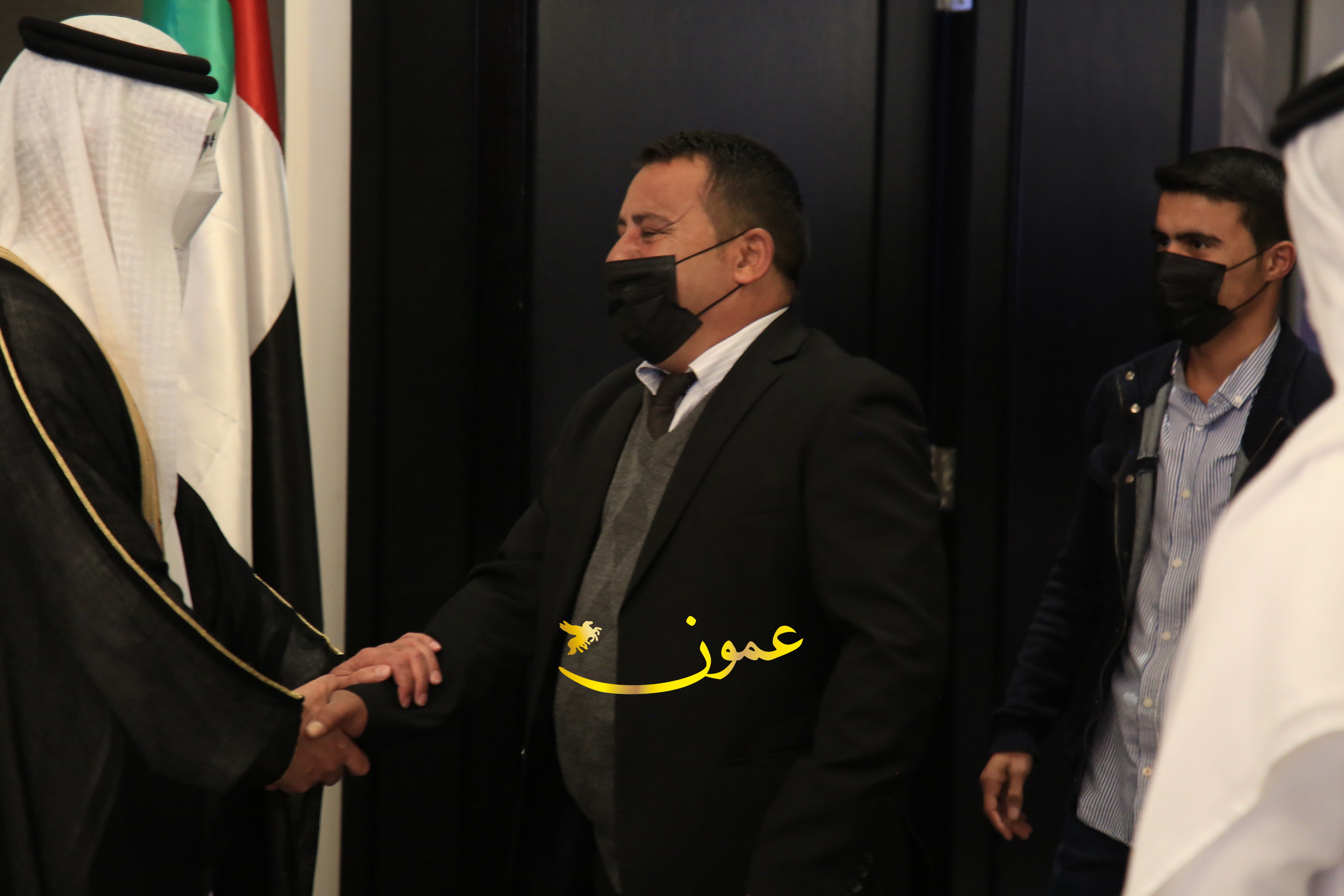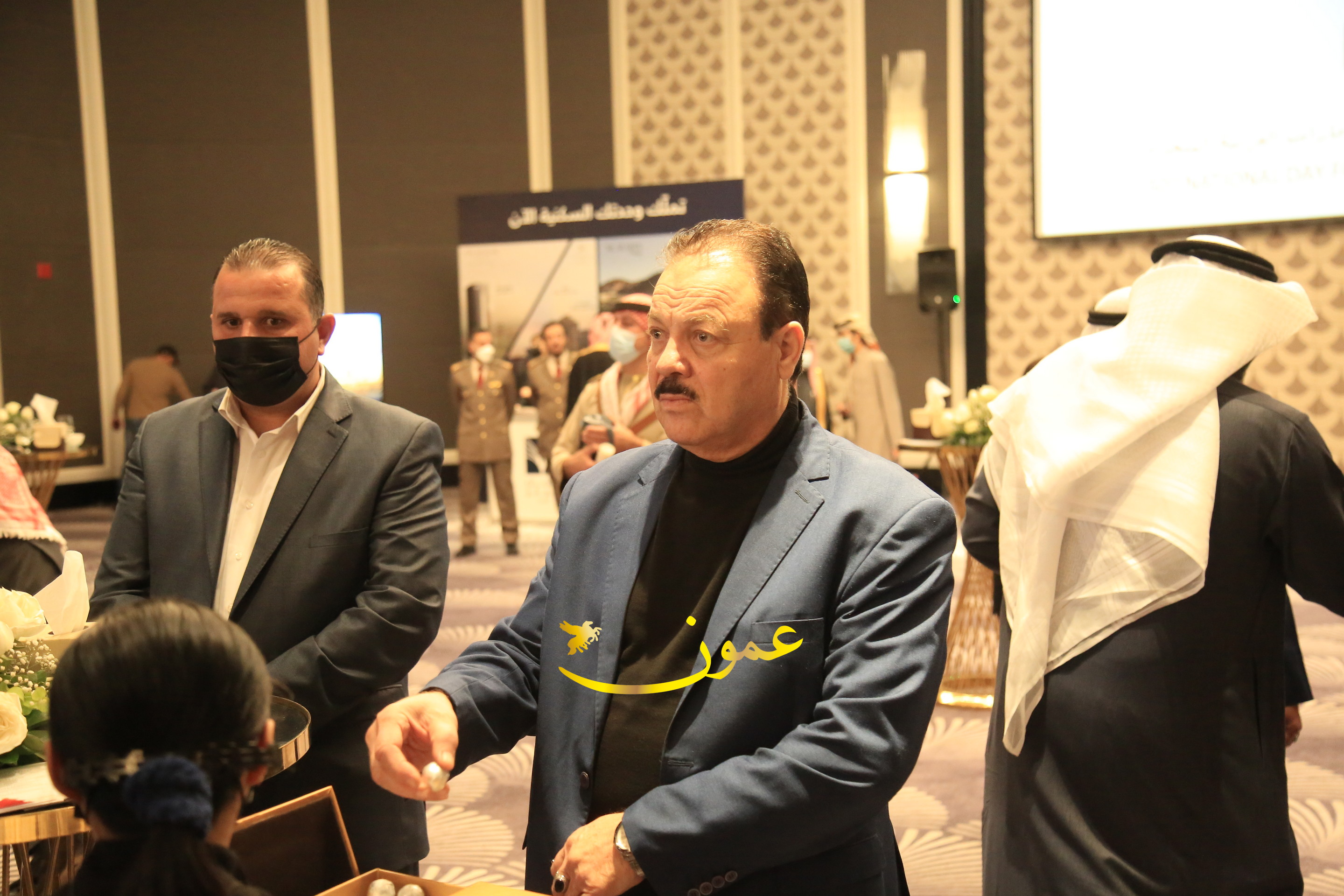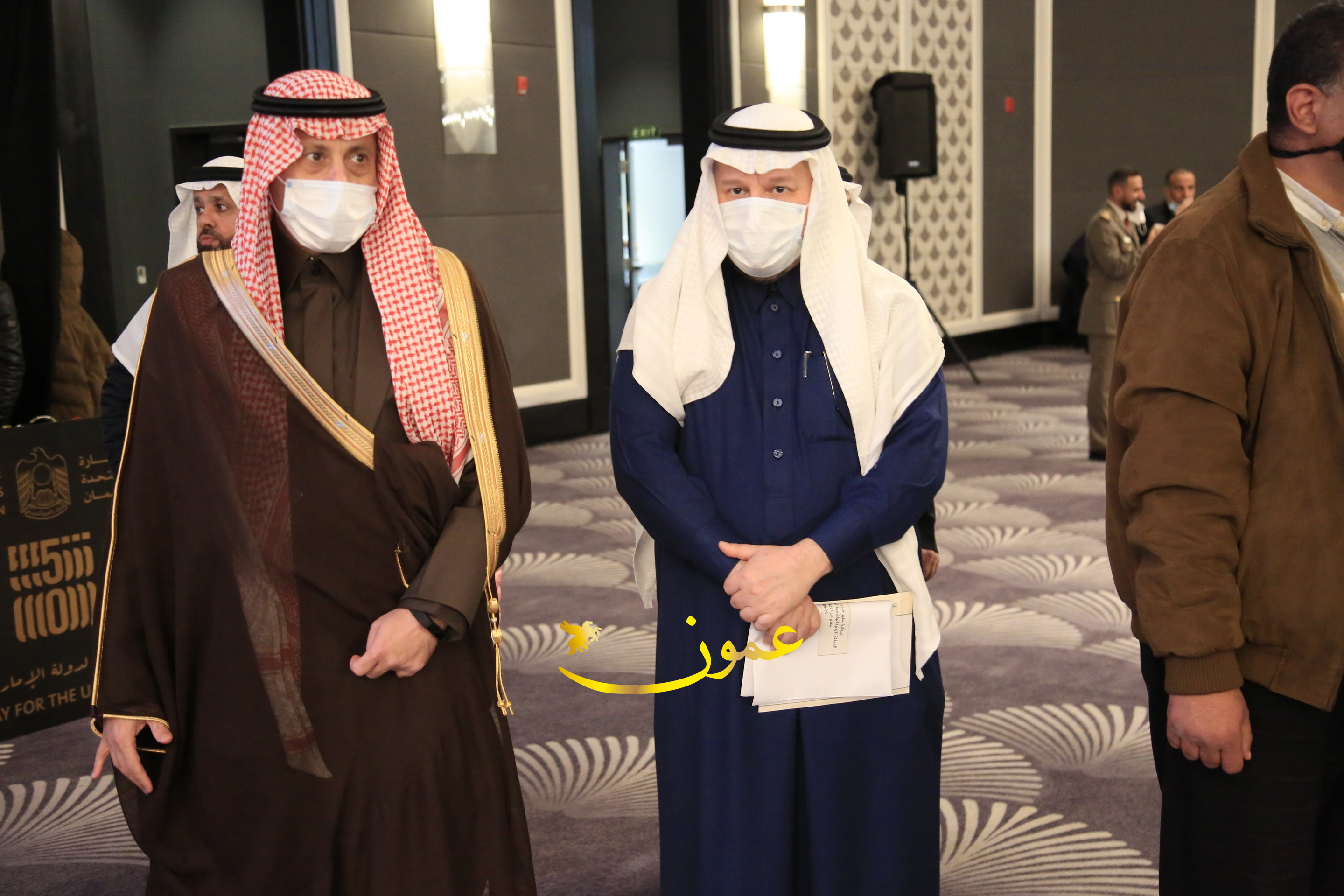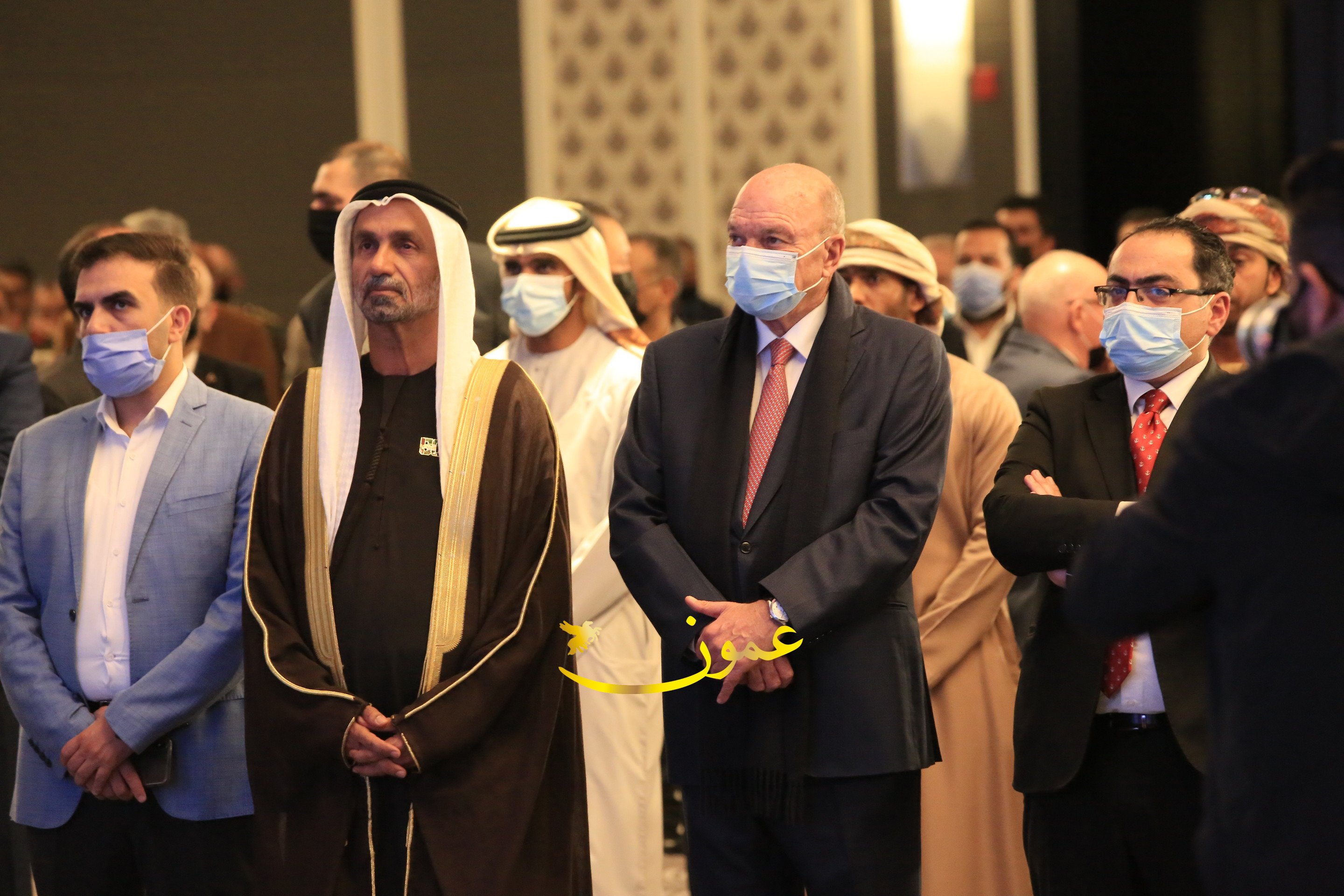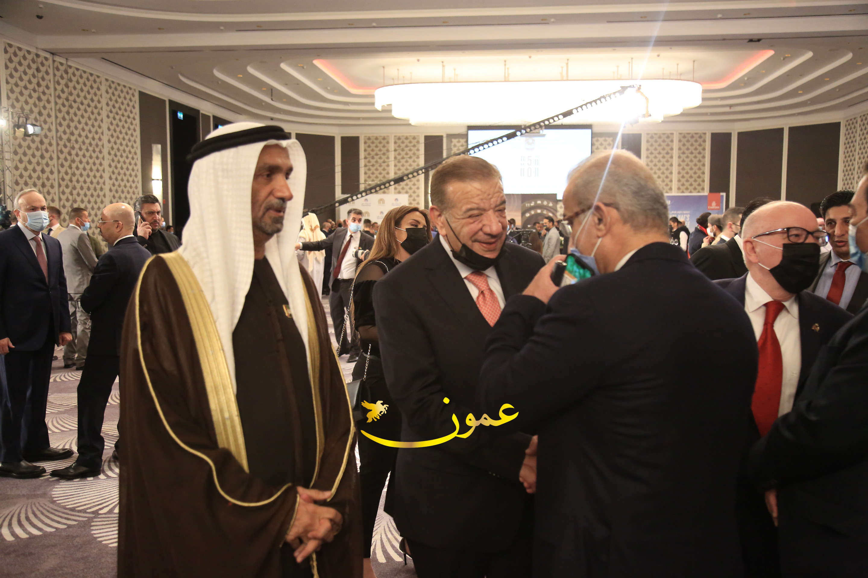عمون - بمناسبة عيد الاتحاد الخمسين لدولة الإمارات العربية المتحدة، استقبل سفير دولة الإمارات العربية المتحدة لدى المملكة الأردنية الهاشمية أحمد علي البلوشي مساء الأربعاء في الإحتفال الذي أقامته السفارة الإماراتية بالعاصمة الأردنية عمّان، كبار المسؤولين الأردنيين يتقدمهم رئيس مجلس الأعيان فيصل الفايز، ورئيس مجلس النواب عبدالكريم الدغمي، ورئيس الديوان الملكي يوسف العيسوي، وعدد من أصحاب المعالي والسعادة: الوزراء والأعيان والنواب وكبار رجال السلك الدبلوماسي والعسكري والقضائي ورؤساء البعثات الدبلوماسية العربية والأجنبية وشخصيات سياسية واقتصادية وثقافية وإعلامية ومسؤولي مؤسسات المجتمع المدني والمنظمات الدولية، إضافة إلى شيوخ العشائر من مختلف محافظات المملكة.