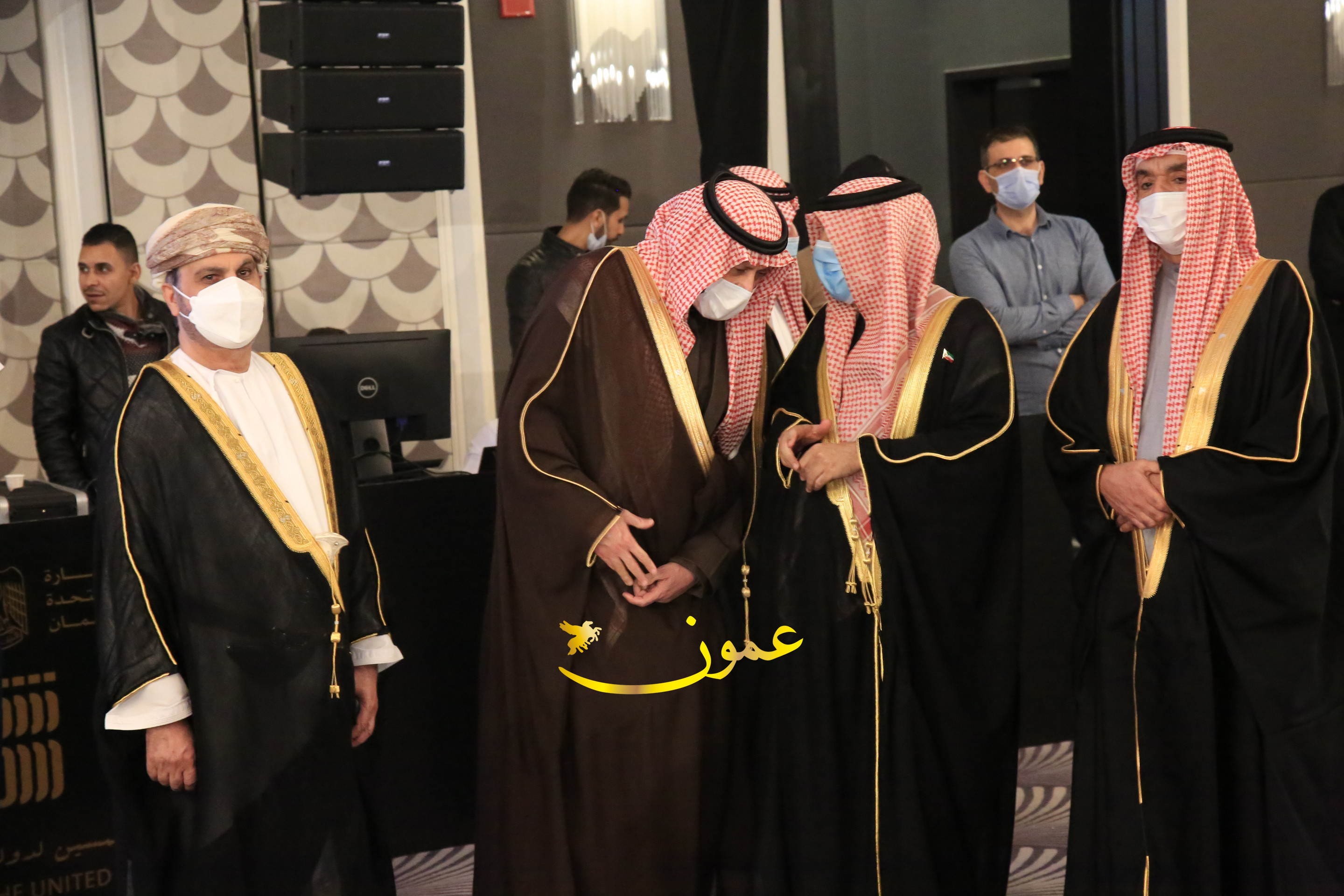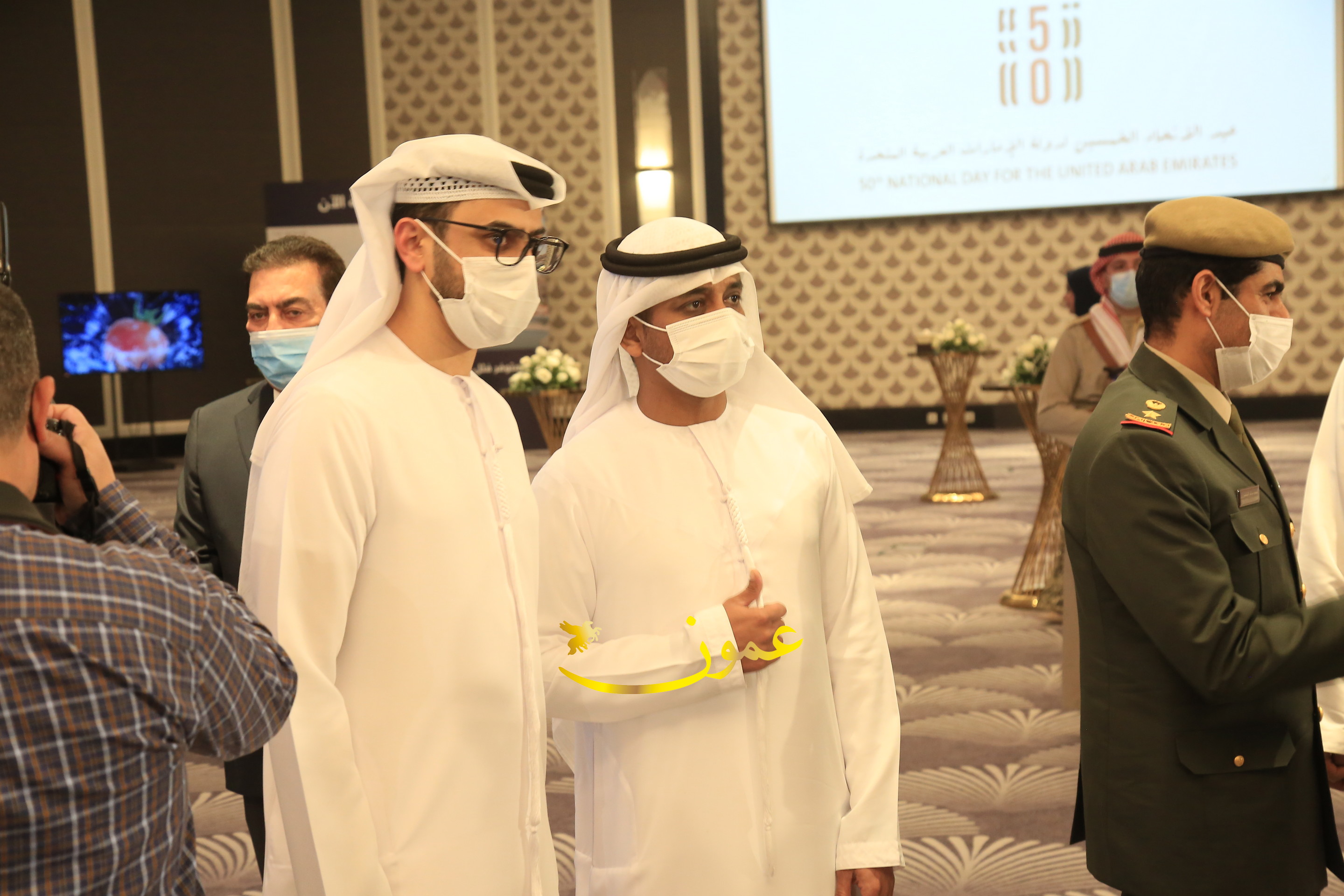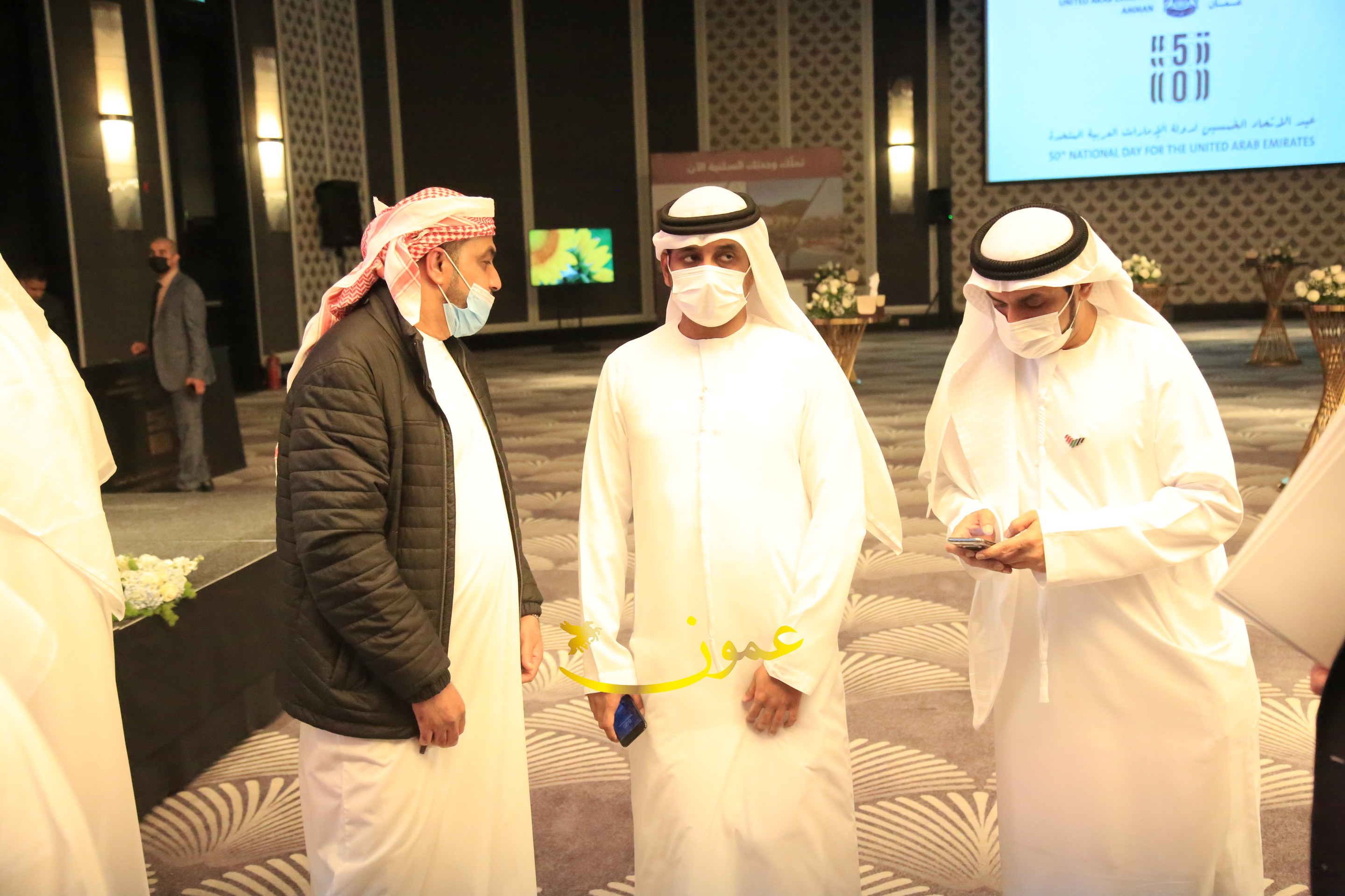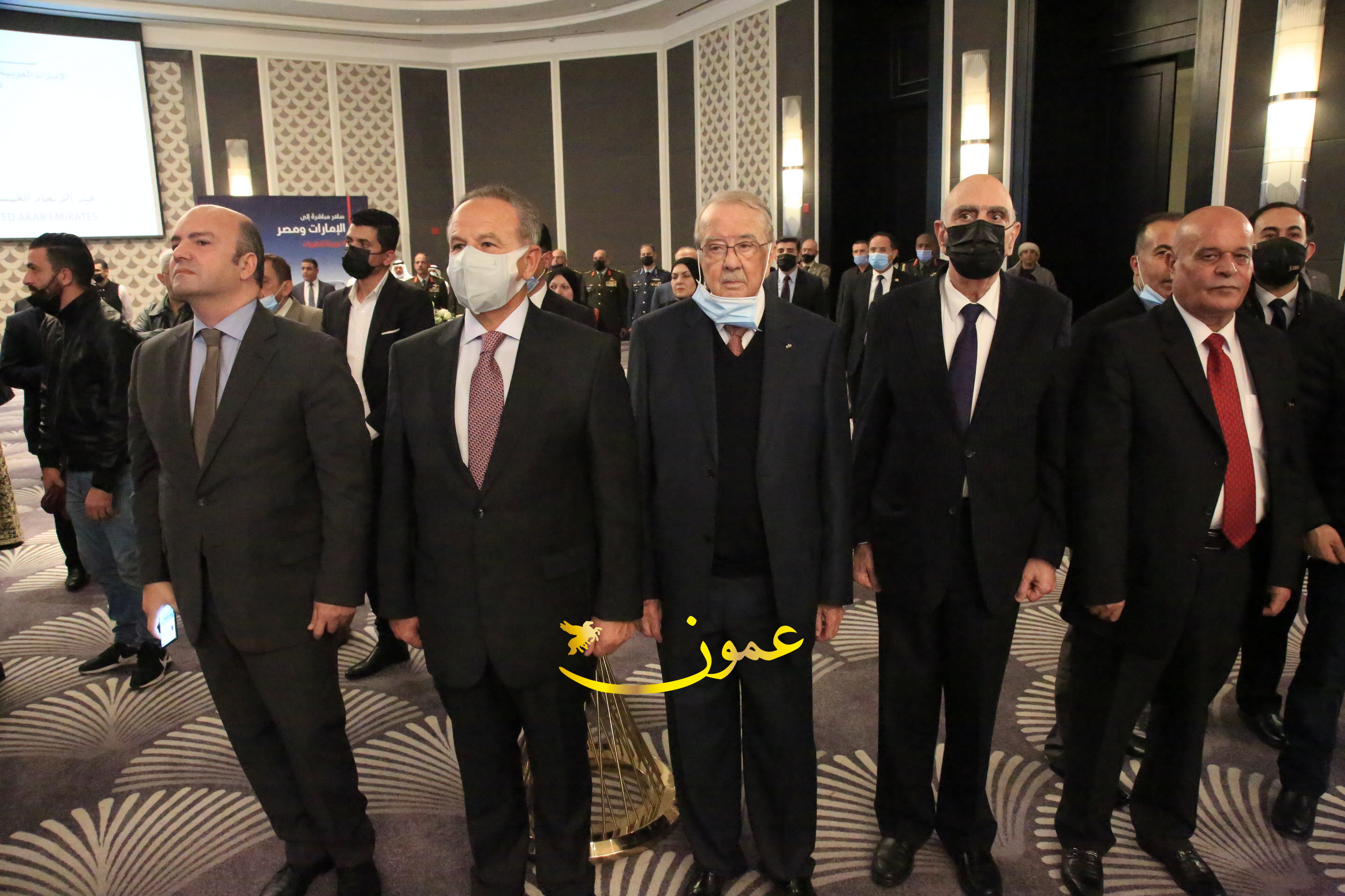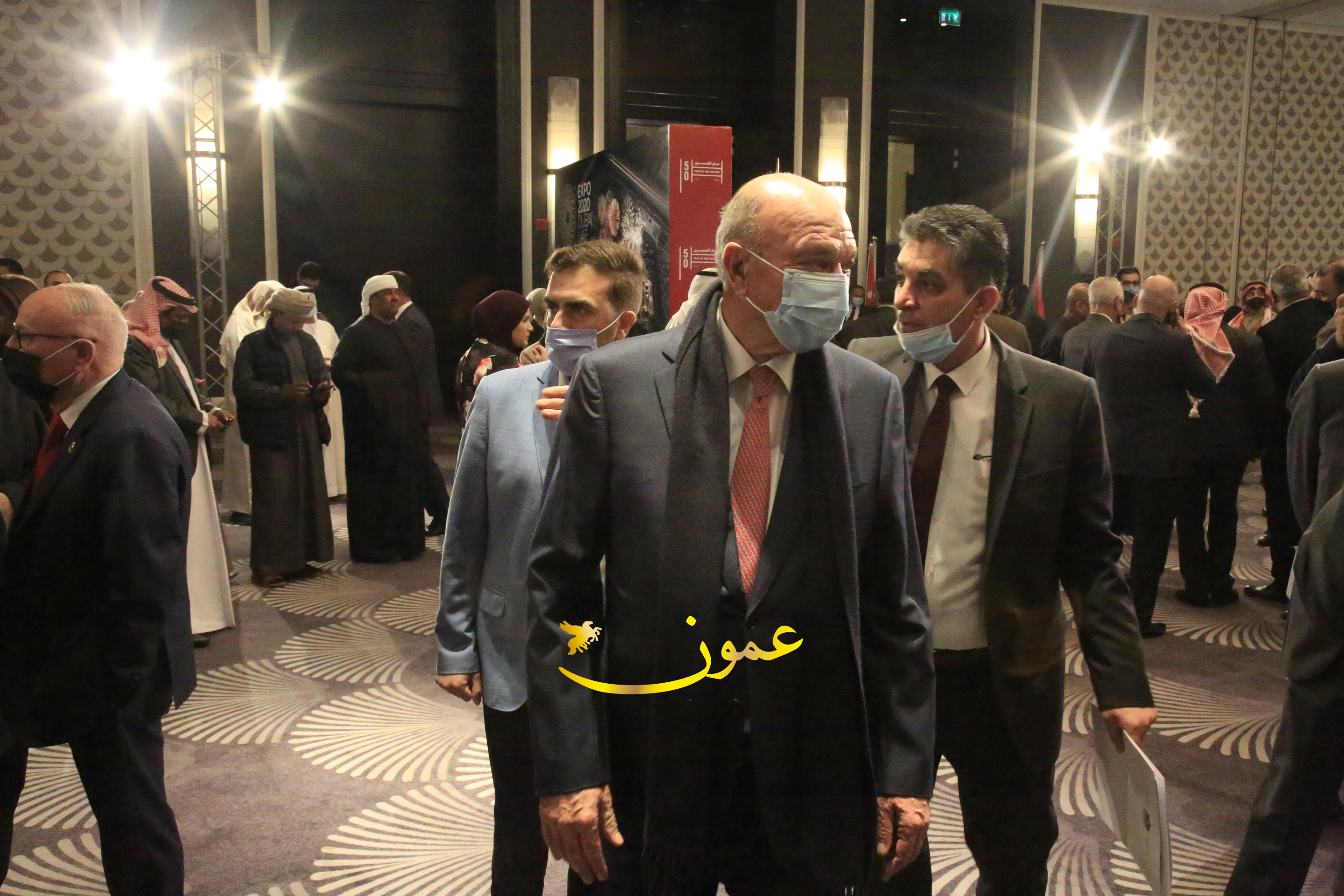عمون - بمناسبة عيد الاتحاد الخمسين لدولة الإمارات العربية المتحدة، استقبل سفير دولة الإمارات العربية المتحدة لدى المملكة الأردنية الهاشمية أحمد علي البلوشي مساء الأربعاء في الإحتفال الذي أقامته السفارة الإماراتية بالعاصمة الأردنية عمّان، كبار المسؤولين الأردنيين يتقدمهم رئيس مجلس الأعيان فيصل الفايز، ورئيس مجلس النواب عبدالكريم الدغمي، ورئيس الديوان الملكي يوسف العيسوي، وعدد من أصحاب المعالي والسعادة: الوزراء والأعيان والنواب وكبار رجال السلك الدبلوماسي والعسكري والقضائي ورؤساء البعثات الدبلوماسية العربية والأجنبية وشخصيات سياسية واقتصادية وثقافية وإعلامية ومسؤولي مؤسسات المجتمع المدني والمنظمات الدولية، إضافة إلى شيوخ العشائر من مختلف محافظات المملكة.