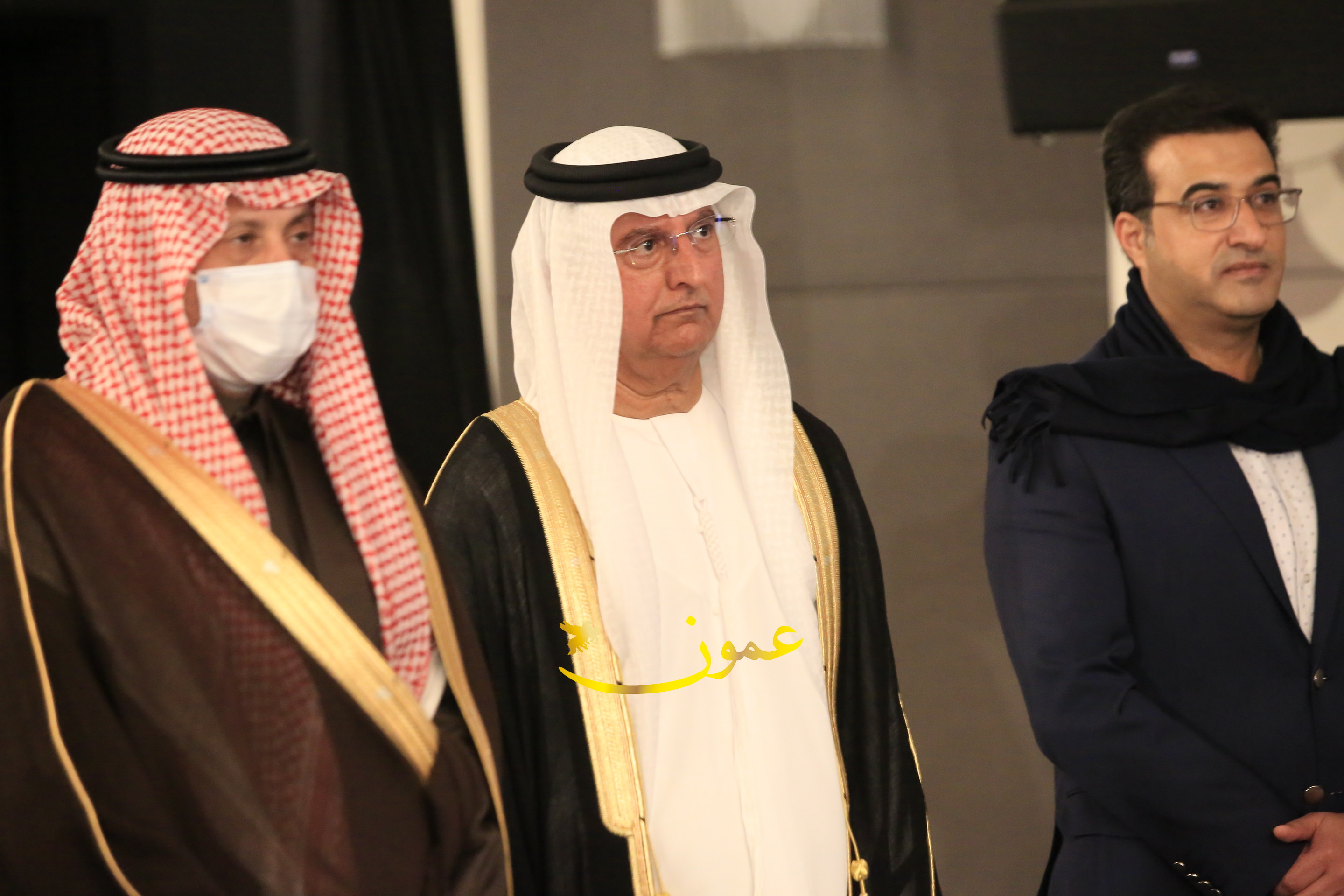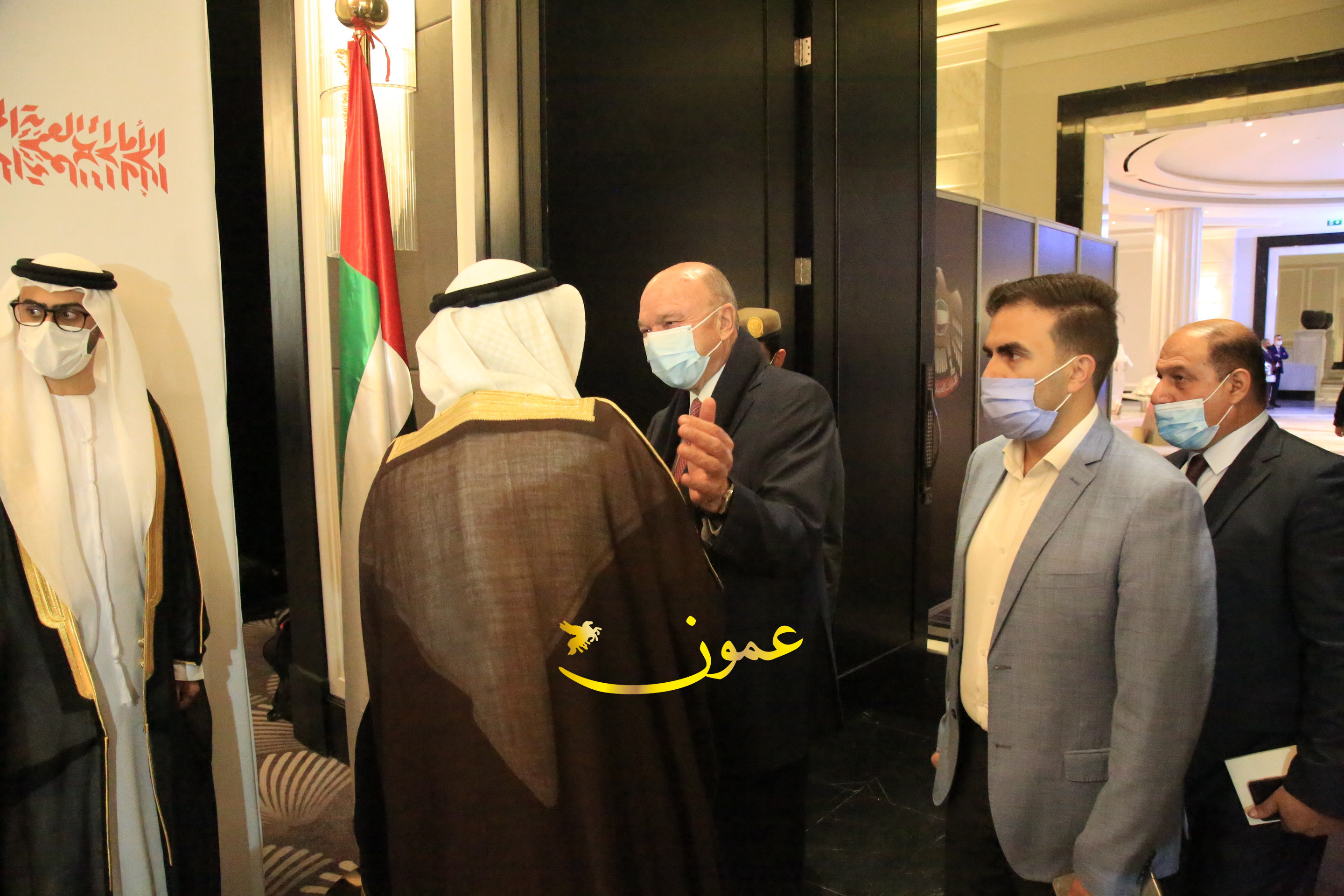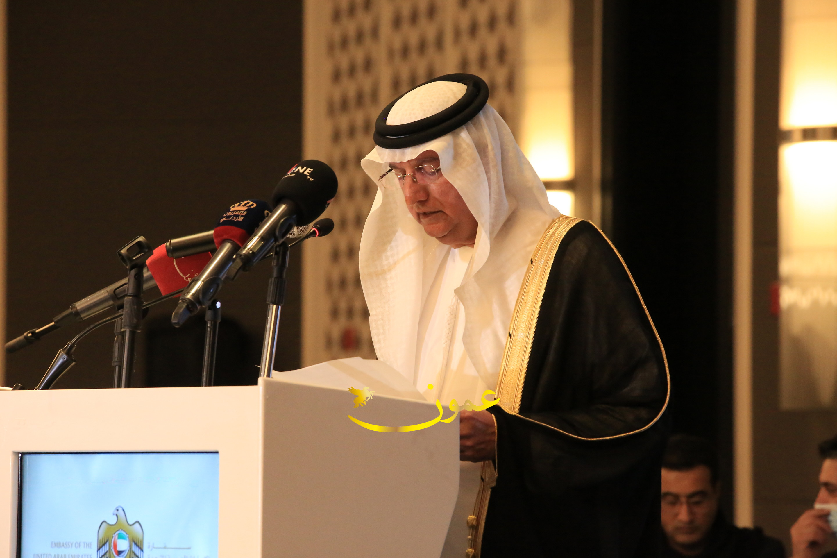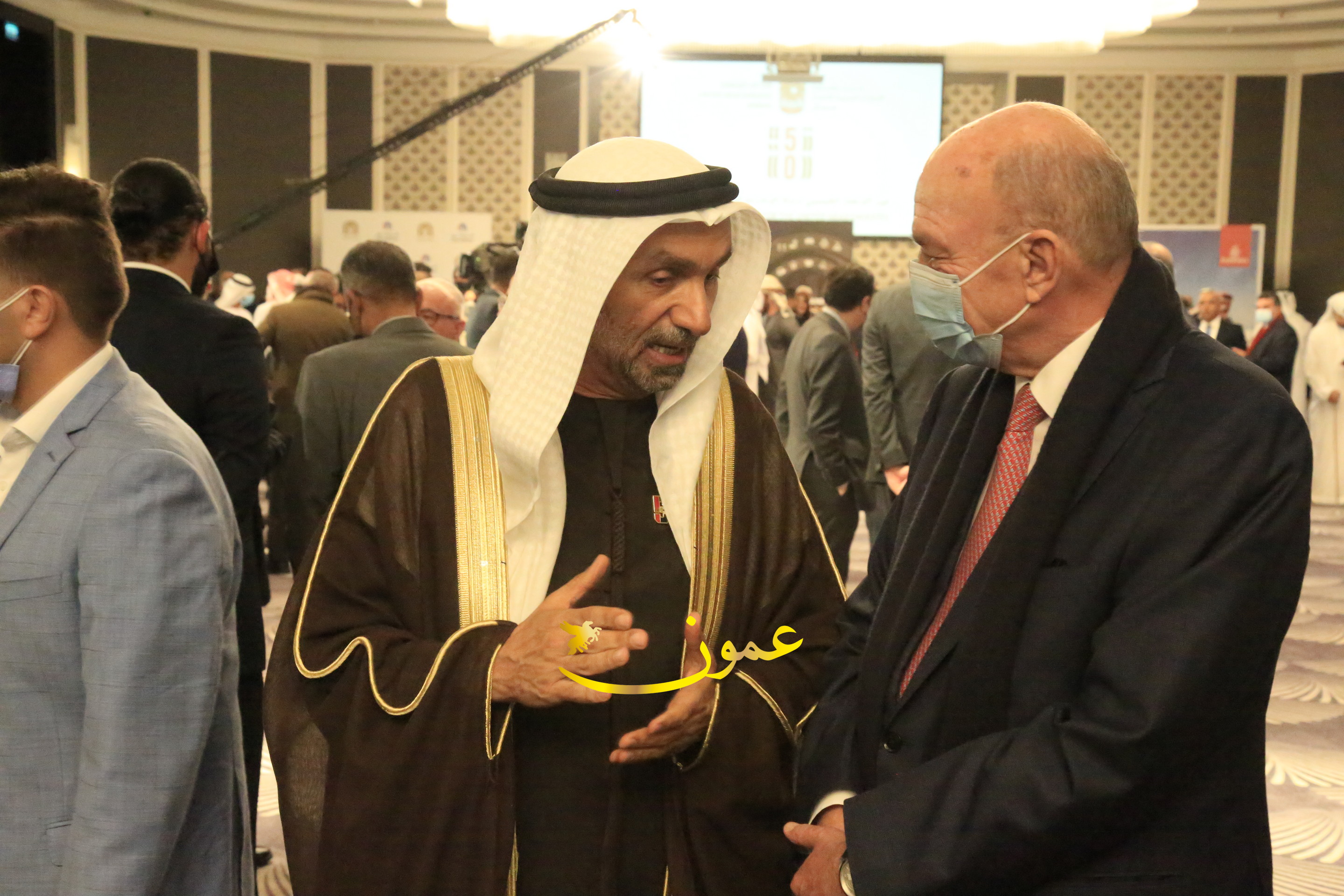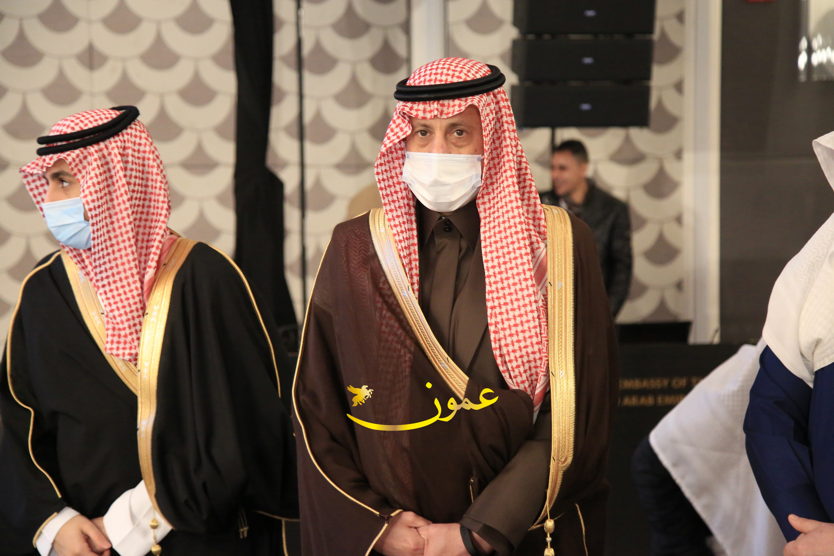 عمون - بمناسبة عيد الاتحاد الخمسين لدولة الإمارات العربية المتحدة، استقبل سفير دولة الإمارات العربية المتحدة لدى المملكة الأردنية الهاشمية أحمد علي البلوشي مساء الأربعاء في الإحتفال الذي أقامته السفارة الإماراتية بالعاصمة الأردنية عمّان، كبار المسؤولين الأردنيين يتقدمهم رئيس مجلس الأعيان فيصل الفايز، ورئيس مجلس النواب عبدالكريم الدغمي، ورئيس الديوان الملكي يوسف العيسوي، وعدد من أصحاب المعالي والسعادة: الوزراء والأعيان والنواب وكبار رجال السلك الدبلوماسي والعسكري والقضائي ورؤساء البعثات الدبلوماسية العربية والأجنبية وشخصيات سياسية واقتصادية وثقافية وإعلامية ومسؤولي مؤسسات المجتمع المدني والمنظمات الدولية، إضافة إلى شيوخ العشائر من مختلف محافظات المملكة.