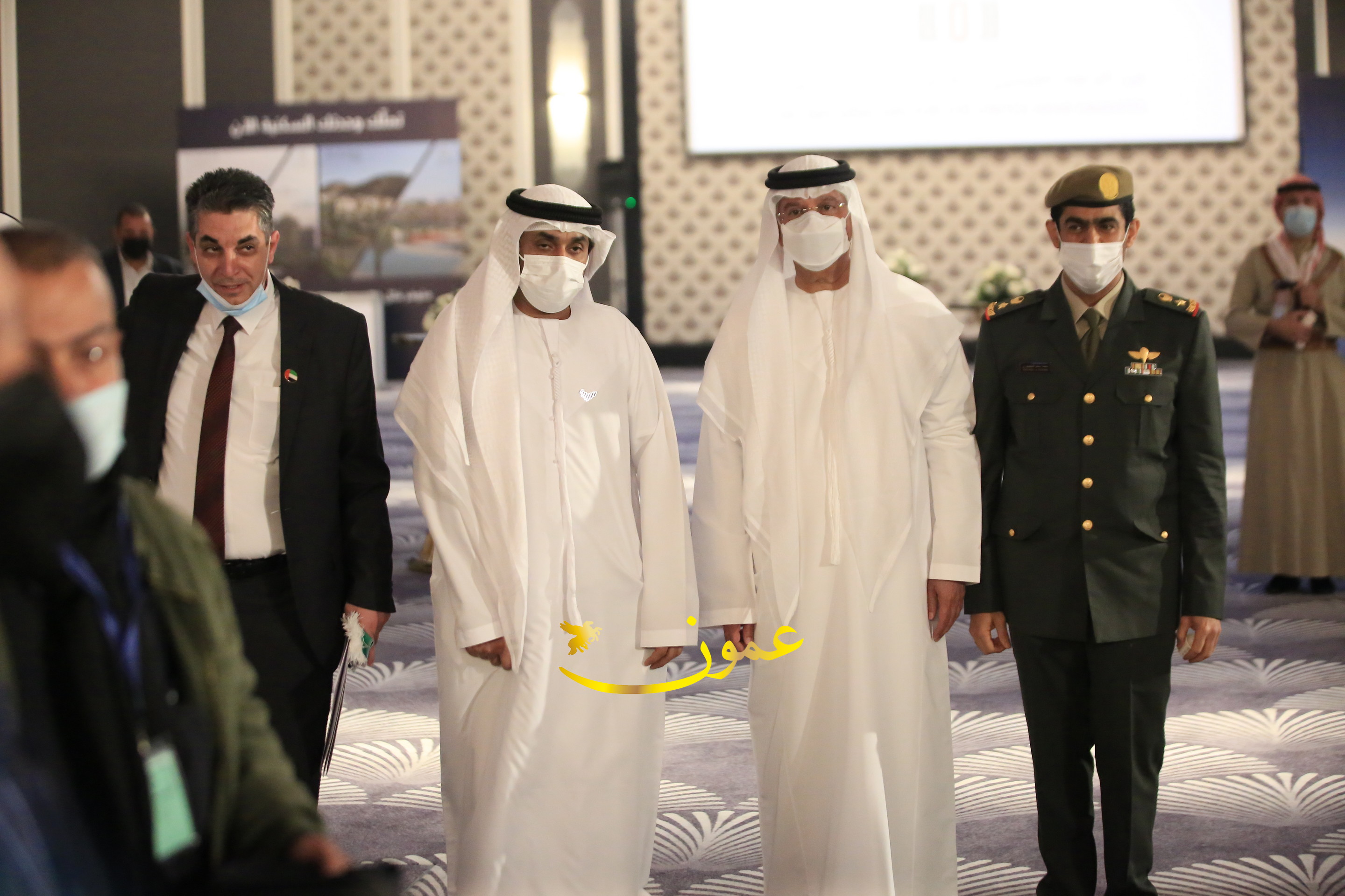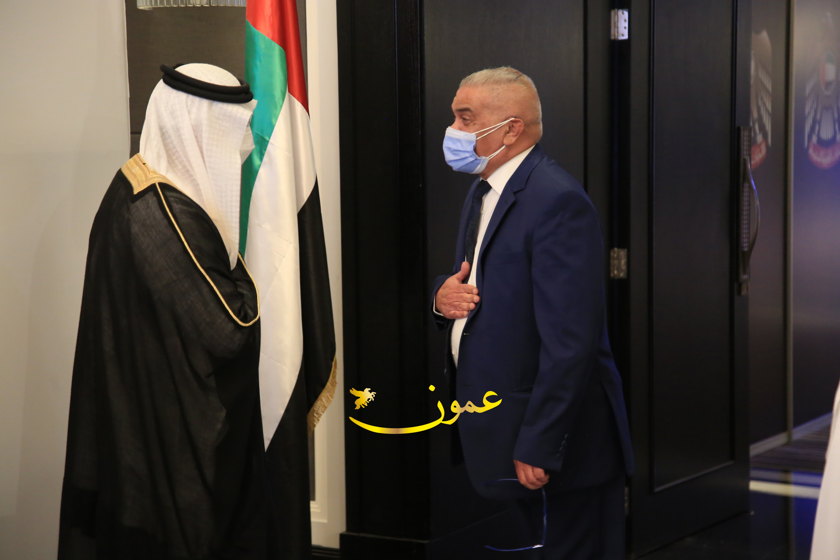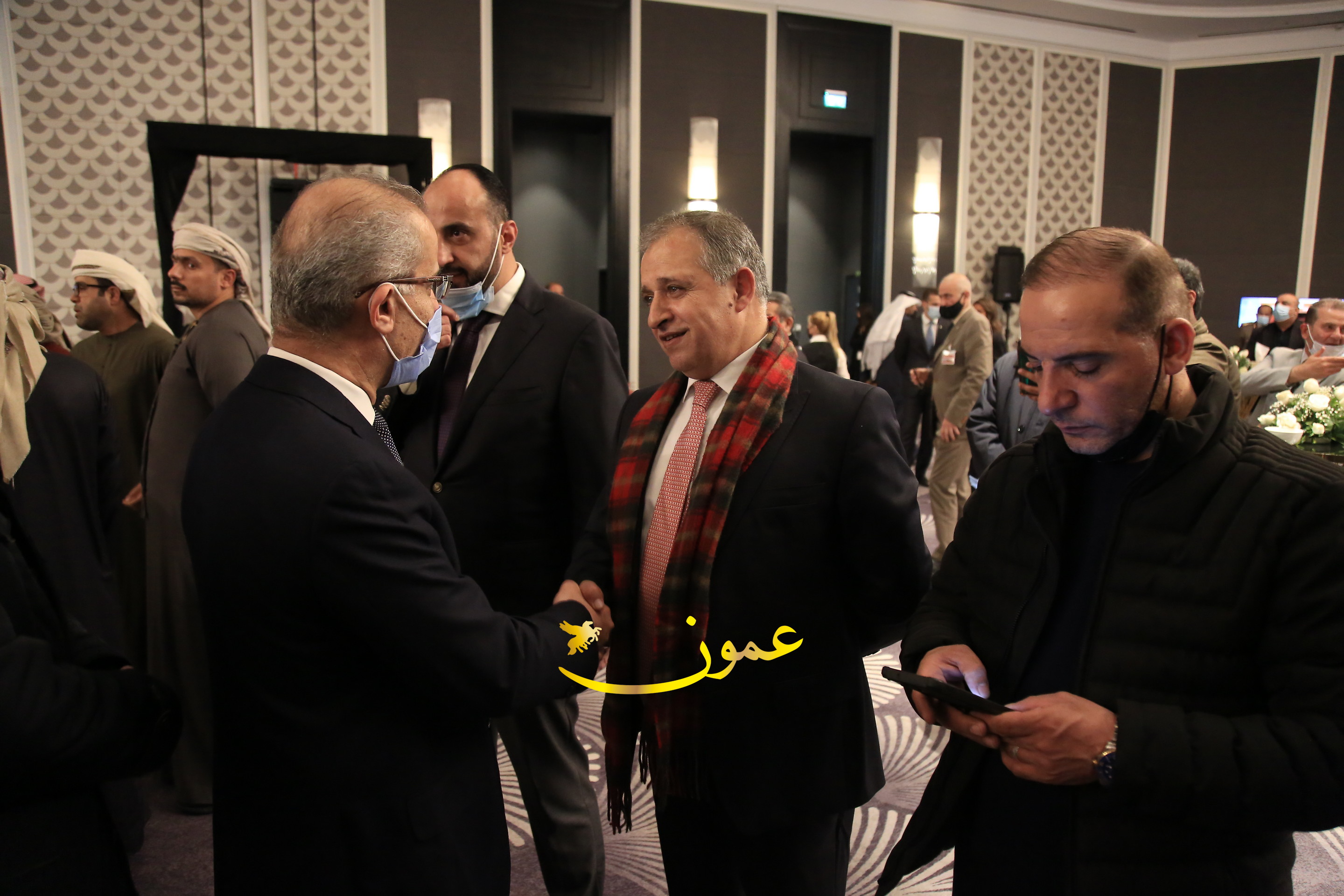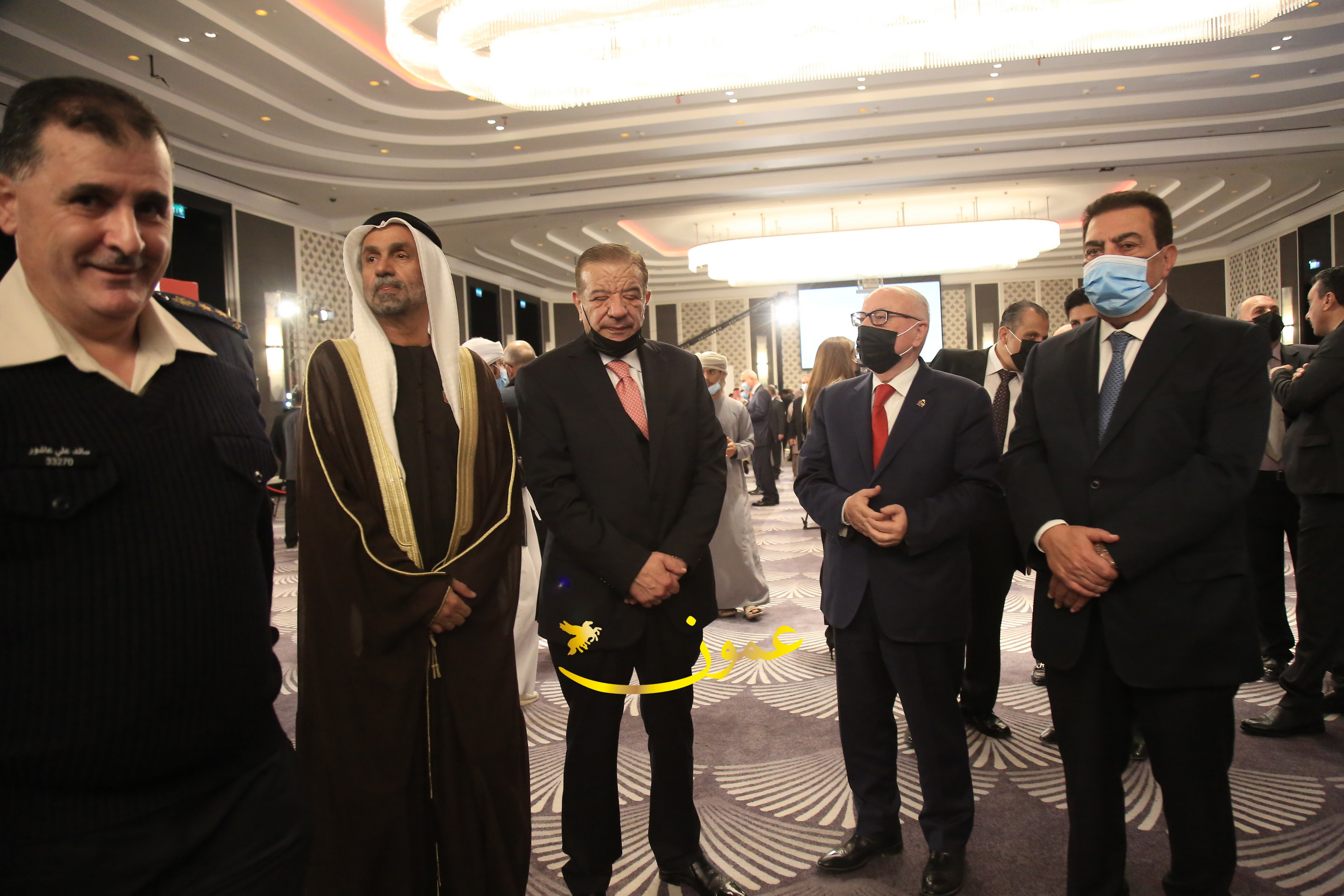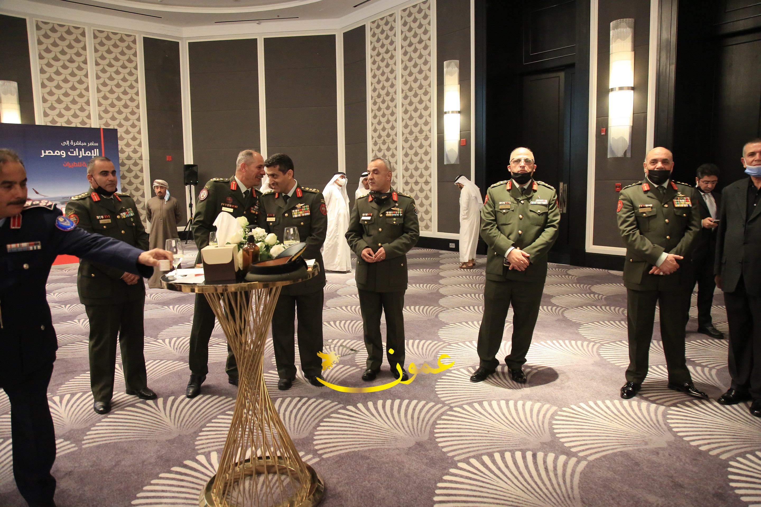 عمون - بمناسبة عيد الاتحاد الخمسين لدولة الإمارات العربية المتحدة، استقبل سفير دولة الإمارات العربية المتحدة لدى المملكة الأردنية الهاشمية أحمد علي البلوشي مساء الأربعاء في الإحتفال الذي أقامته السفارة الإماراتية بالعاصمة الأردنية عمّان، كبار المسؤولين الأردنيين يتقدمهم رئيس مجلس الأعيان فيصل الفايز، ورئيس مجلس النواب عبدالكريم الدغمي، ورئيس الديوان الملكي يوسف العيسوي، وعدد من أصحاب المعالي والسعادة: الوزراء والأعيان والنواب وكبار رجال السلك الدبلوماسي والعسكري والقضائي ورؤساء البعثات الدبلوماسية العربية والأجنبية وشخصيات سياسية واقتصادية وثقافية وإعلامية ومسؤولي مؤسسات المجتمع المدني والمنظمات الدولية، إضافة إلى شيوخ العشائر من مختلف محافظات المملكة.